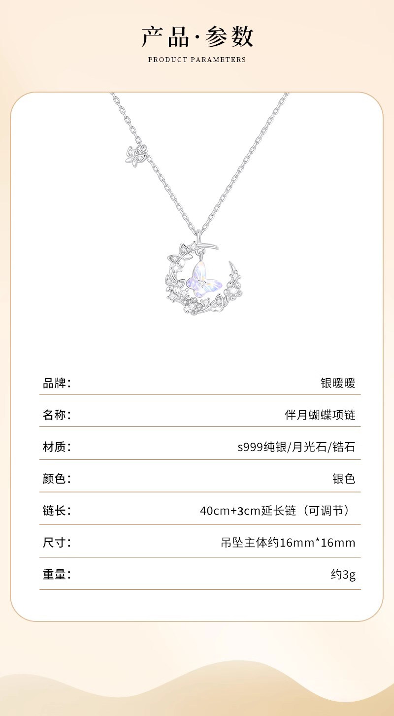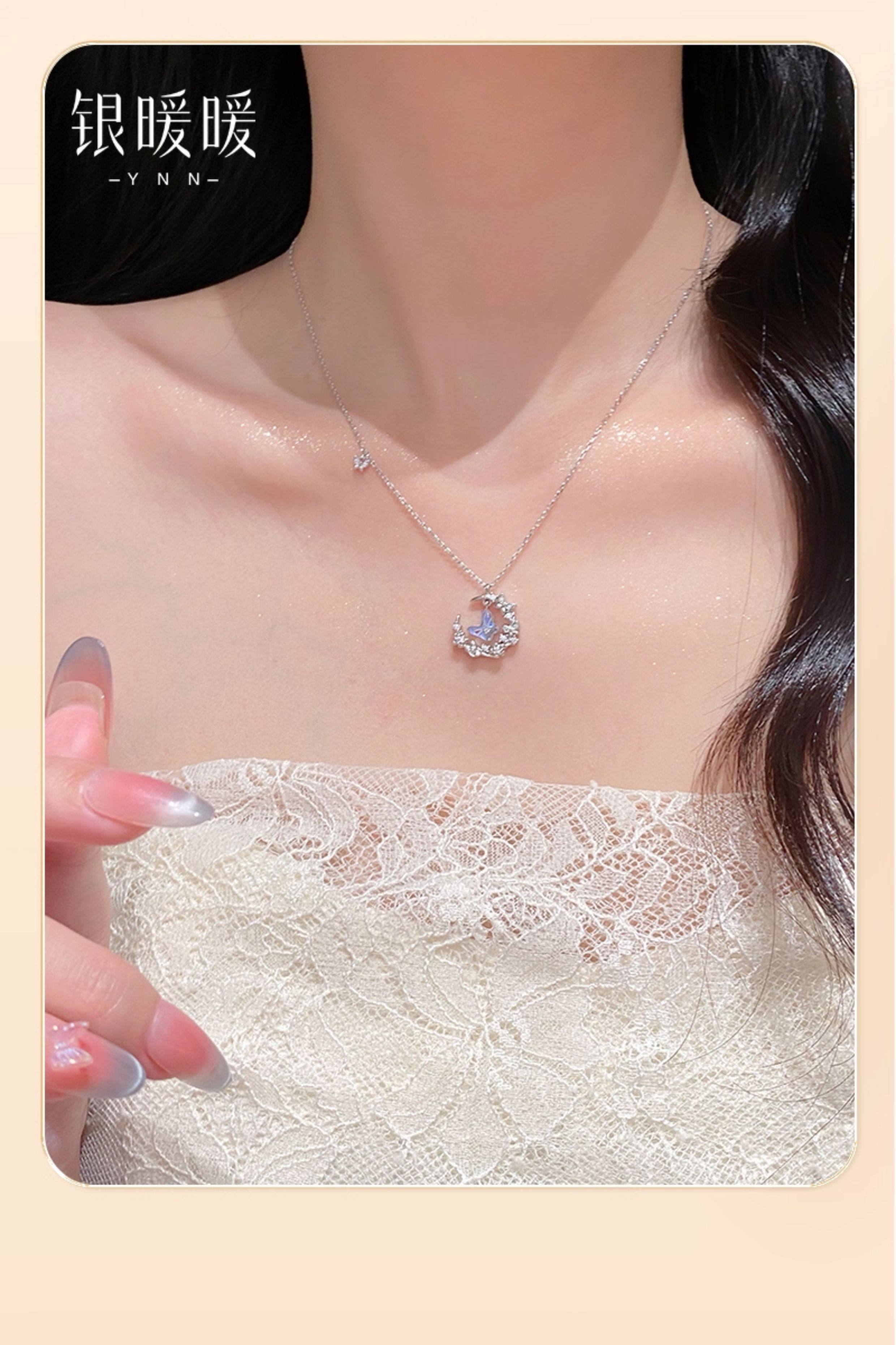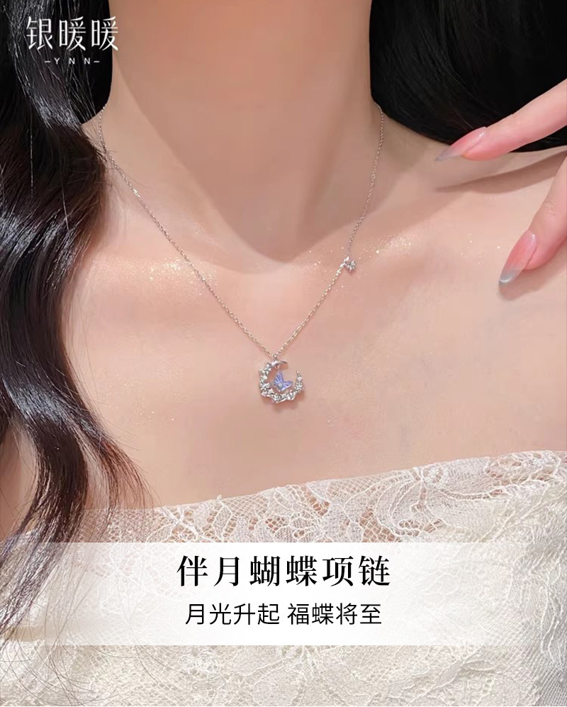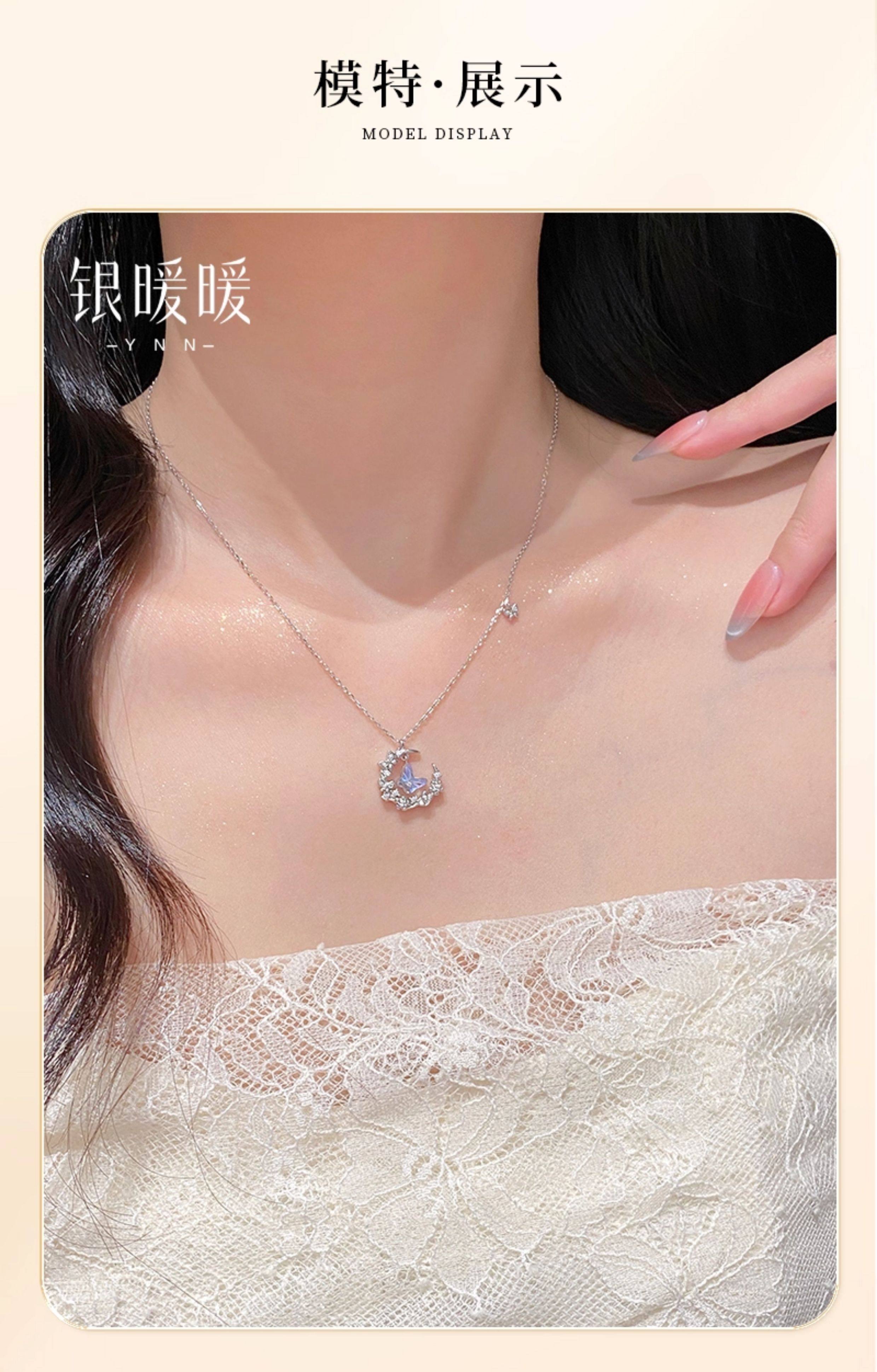 Original Moonlight Butterfly Necklace for Women, New S999 Pure Silver Moon Pendant, Best Friend Birthday Gift for Girlfriend
