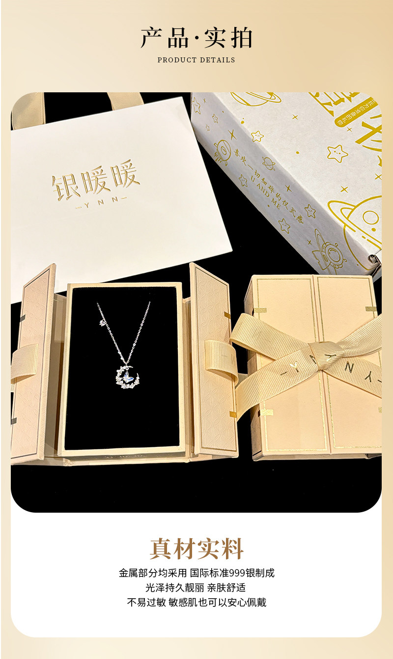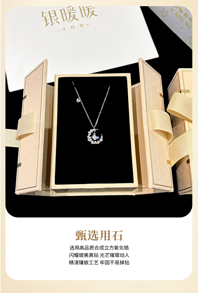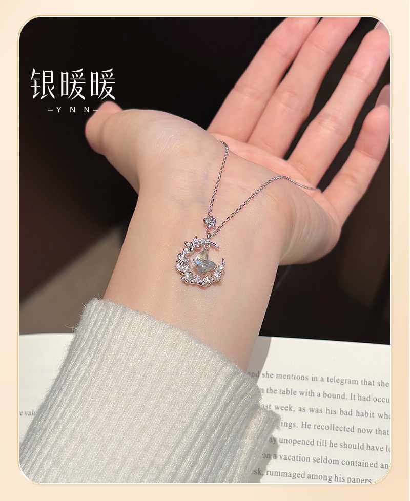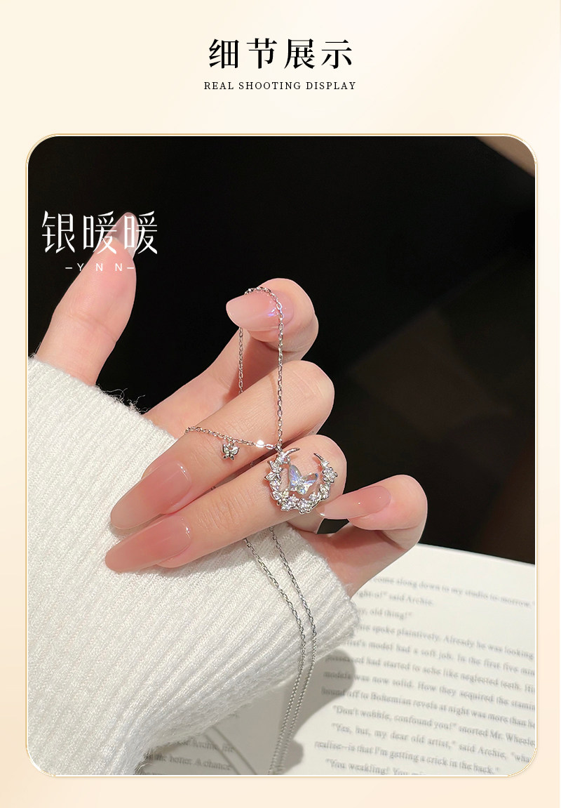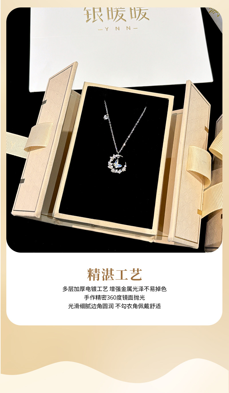Original Moonlight Butterfly Necklace for Women, New S999 Pure Silver Moon Pendant, Best Friend Birthday Gift for Girlfriend