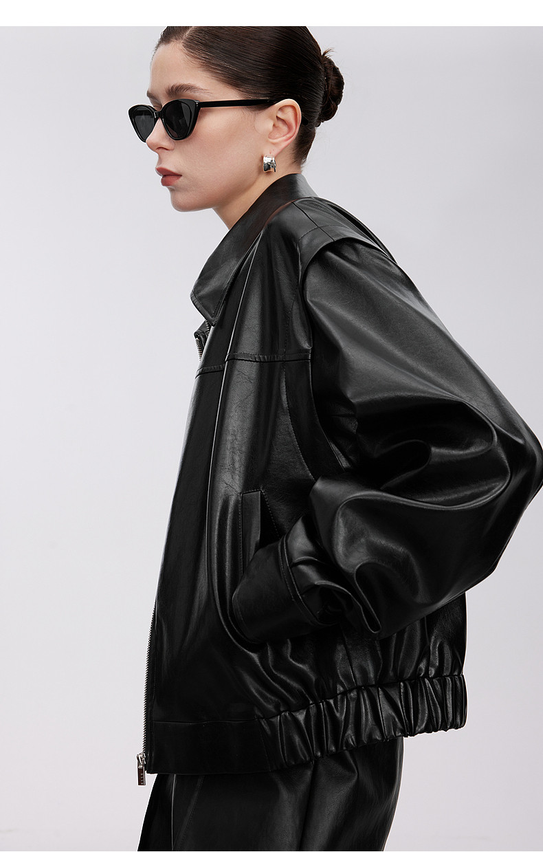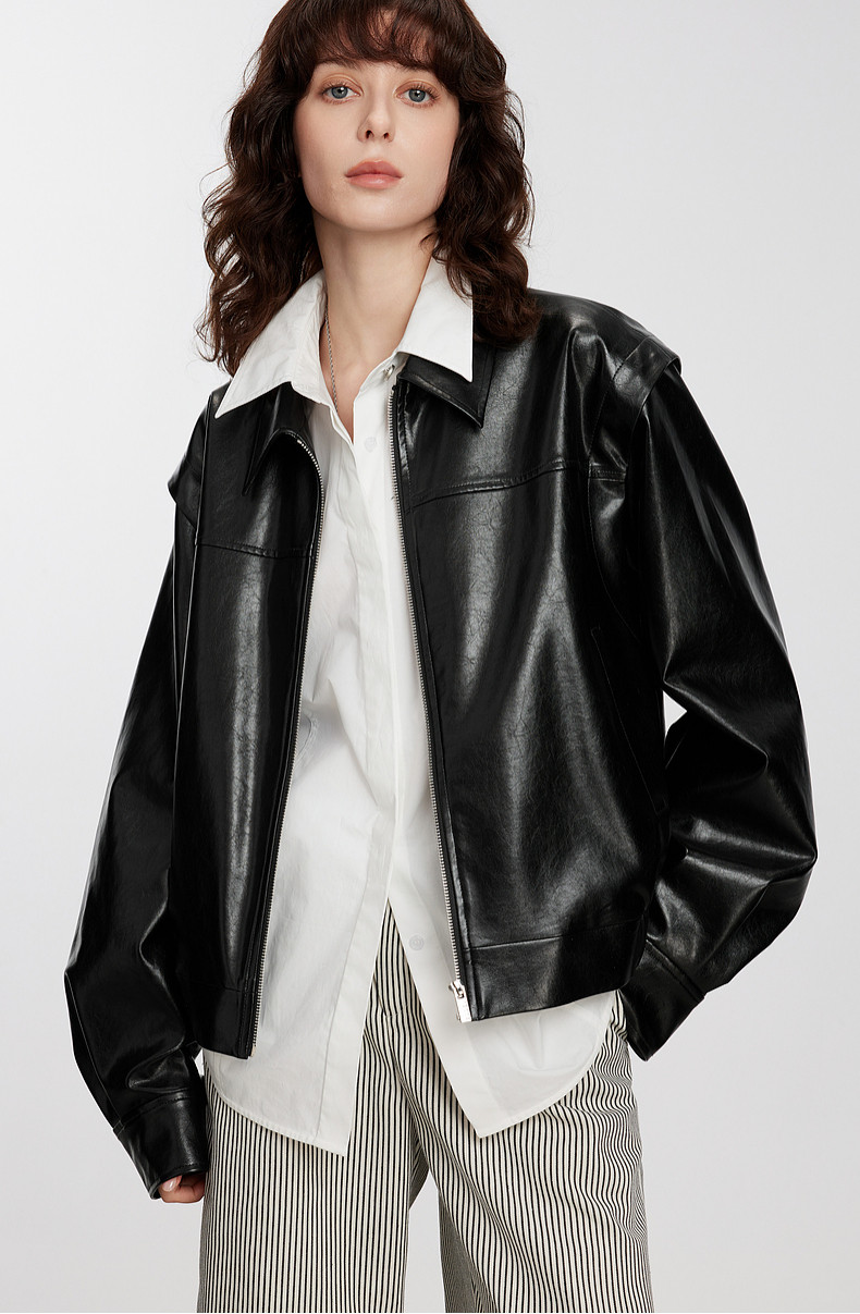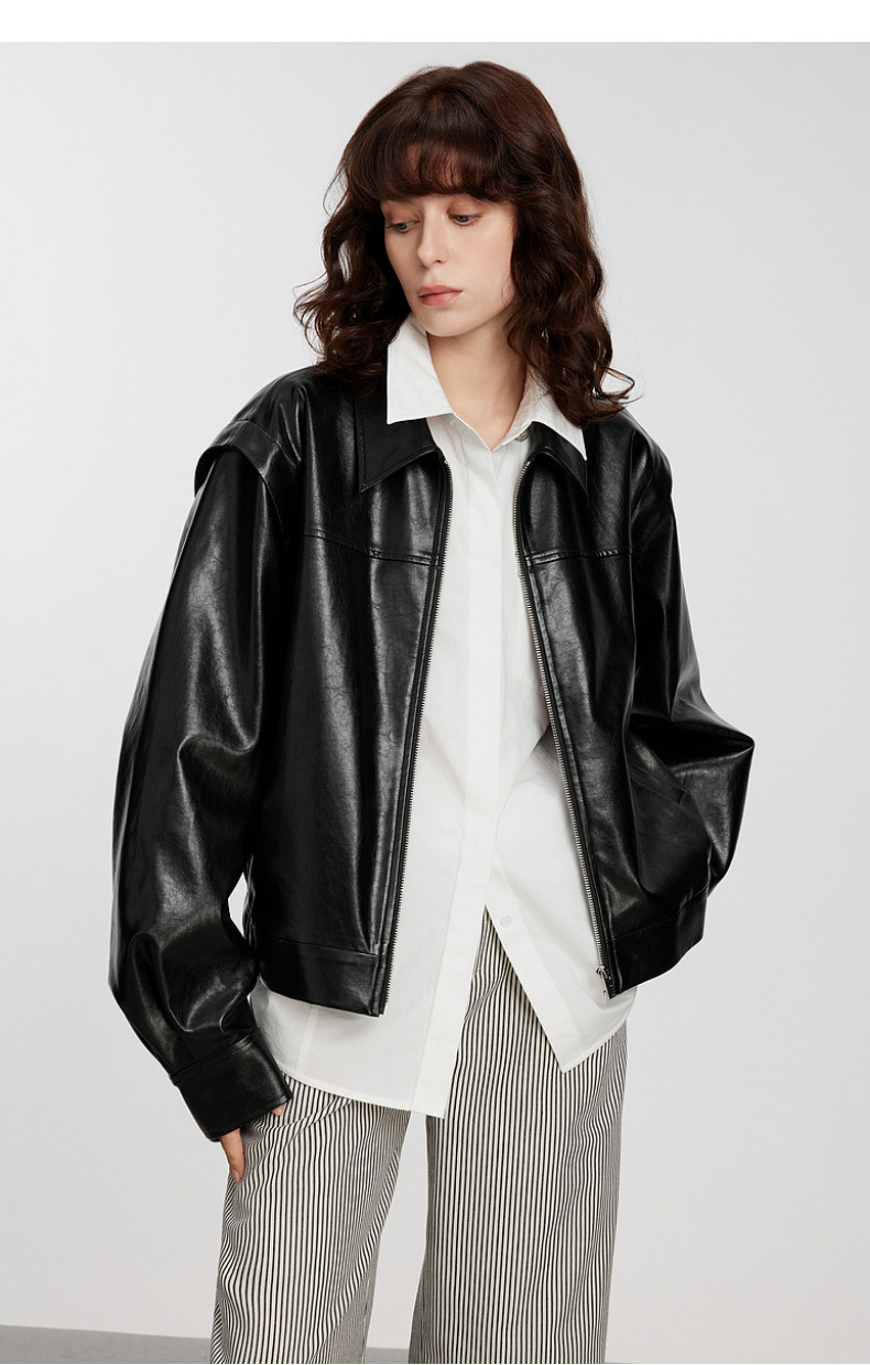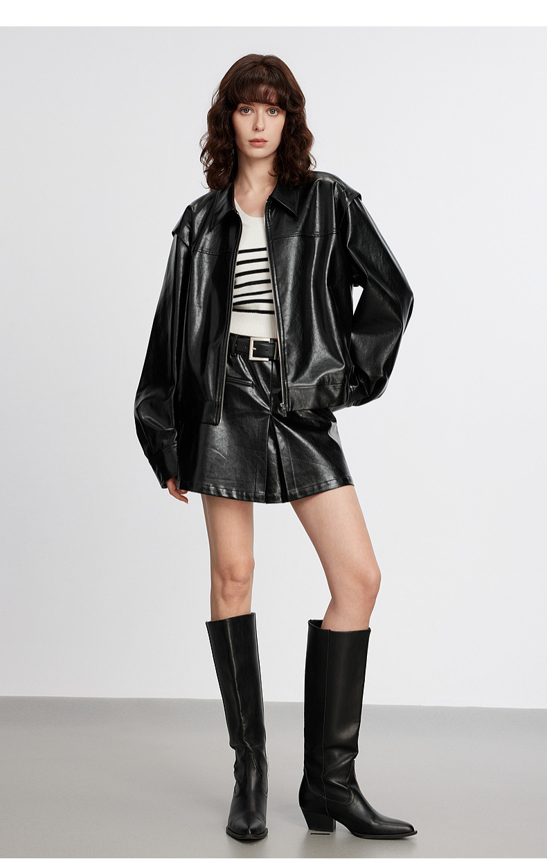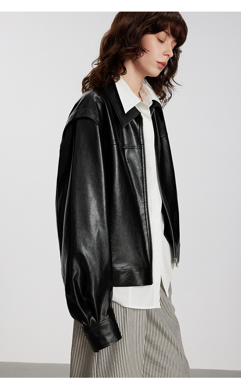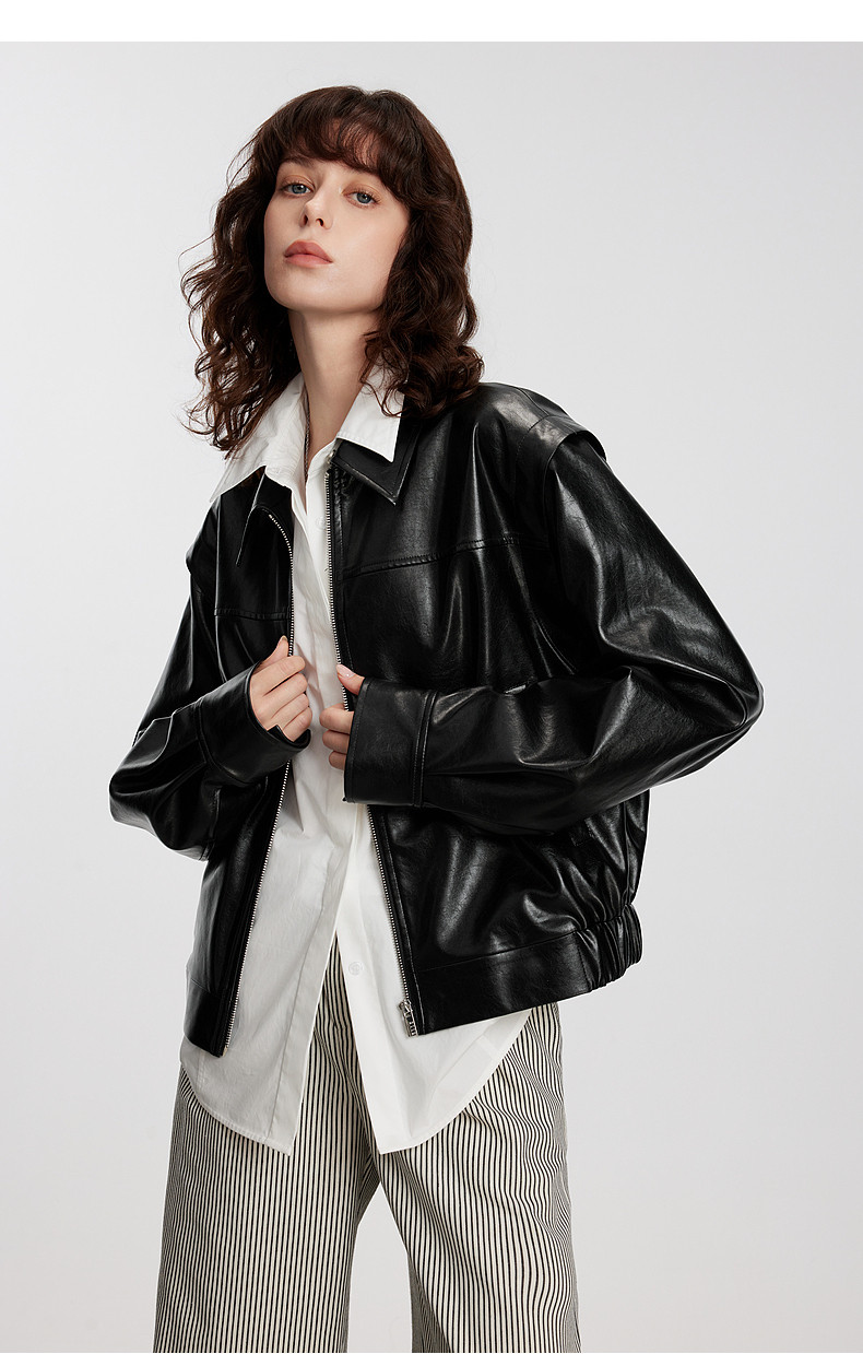 Elle French Modern High-End Leather Jacket for Women 2026 Spring New Workwear Style Fashionable Leather Coat