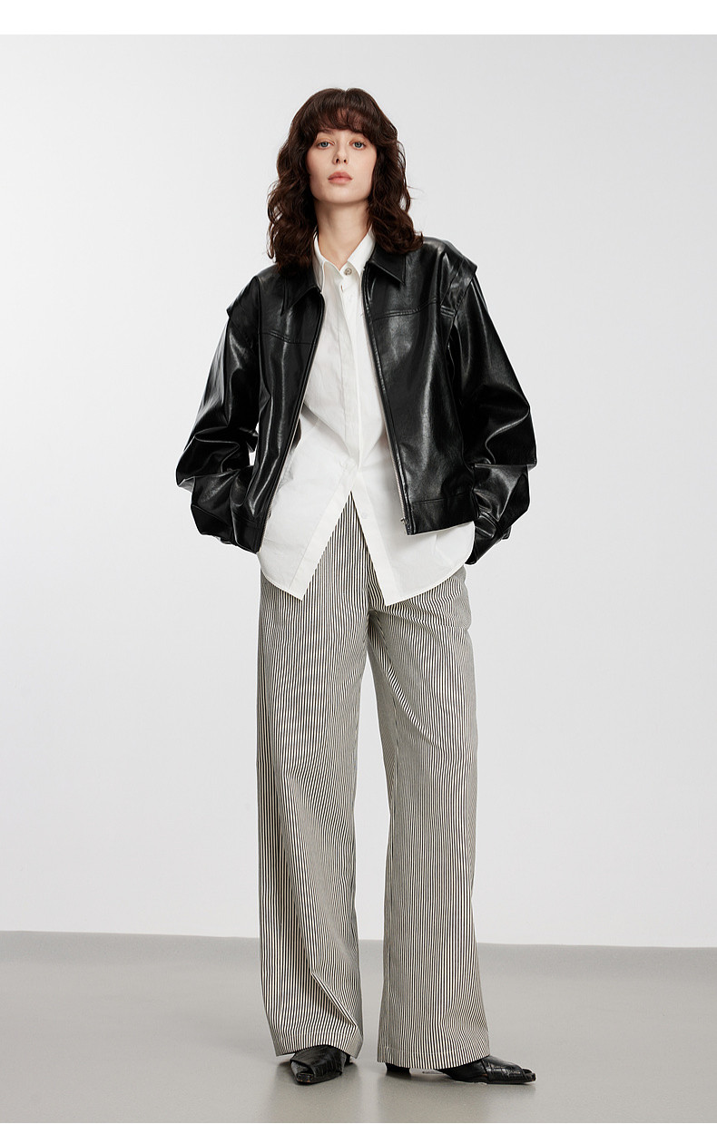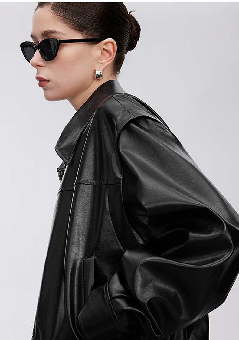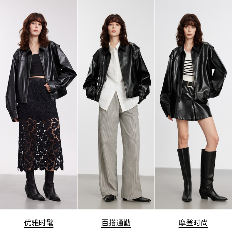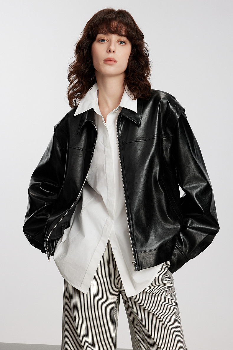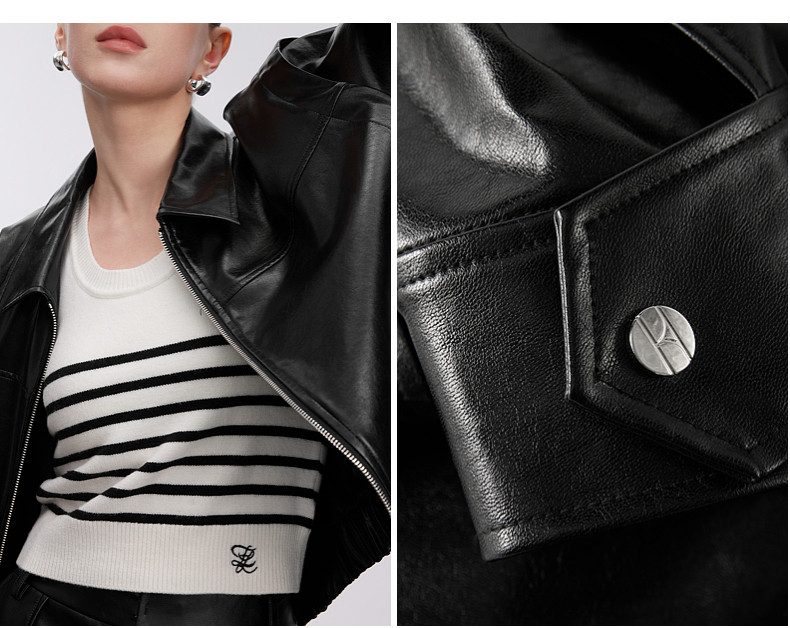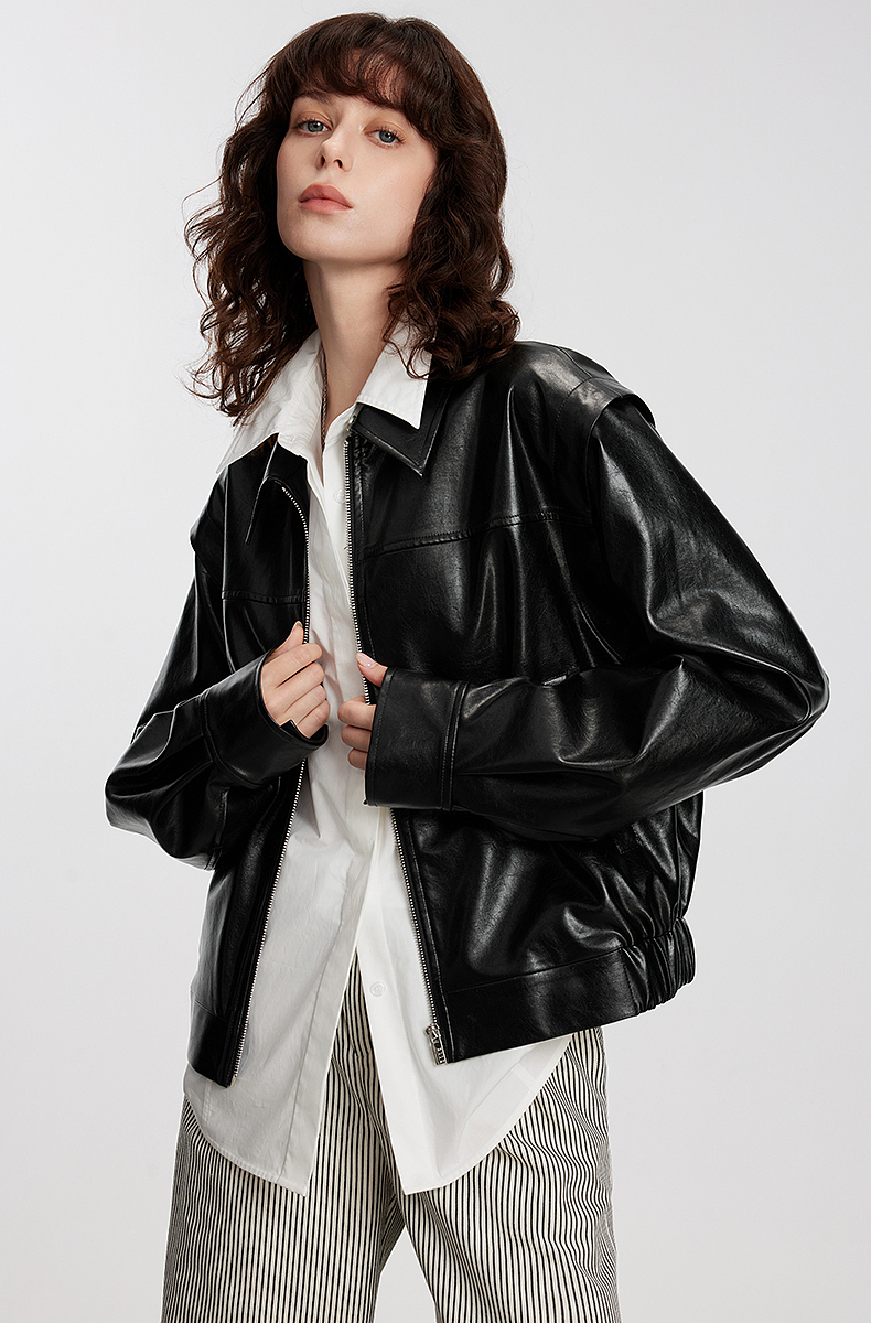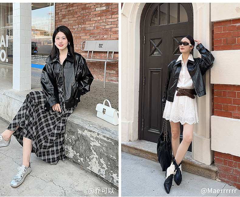 Elle French Modern High-End Leather Jacket for Women 2026 Spring New Workwear Style Fashionable Leather Coat