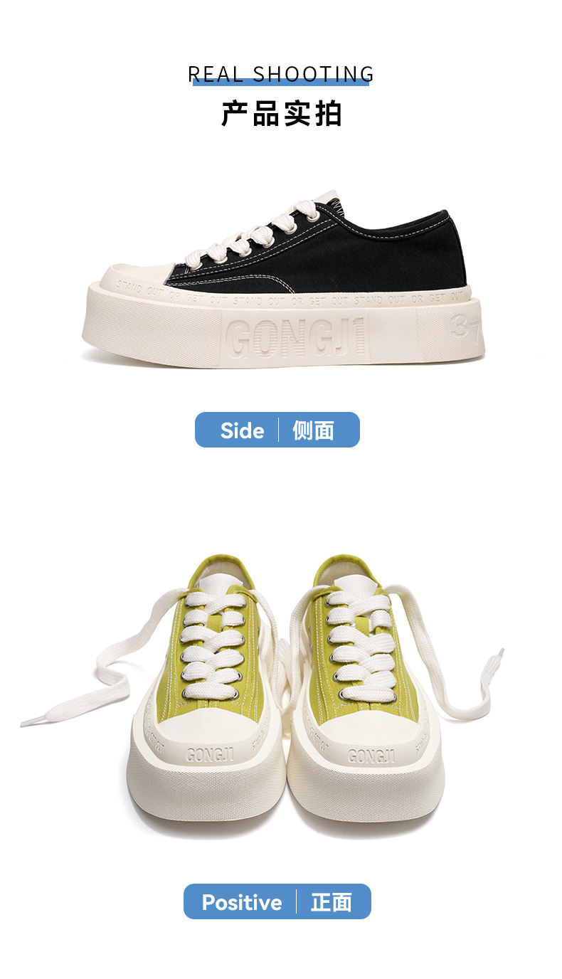 【Fan Chengcheng's Style】Gongji Square-Toe Thick-Soled Canvas Shoes for Women, Casual Shoes, Niche Sneakers, White Shoes for Men