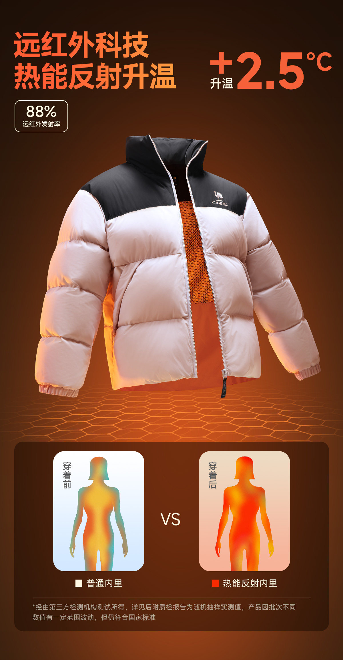 [Camel Fire Stove] Sports Three-Proof down Jacket for Men, Winter Couple's Thickened Hooded Waterproof Puffer Jacket for Women