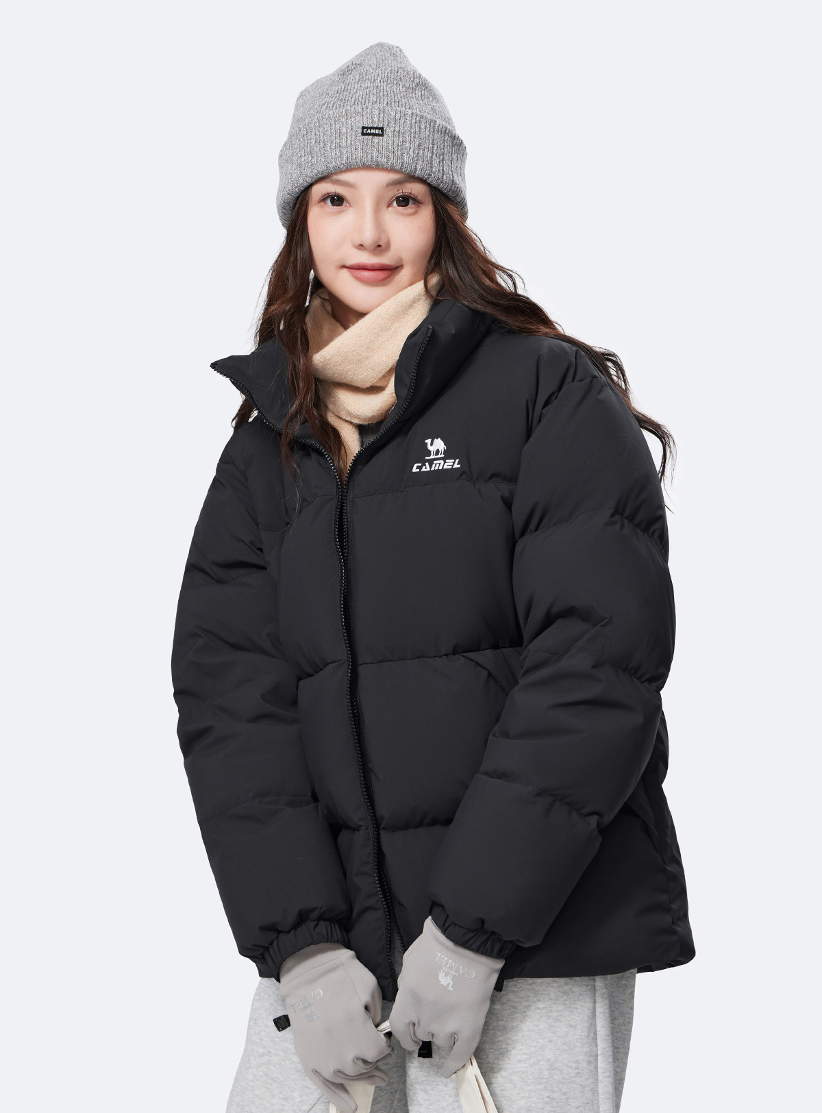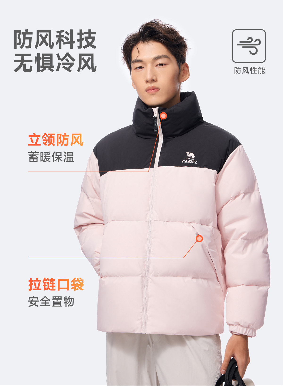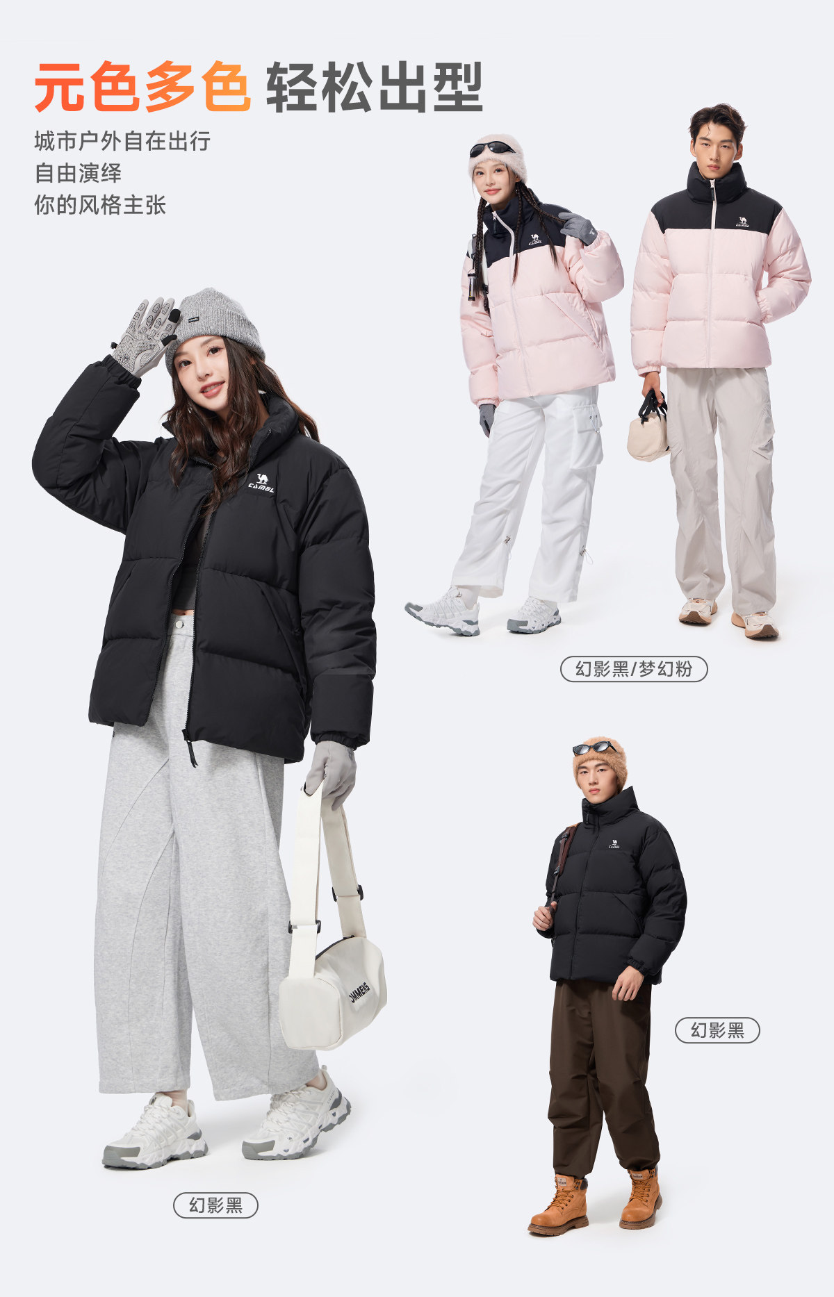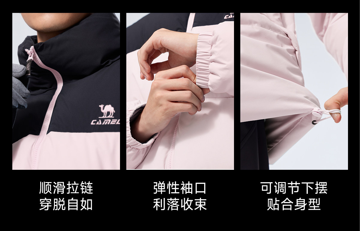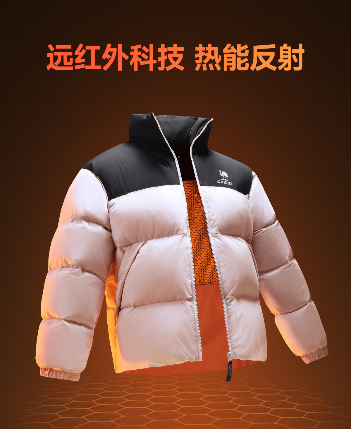 Camel Sports Three-Proof down Jacket for Women, Winter Far-Infrared Heating Hooded Stand-Collar Puffer Jacket for Men