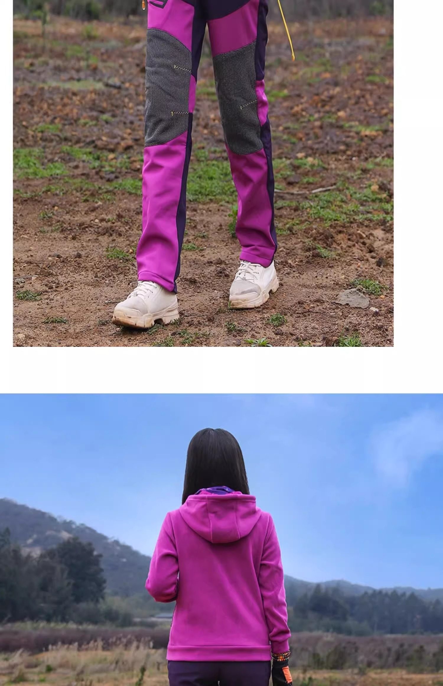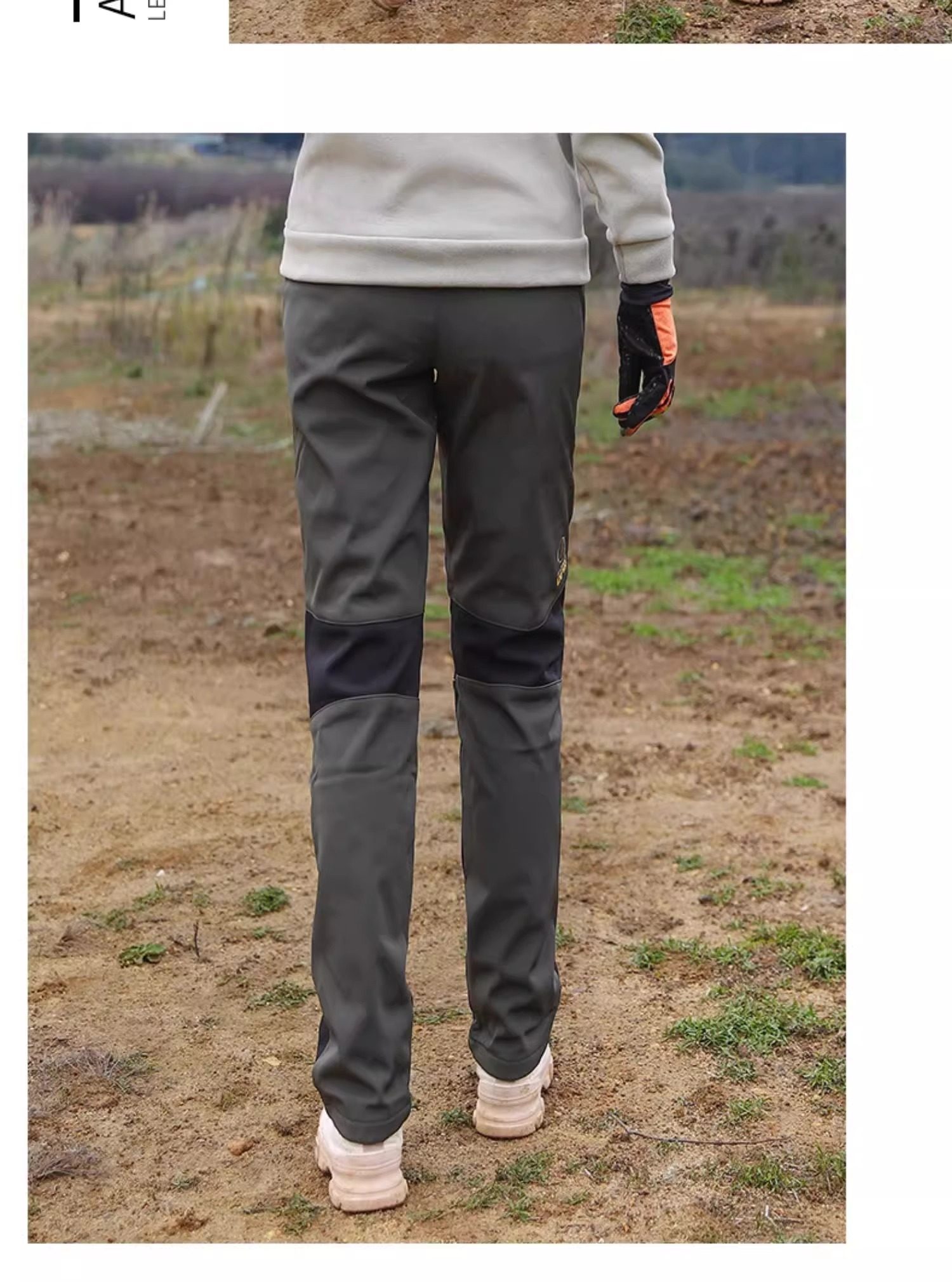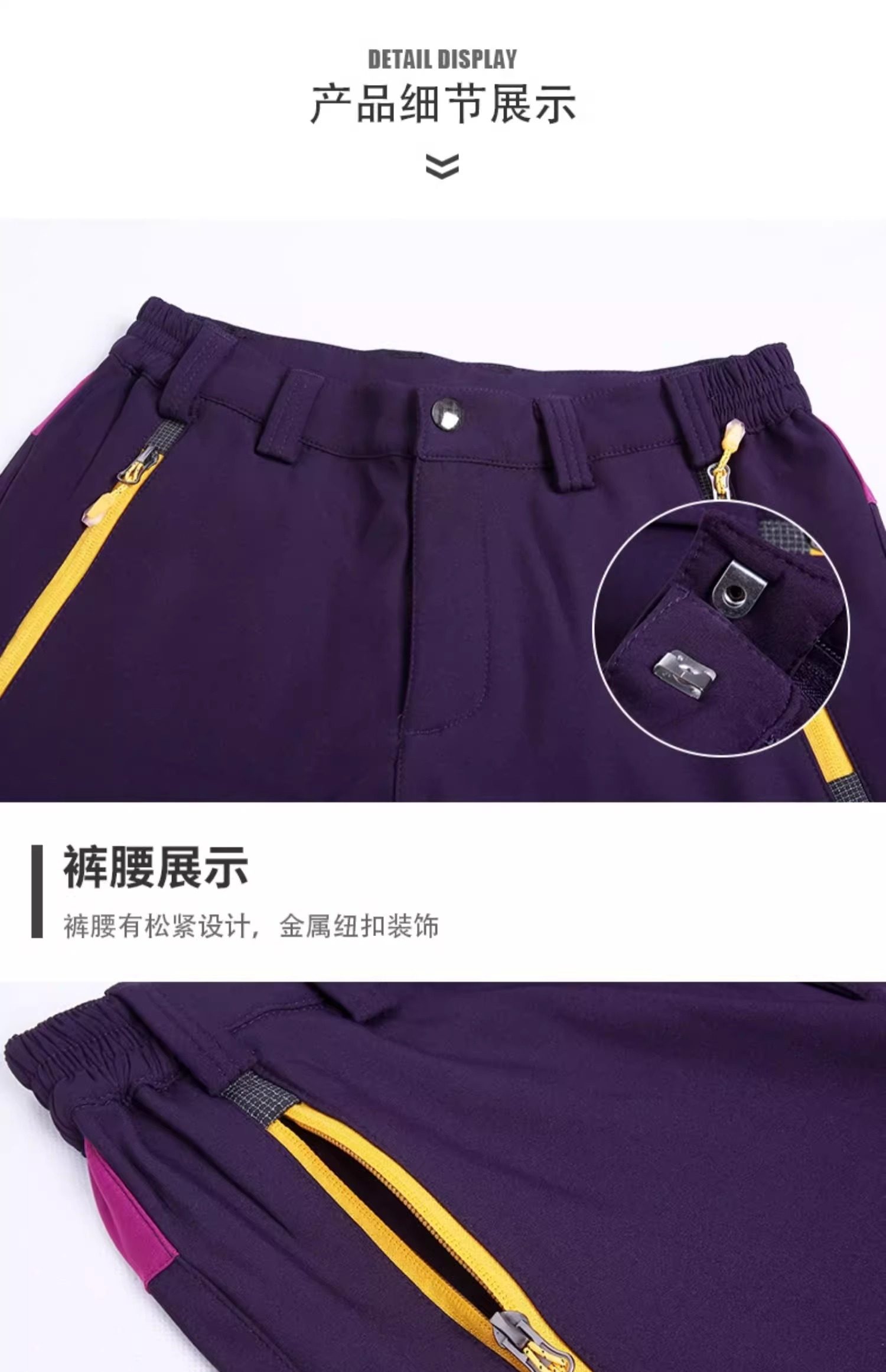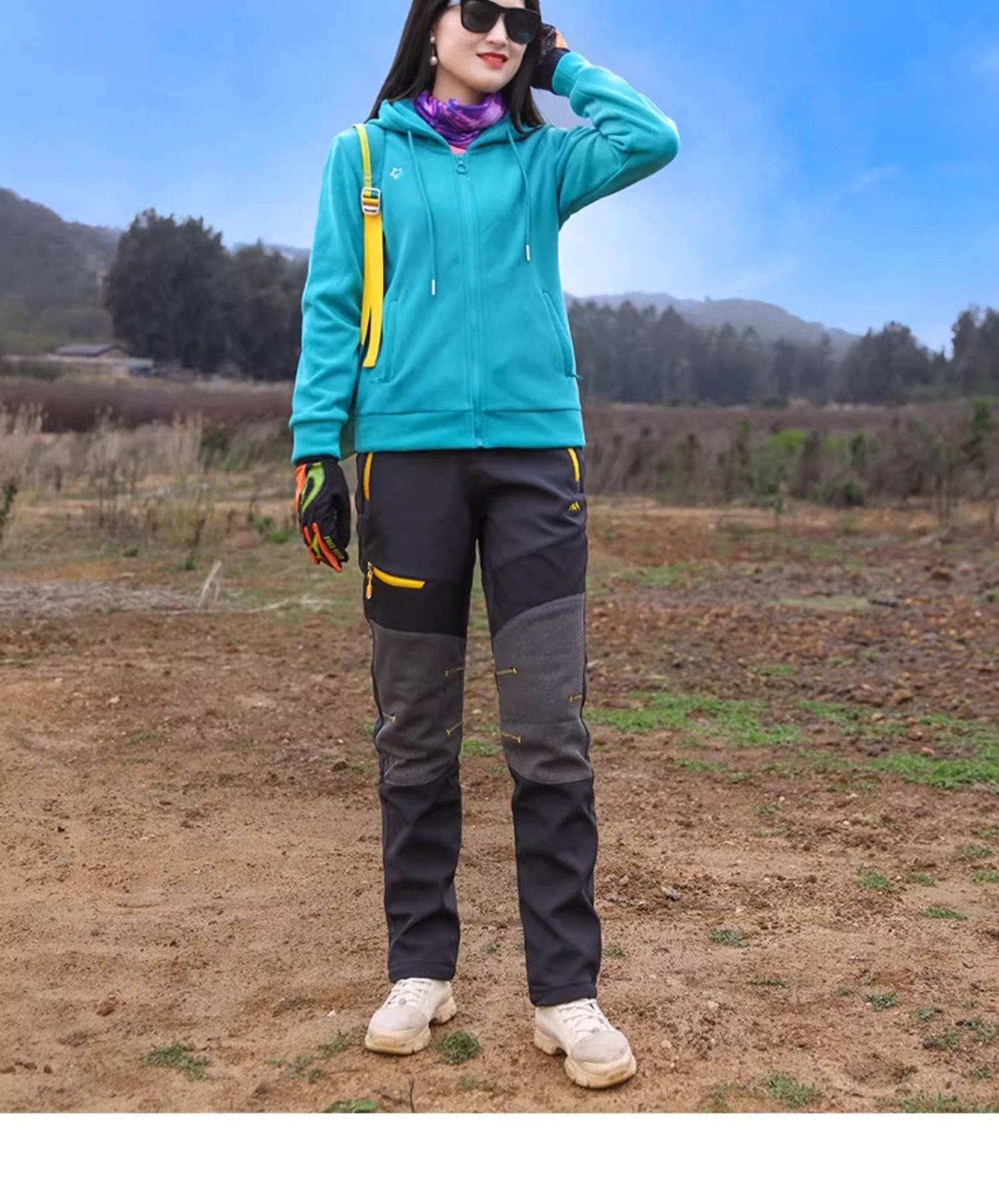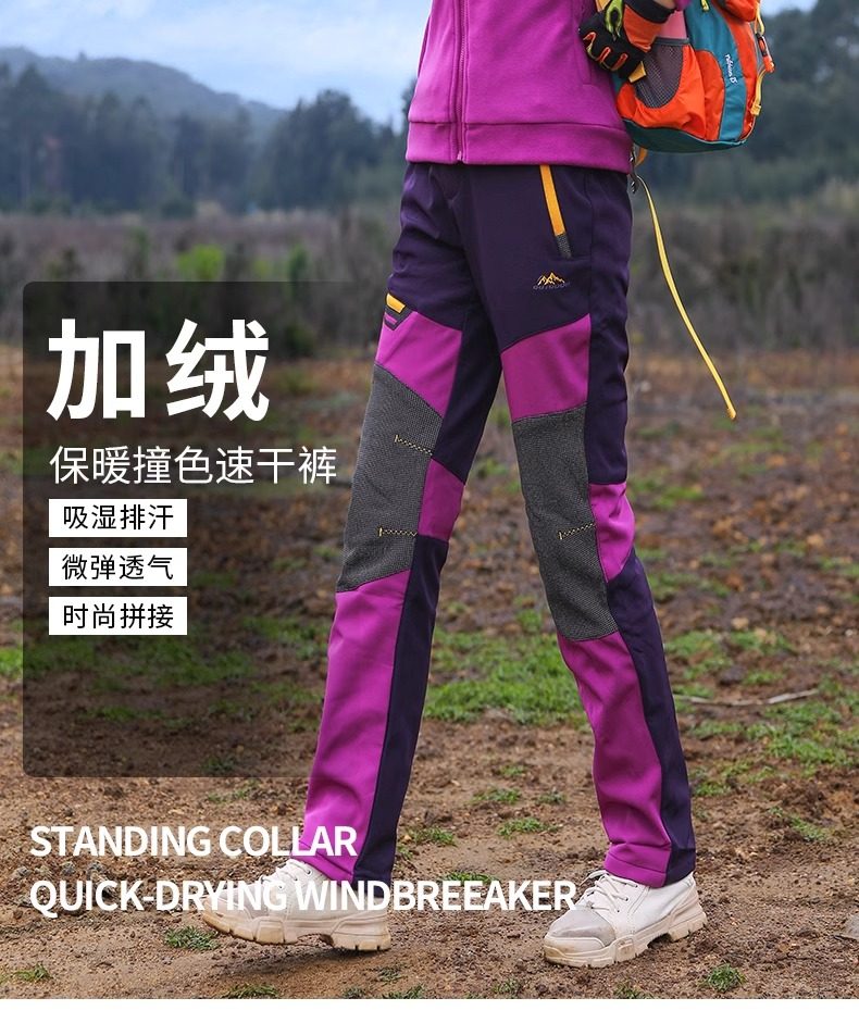 Women's Outdoor Windproof and Waterproof Thickened Loose-Fitting Hiking and Skiing Pants with Color-Blocking Softshell Pants for Autumn and Winter