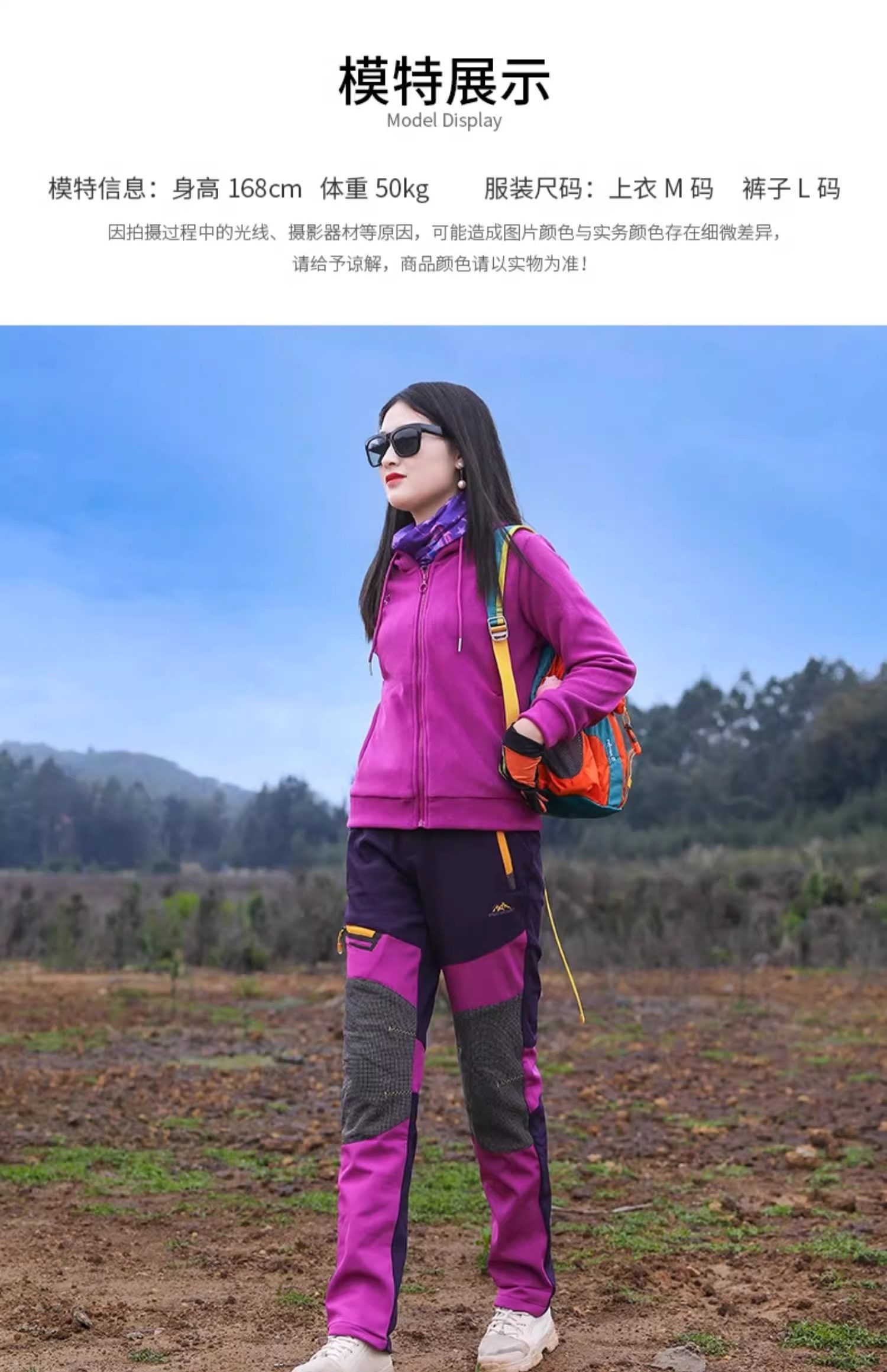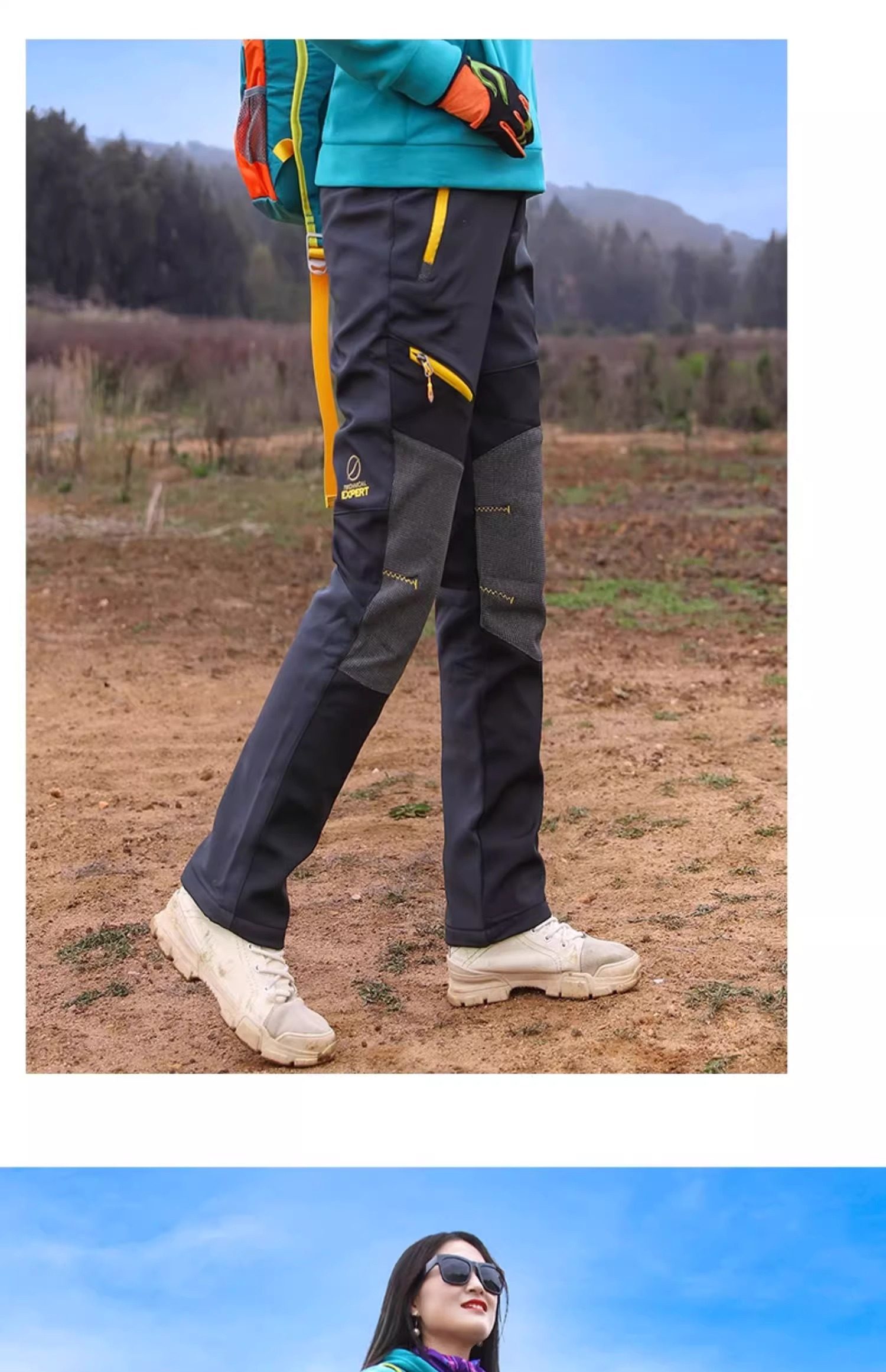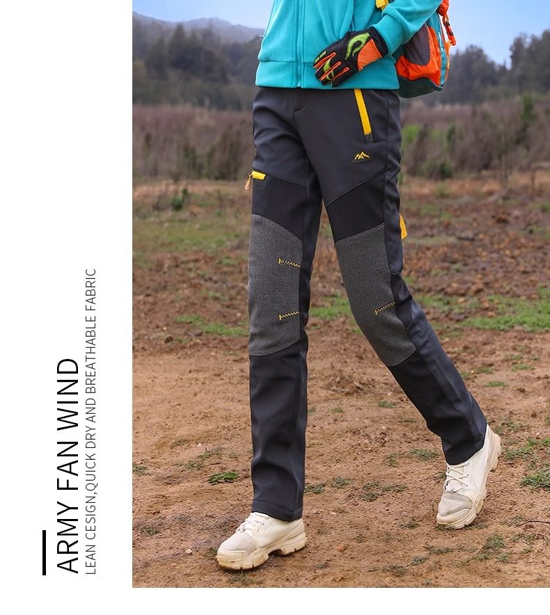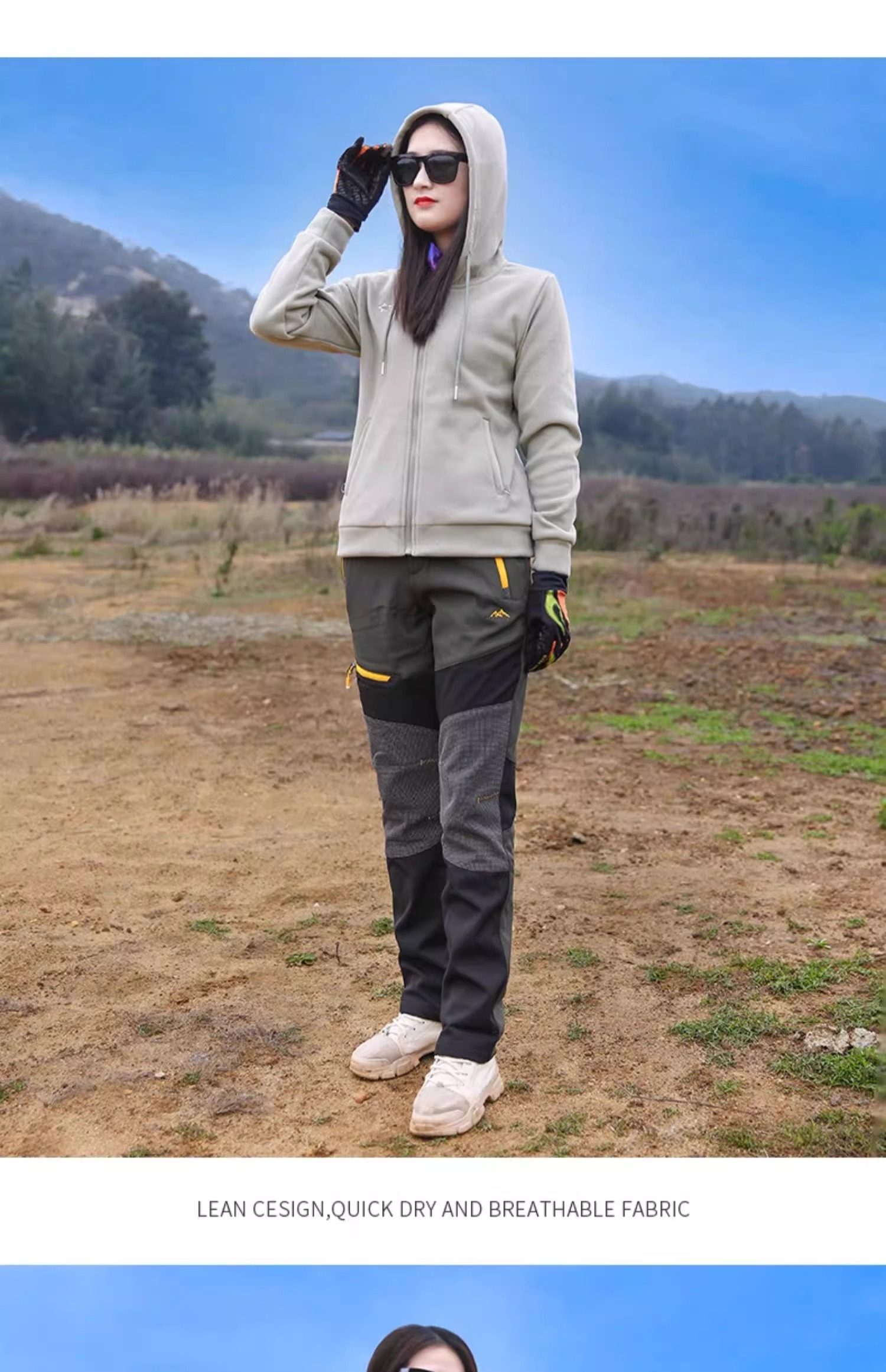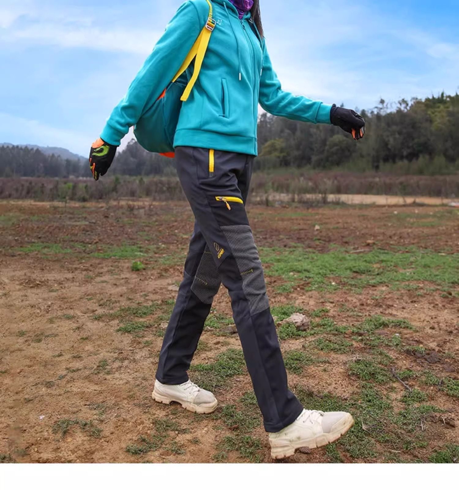 Women's Outdoor Windproof and Waterproof Thickened Loose-Fitting Hiking and Skiing Pants with Color-Blocking Softshell Pants for Autumn and Winter