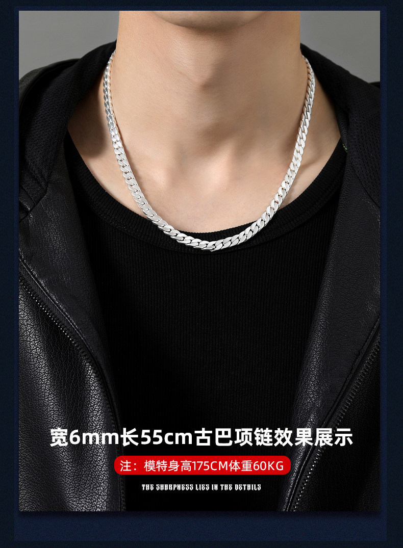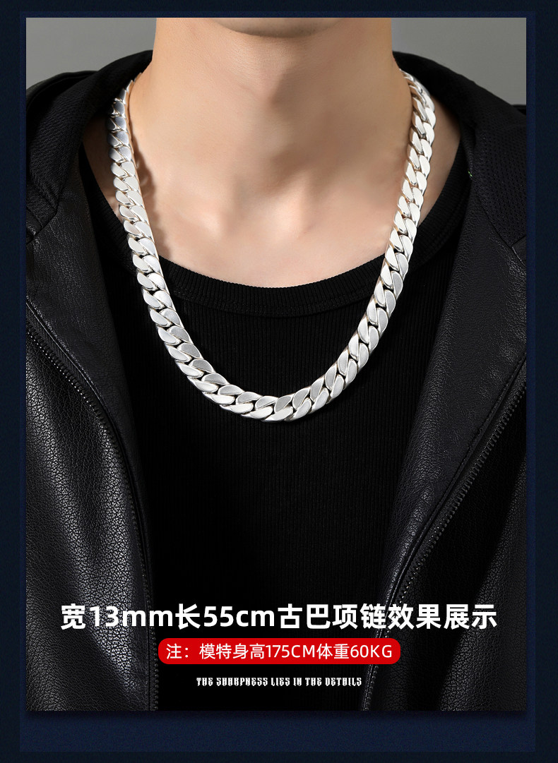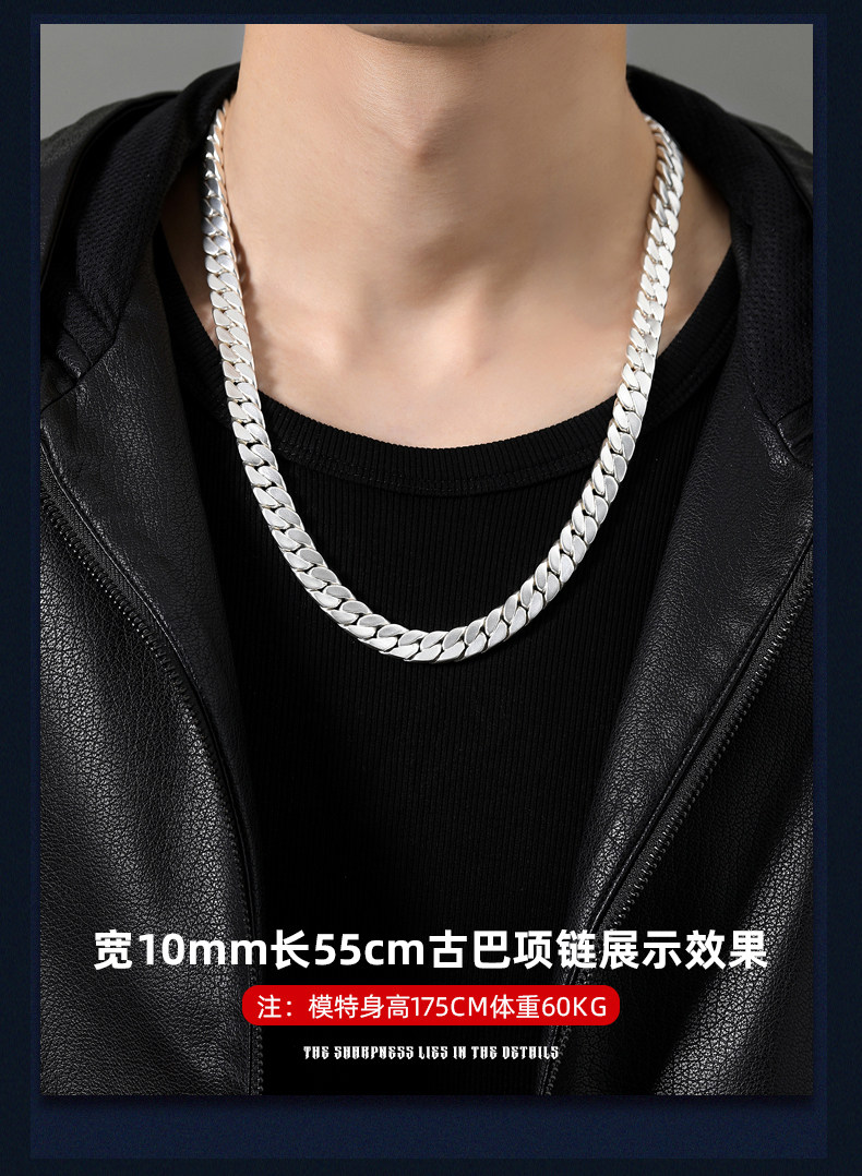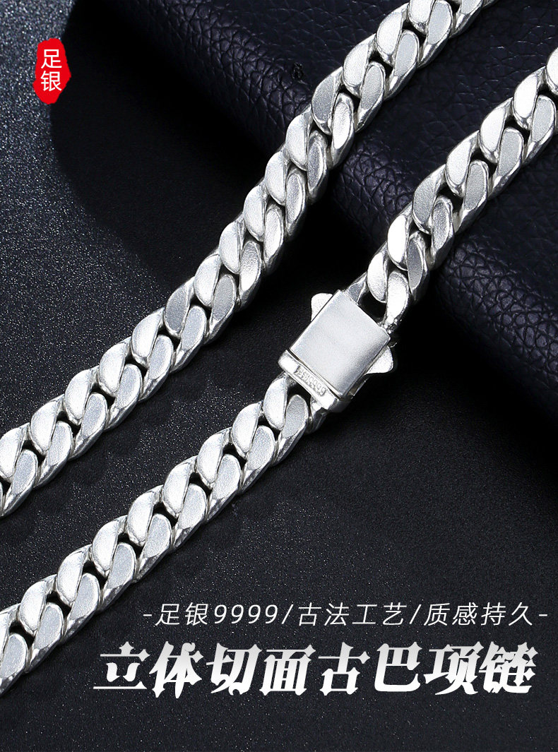 Official Brand Traditional Craftsmanship 9999 Pure Silver Cuban Necklace Men's Sterling Silver Necklace High-End Gift Box for Boyfriend