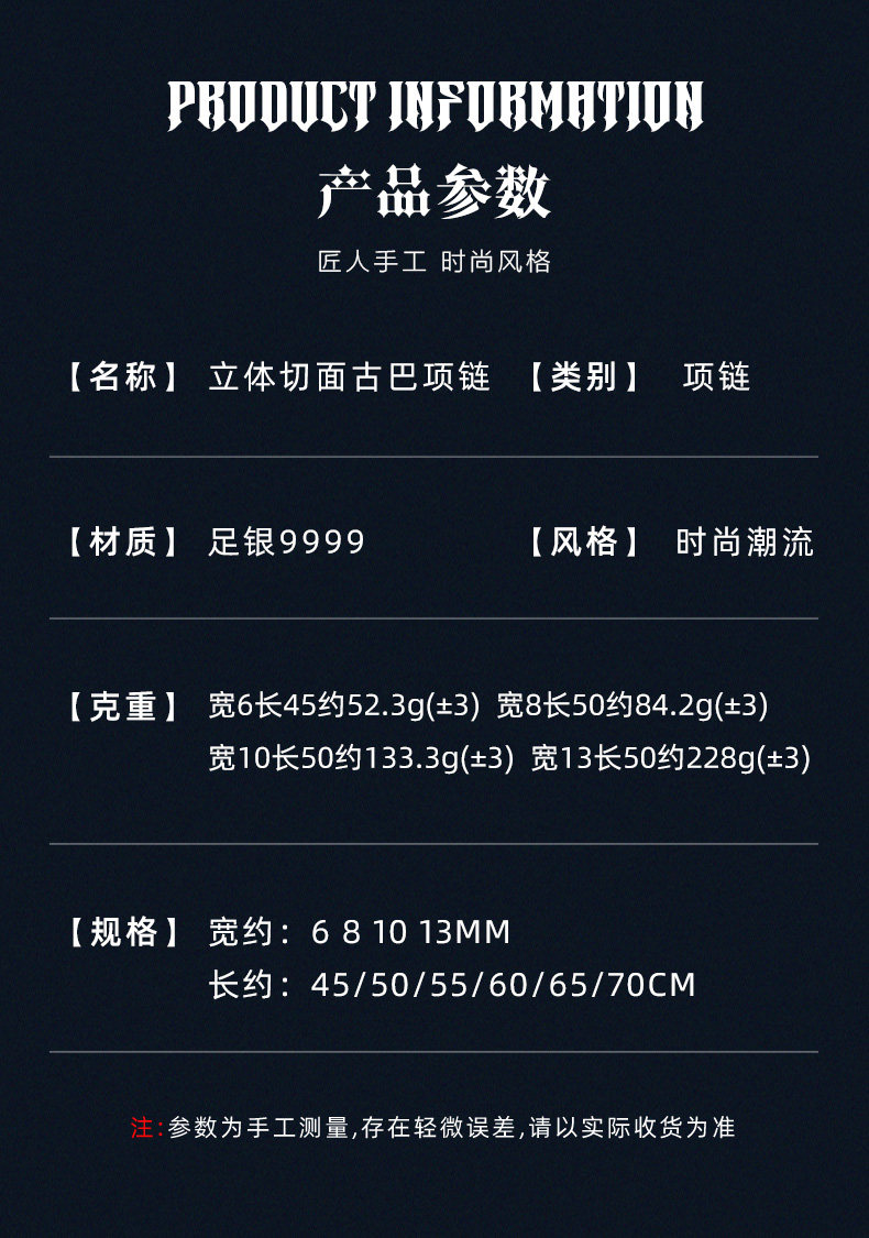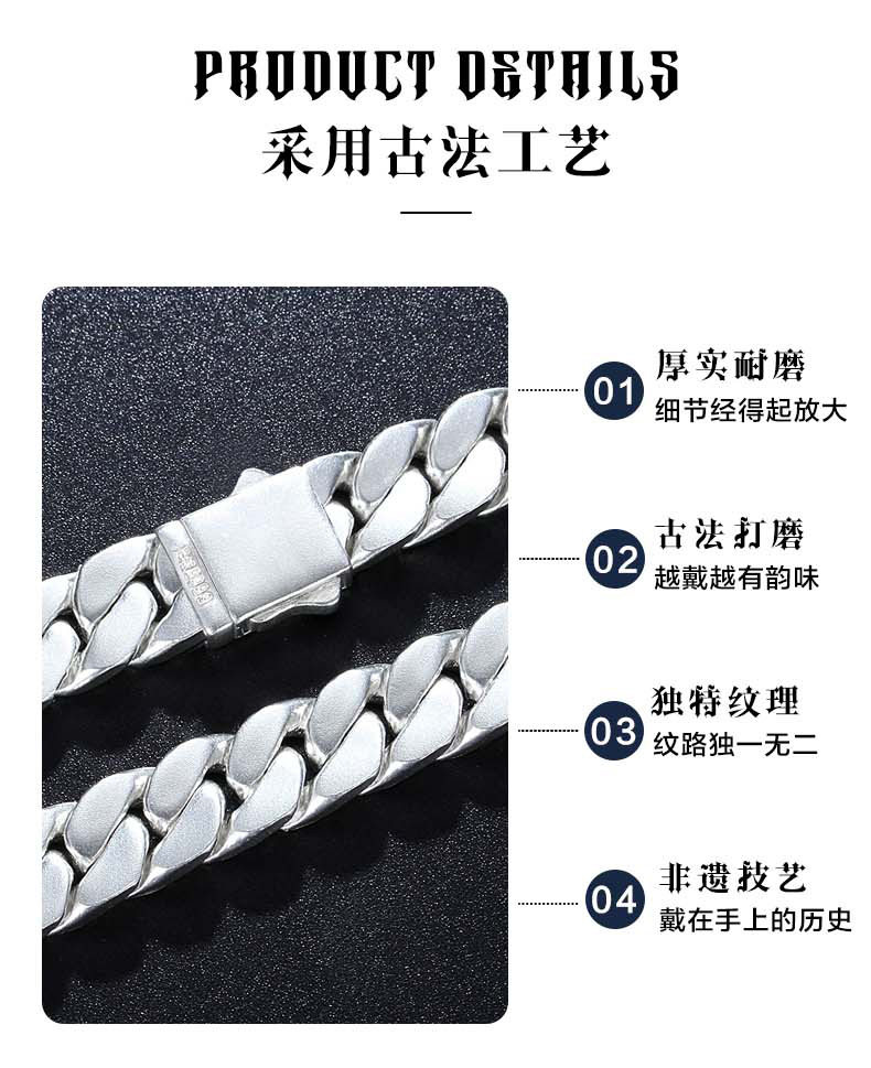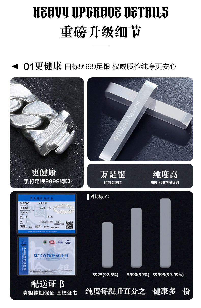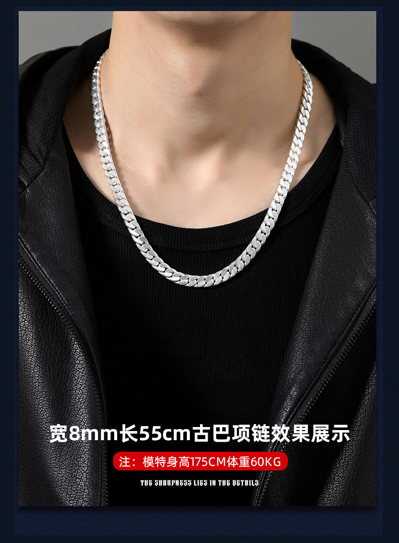 Official Brand Traditional Craftsmanship 9999 Pure Silver Cuban Necklace Men's Sterling Silver Necklace High-End Gift Box for Boyfriend