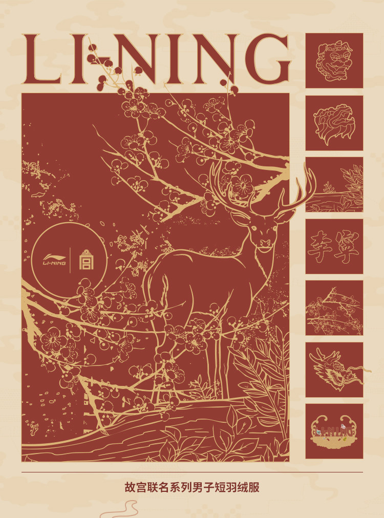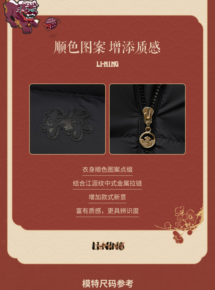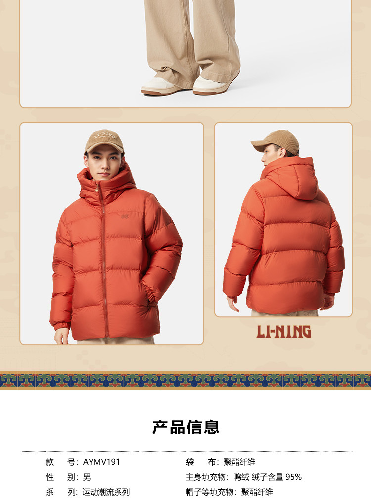 Li-Ning Chinese Culture Series Forbidden City Collaboration Short down Jacket Men's Official New Winter Duck down Sportswear