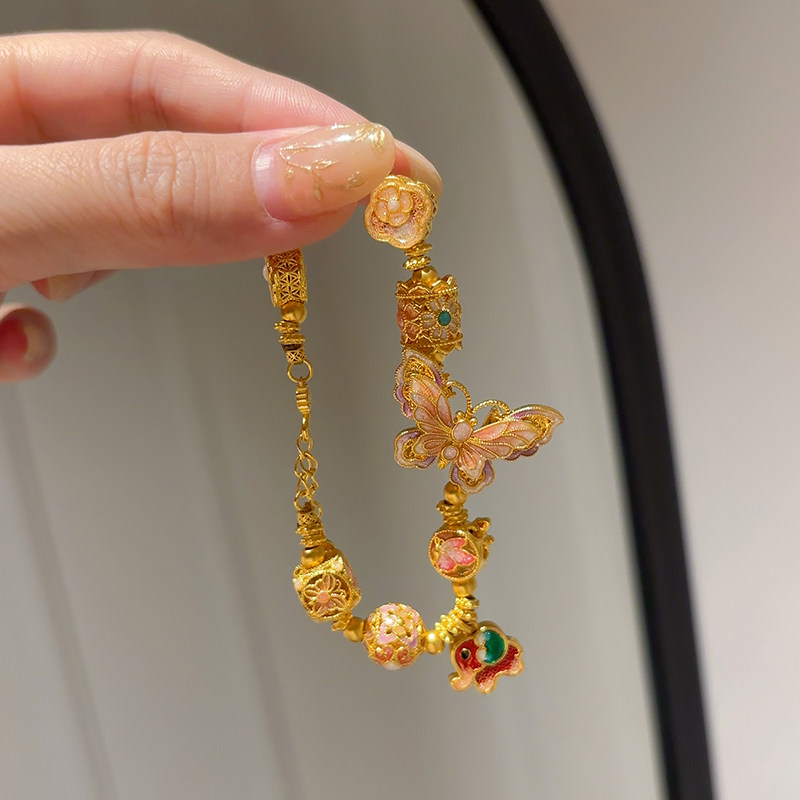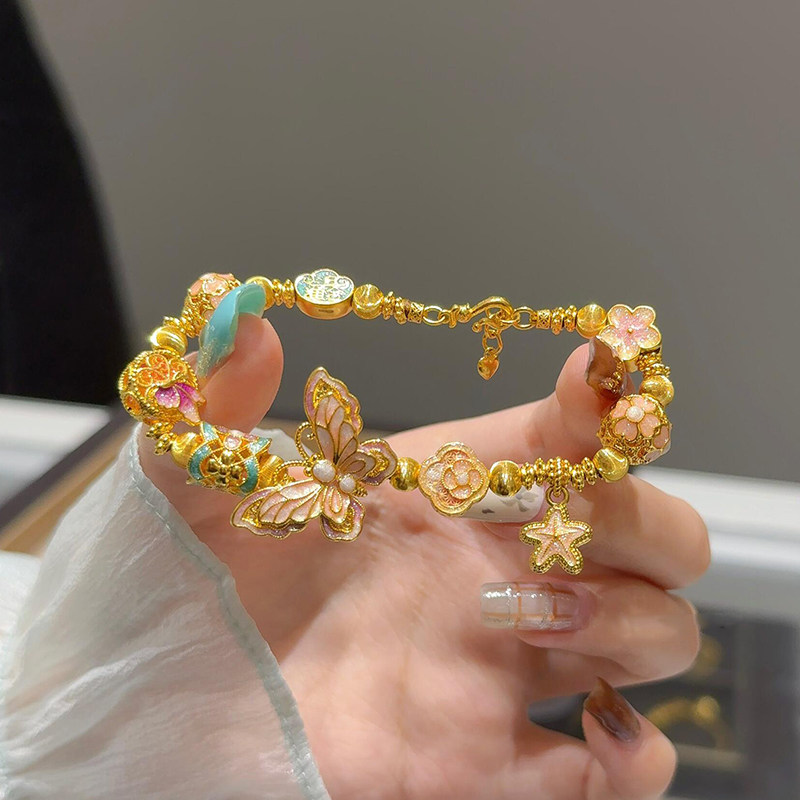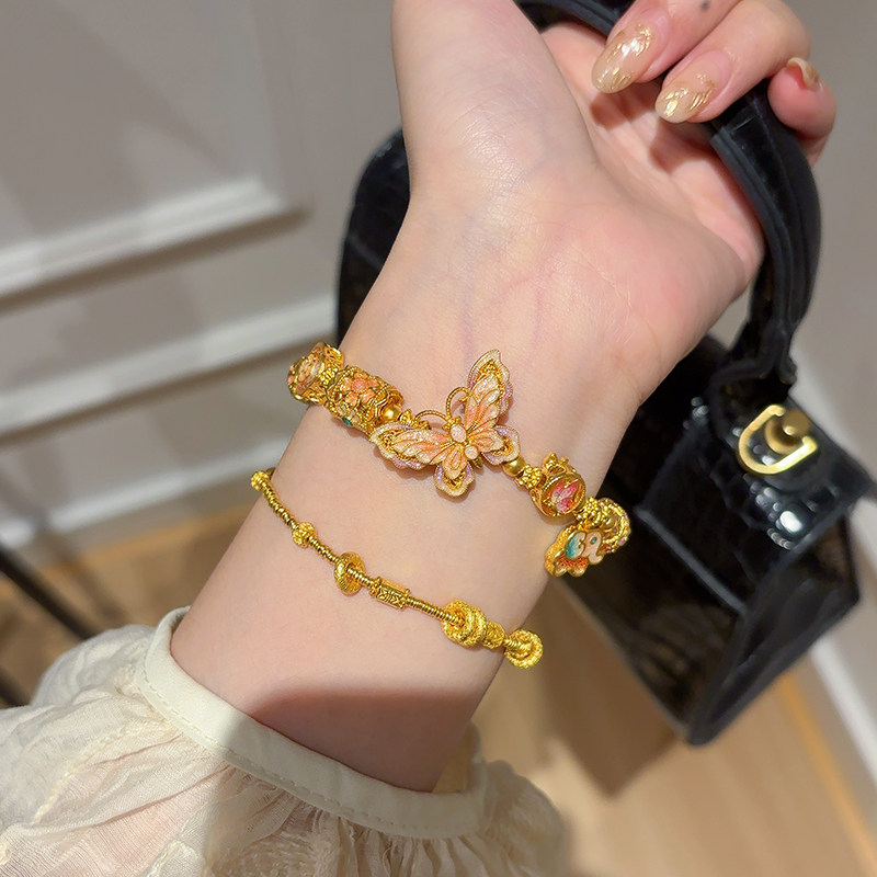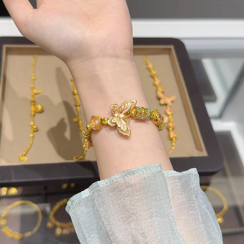 Sea Rover Gold Filigree Butterfly Bracelet for Women 2025 New Model 999 Pure Gold Crushed Gold Bracelet Gift for Girlfriend