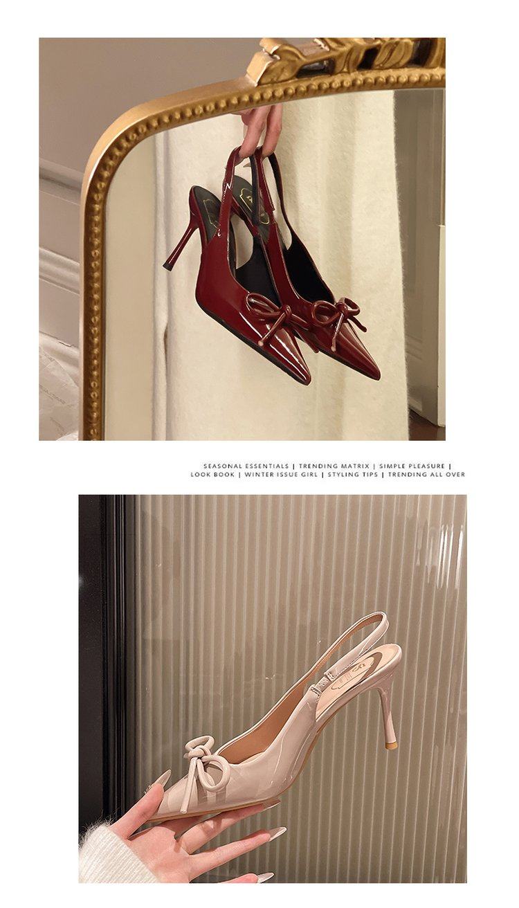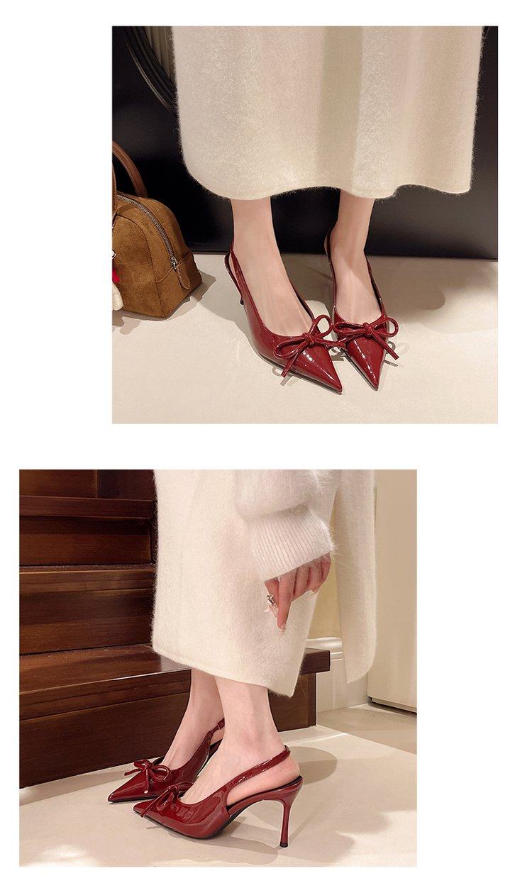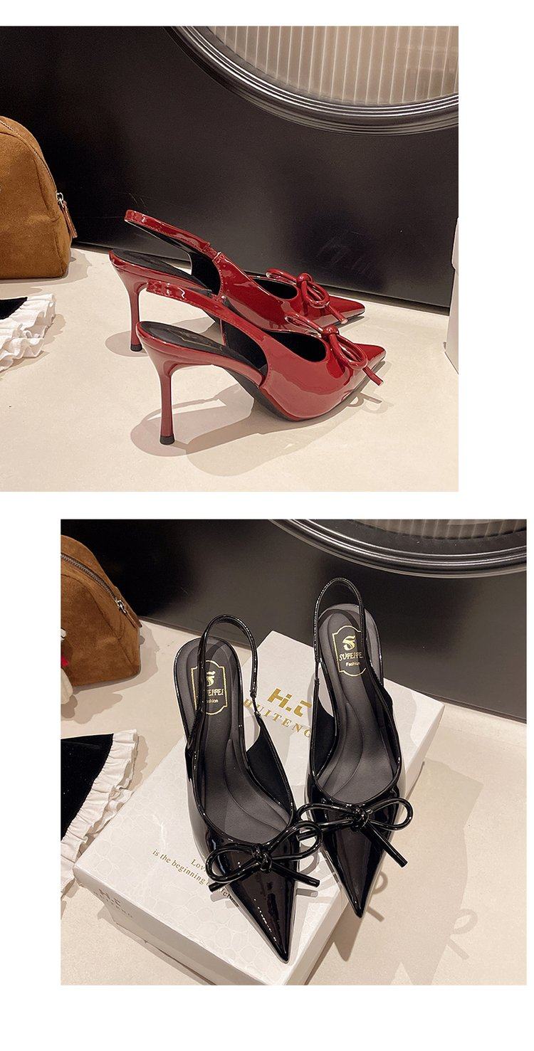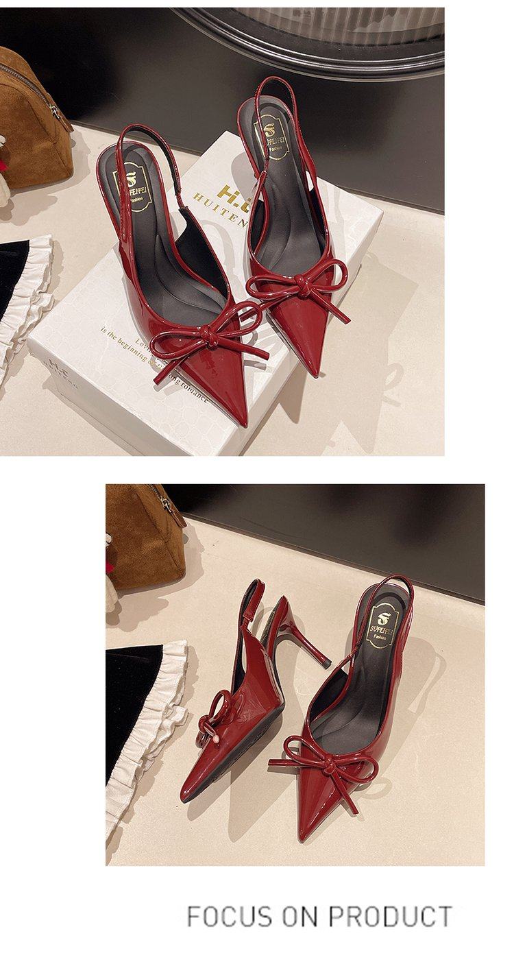 Red Patent Leather Pointed-Toe Bow Sandals for Women 2025 Spring and Autumn New French Style Shallow Mouth Stiletto High Heels for Women