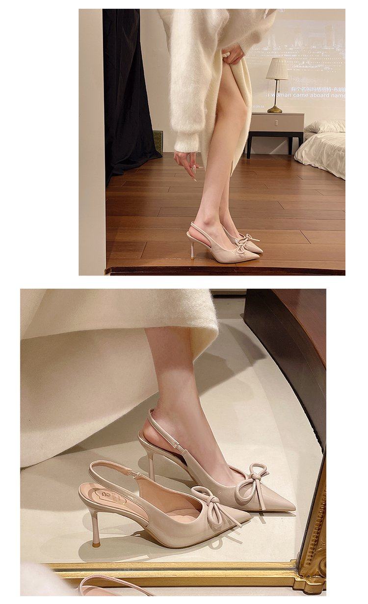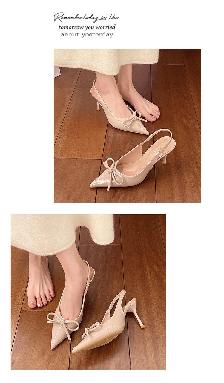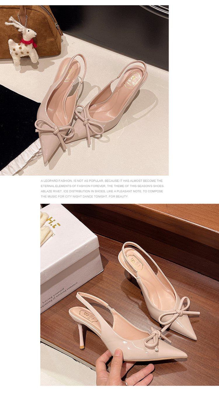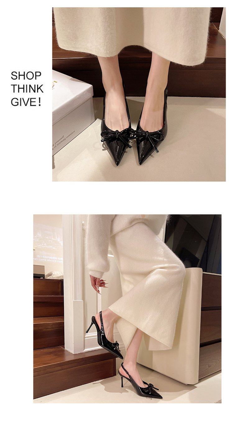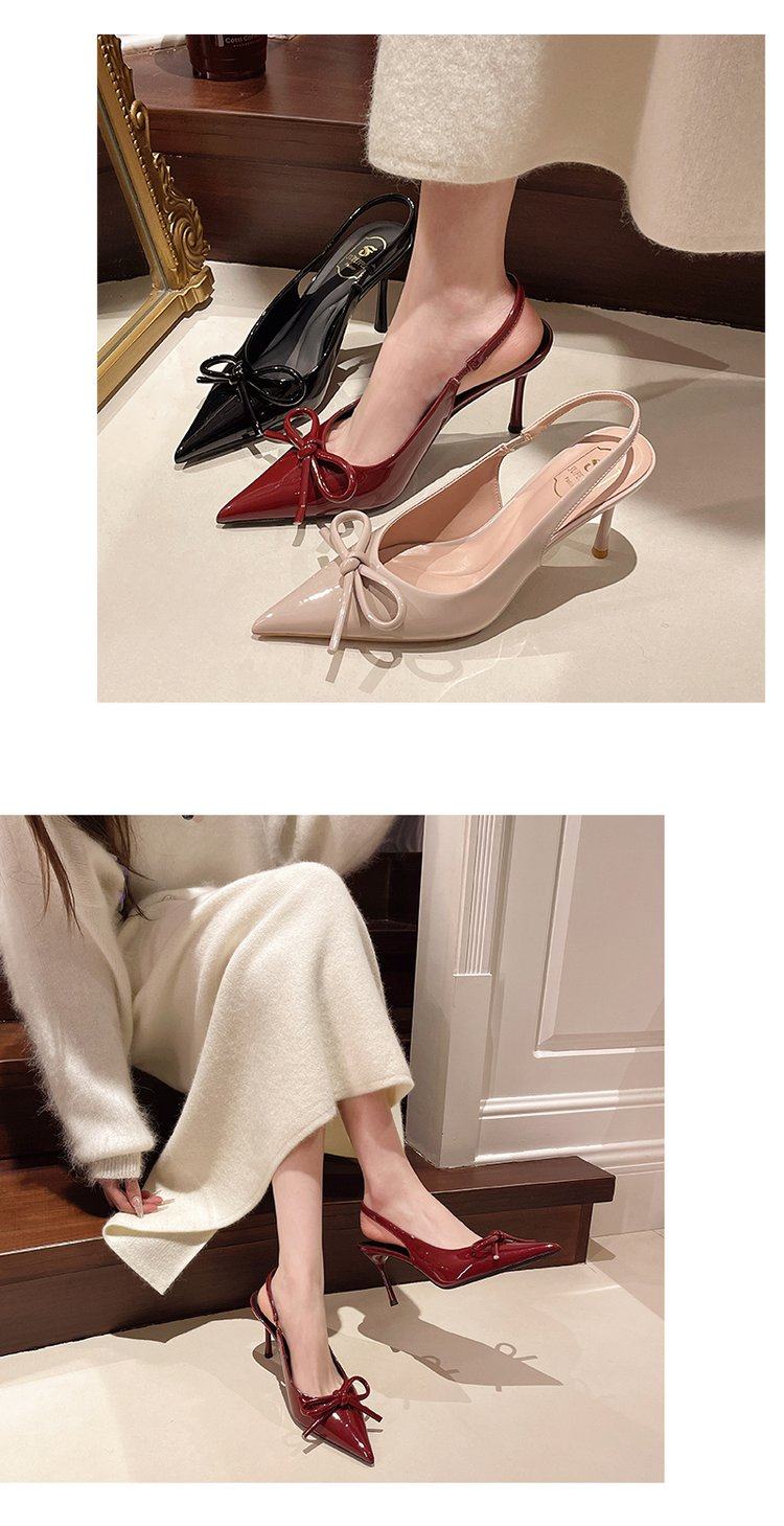 Red Patent Leather Pointed-Toe Bow Sandals for Women 2025 Spring and Autumn New French Style Shallow Mouth Stiletto High Heels for Women