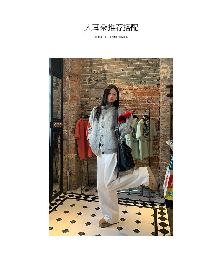 Big Ears Lumoder Light Gray Quilted Woolen Short Outwear for Women, New Winter Style, High-End Loose Cotton Outwear