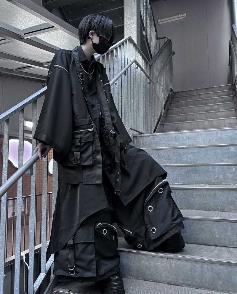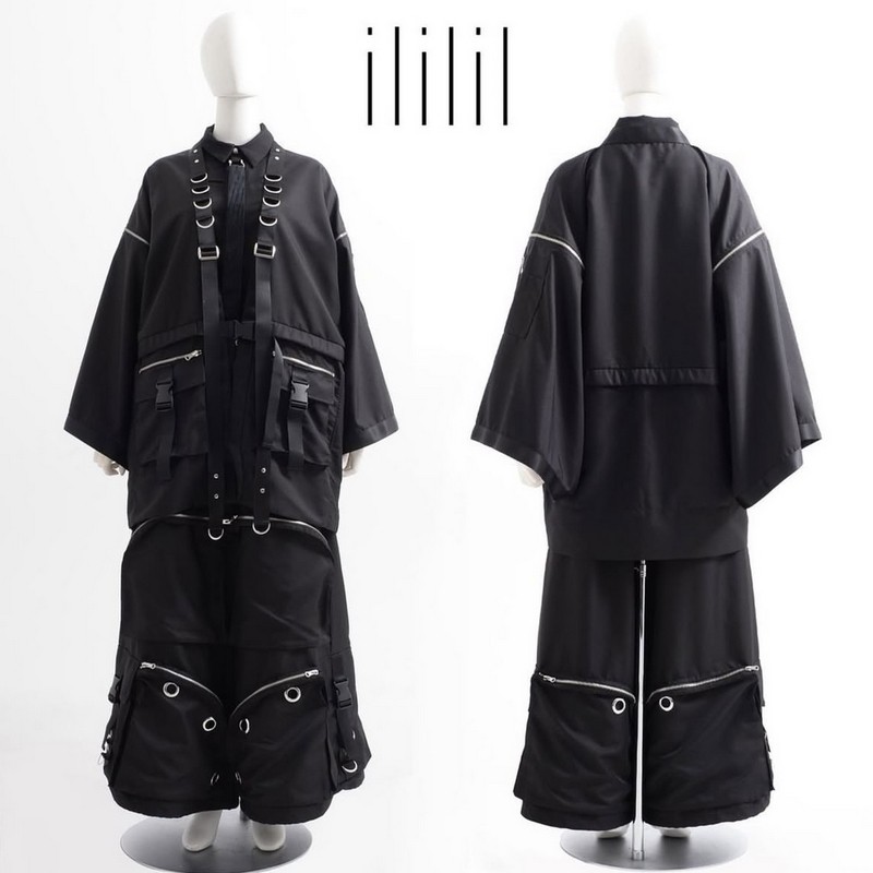 Japanese Trendy Brand Ililil Dark Subculture Functional Style Heavy-Duty Kimono Haori Jacket Wide-Leg Pants Unisex Men