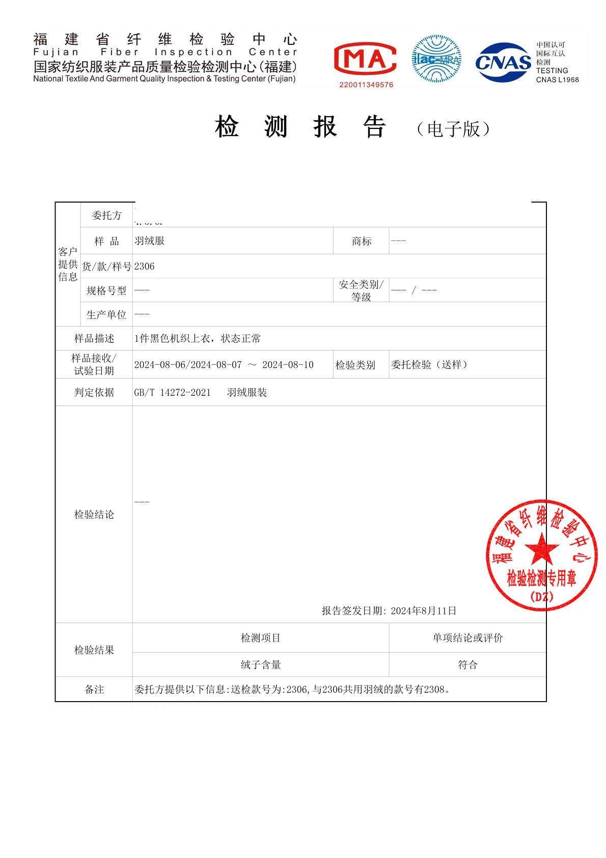 2XL肩宽46胸围112衣长69袖长61充绒量94g重量280g