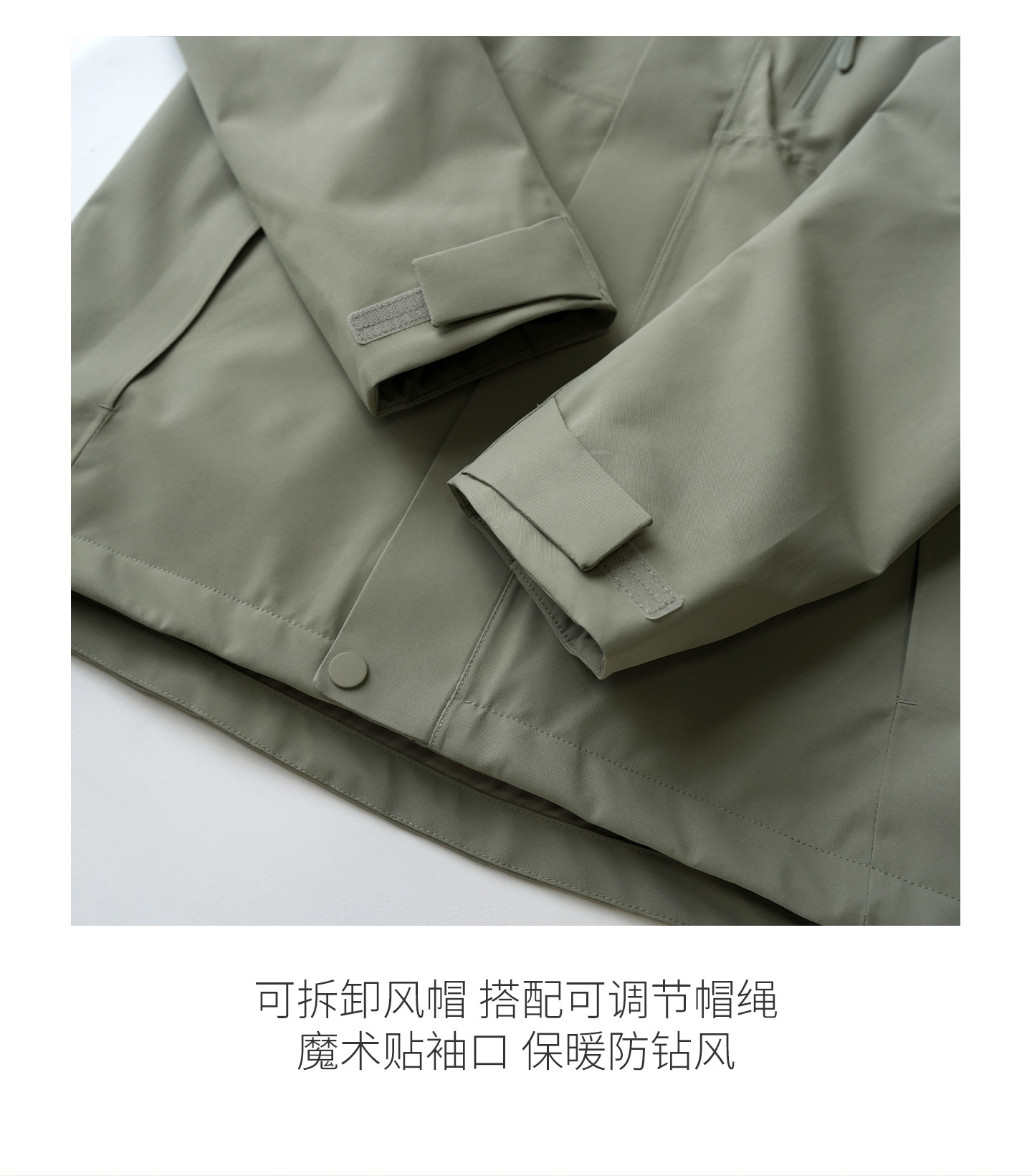 双重门襟+魔术贴袖口 保暖防钻风