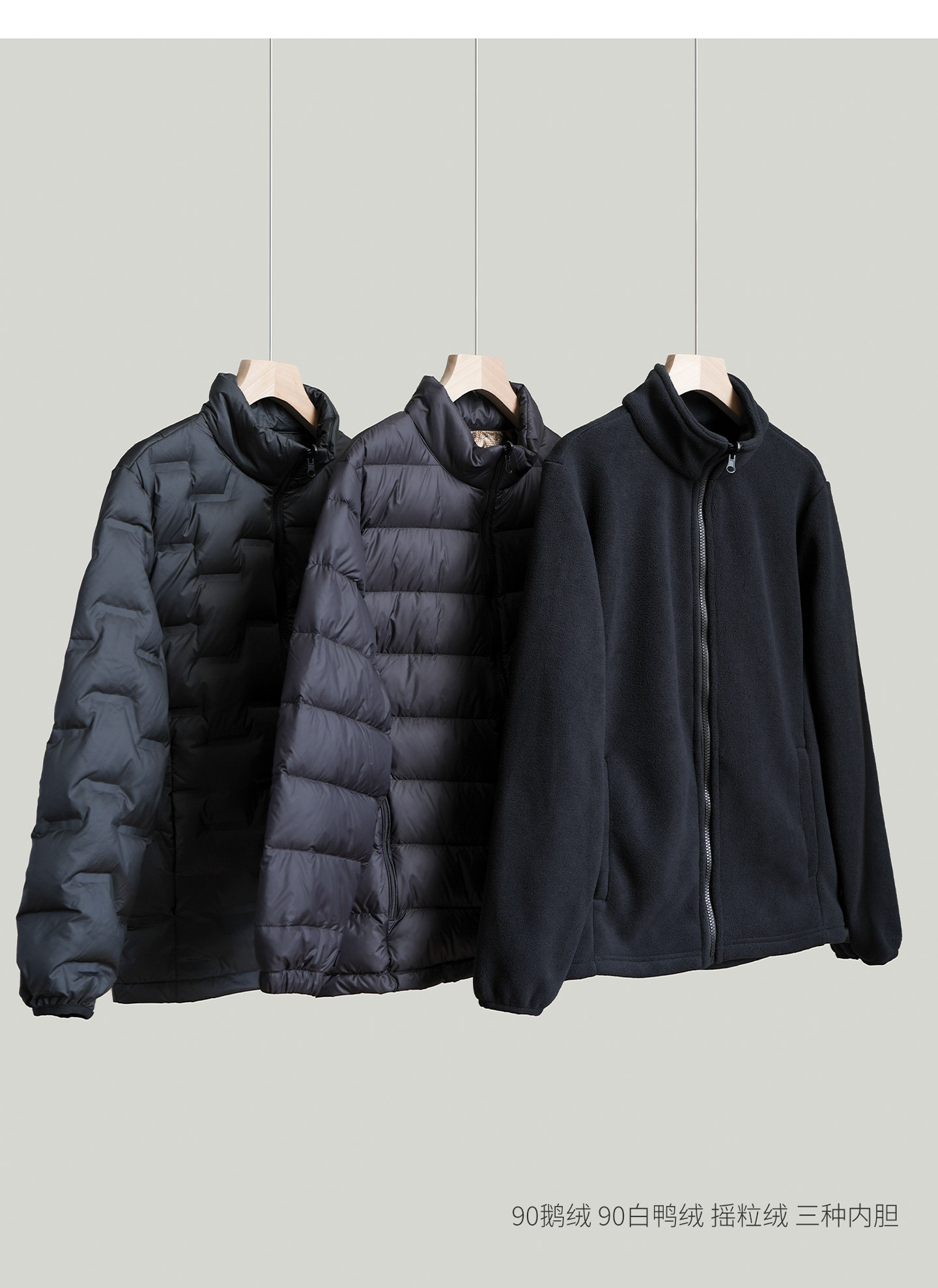 摇粒绒 90白鸭绒 90鹅绒 三种内胆