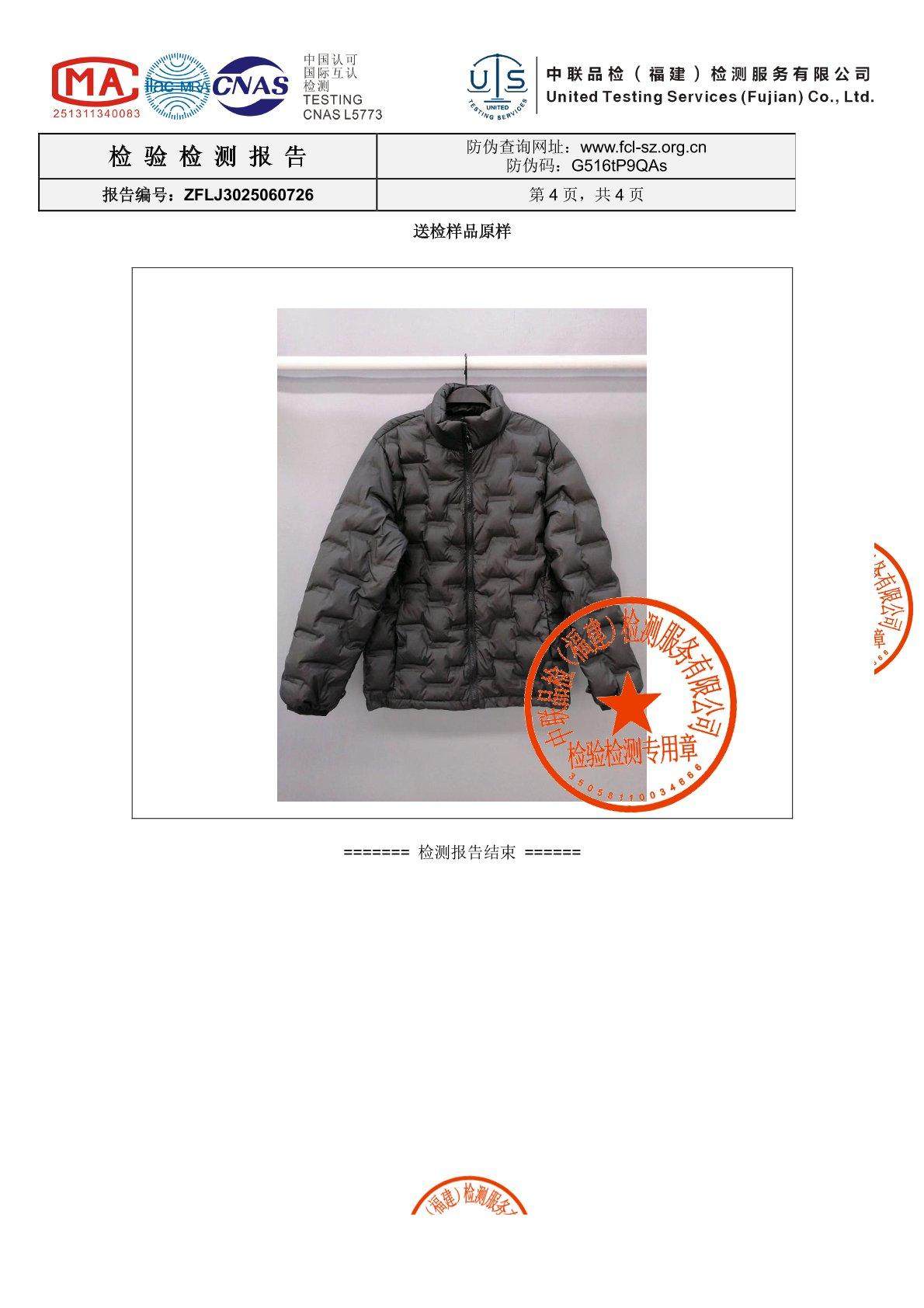 4XL肩宽49胸围120衣长74袖长66充绒量101g重量330g