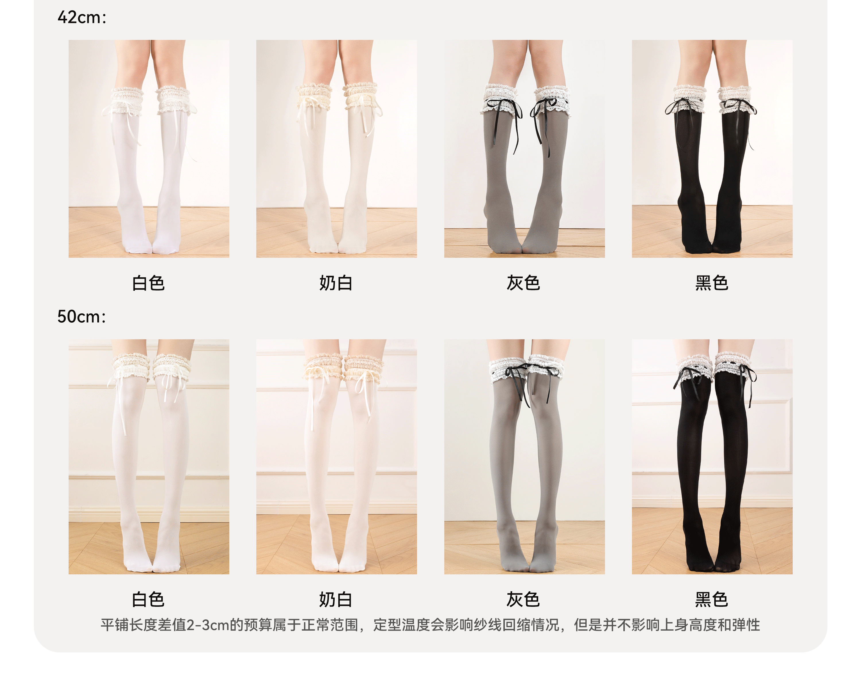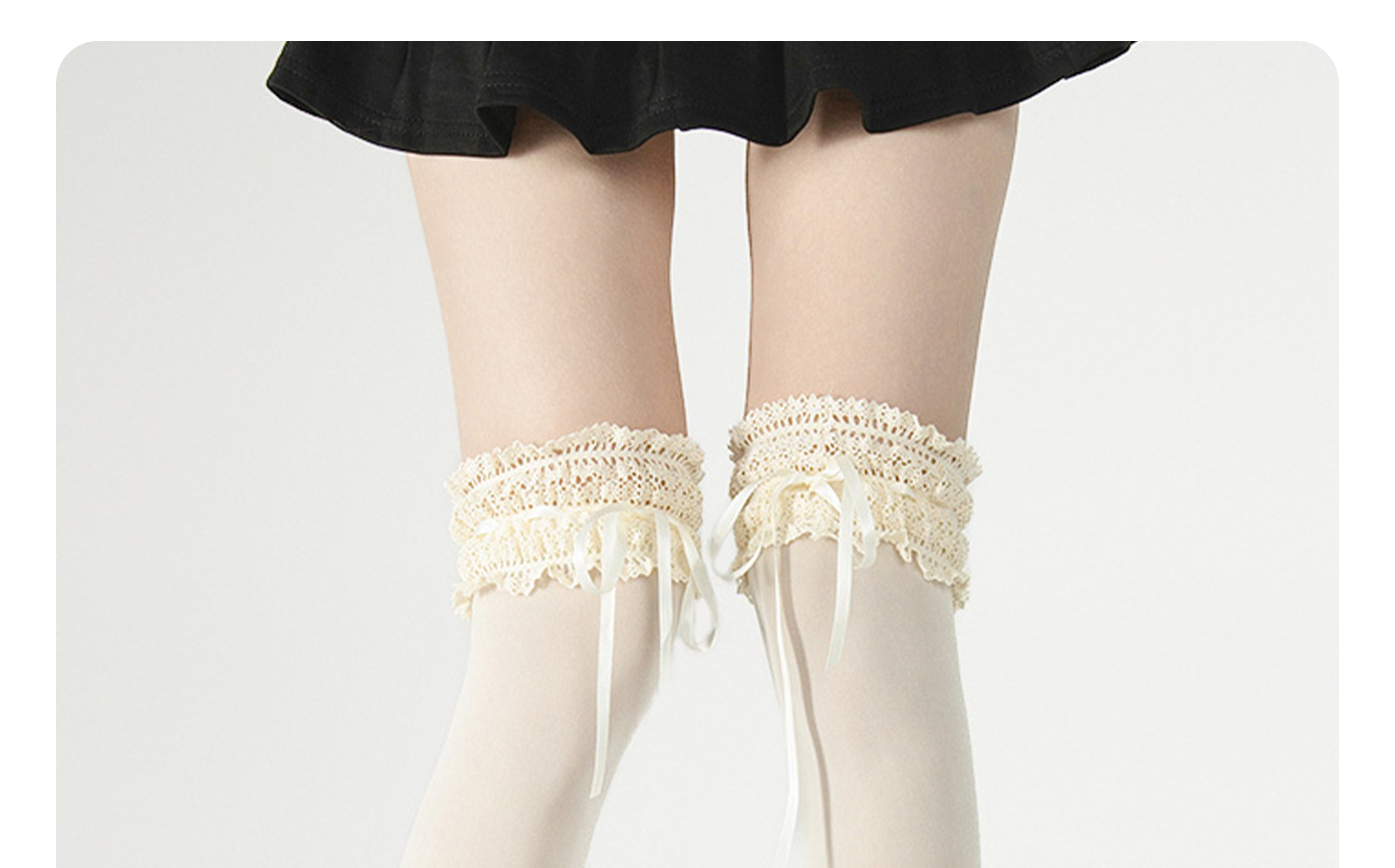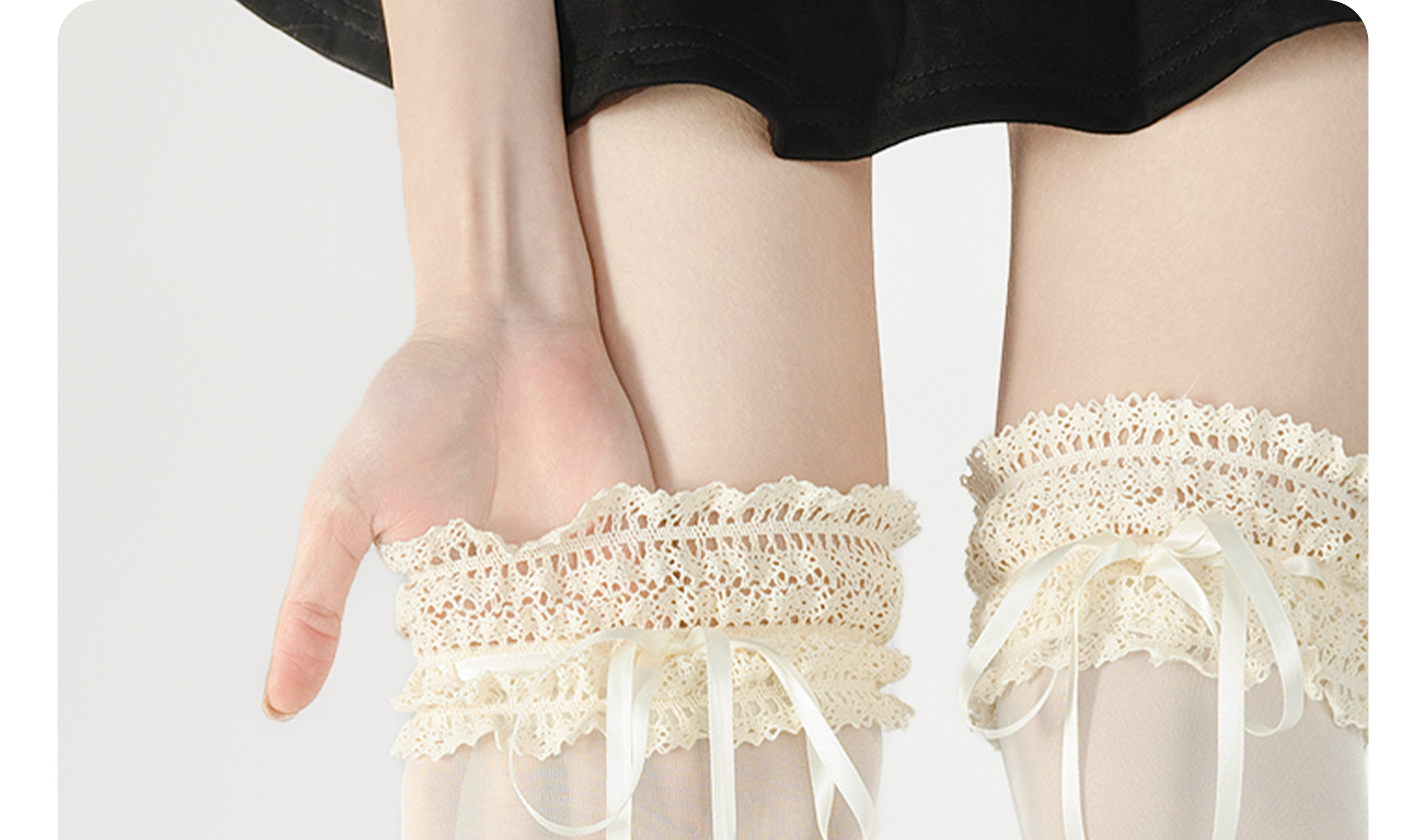 Arrive at the First Floor and Get Spring/Summer Thin Velvet Over-The-Knee Socks in Black, Slimming Lace Trim with Bow, Jk Thigh-High Socks