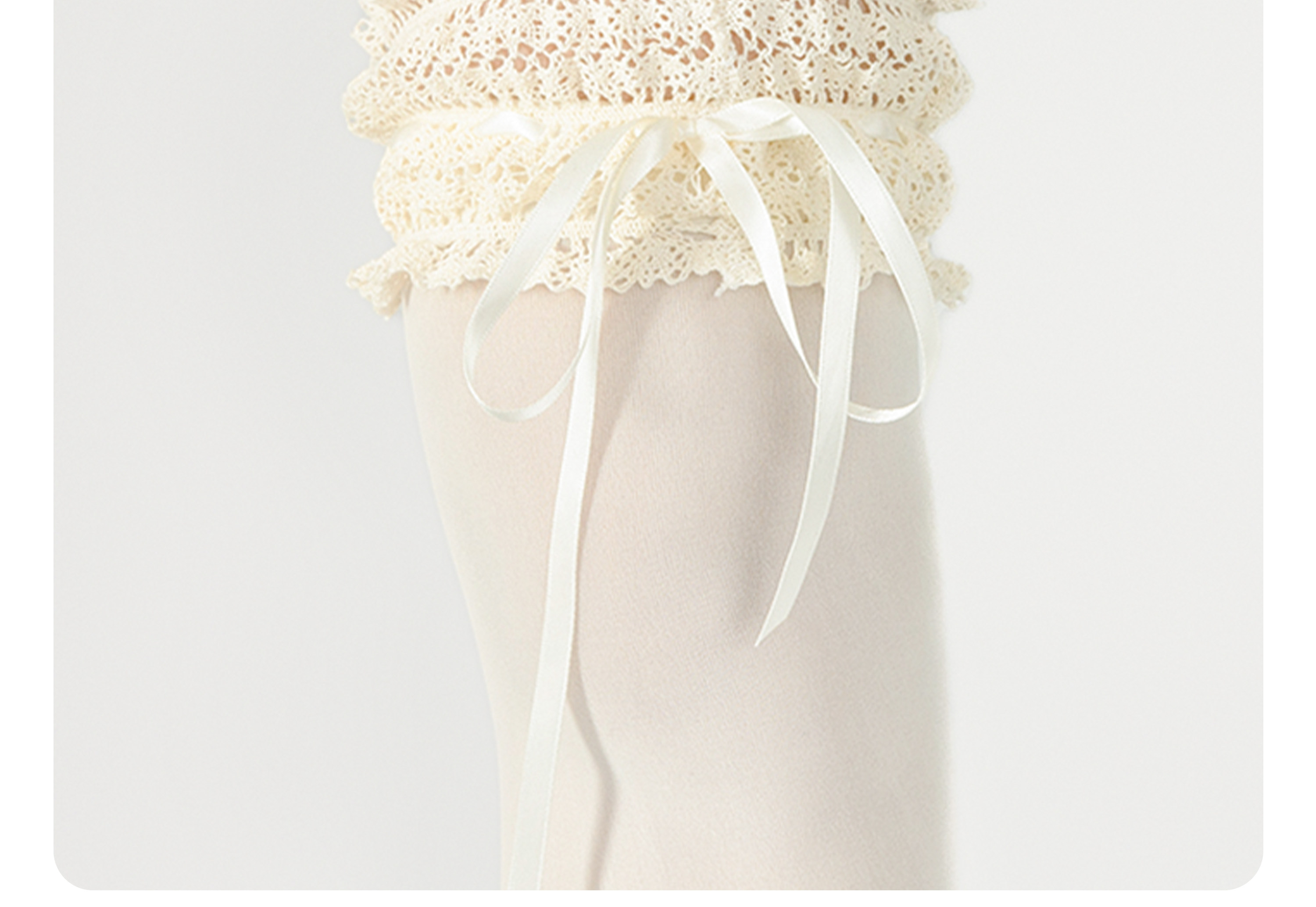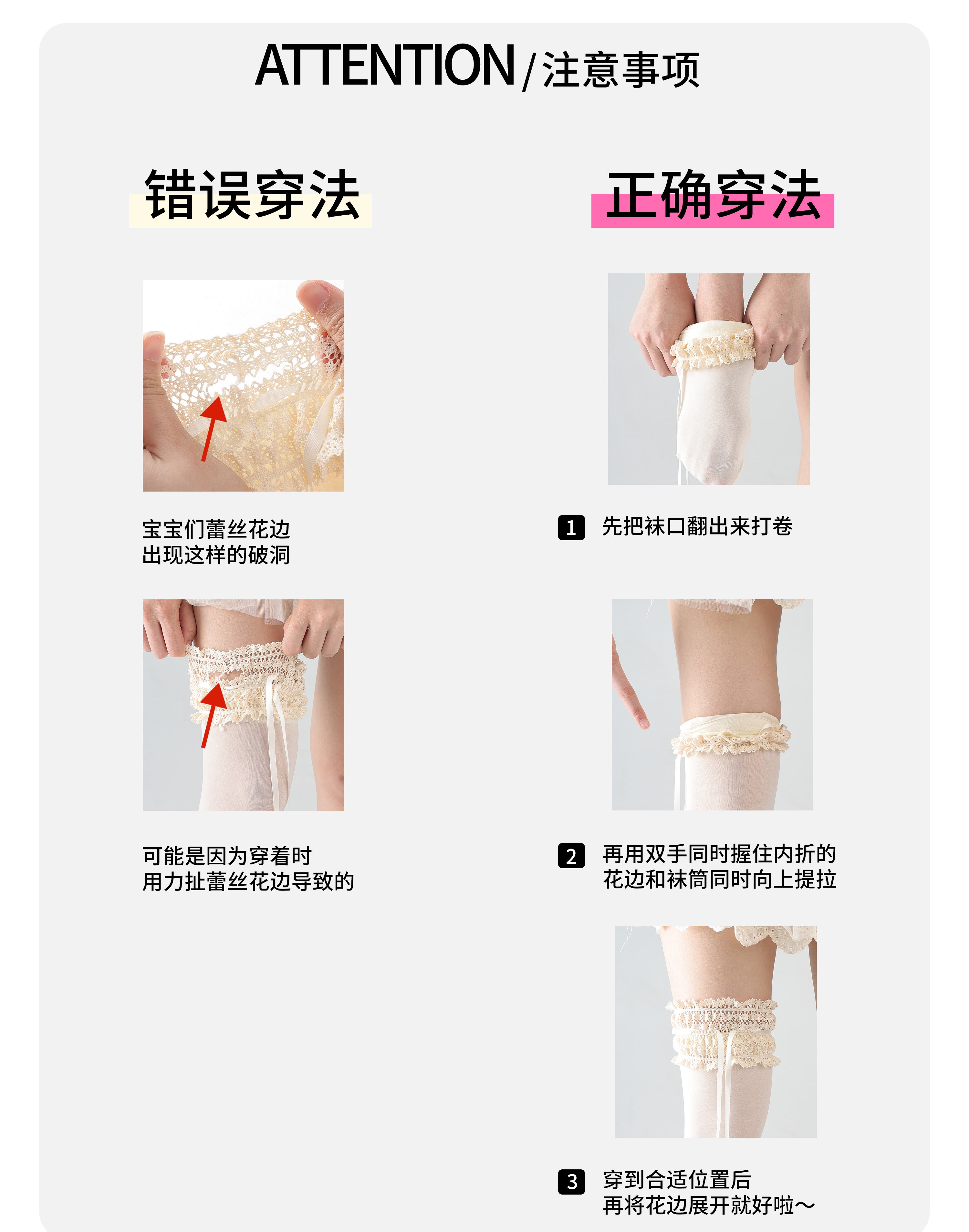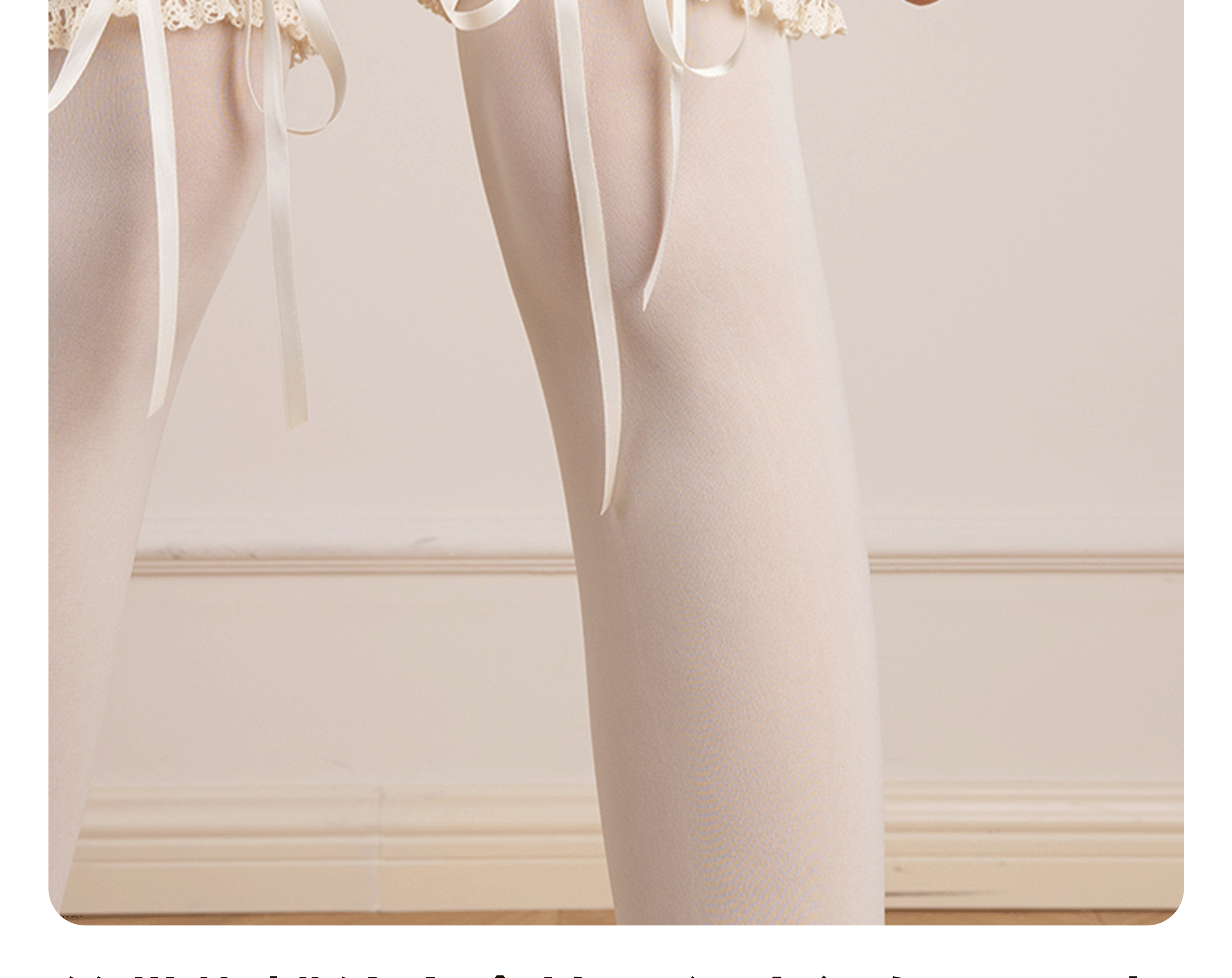 Arrive at the First Floor and Get Spring/Summer Thin Velvet Over-The-Knee Socks in Black, Slimming Lace Trim with Bow, Jk Thigh-High Socks
