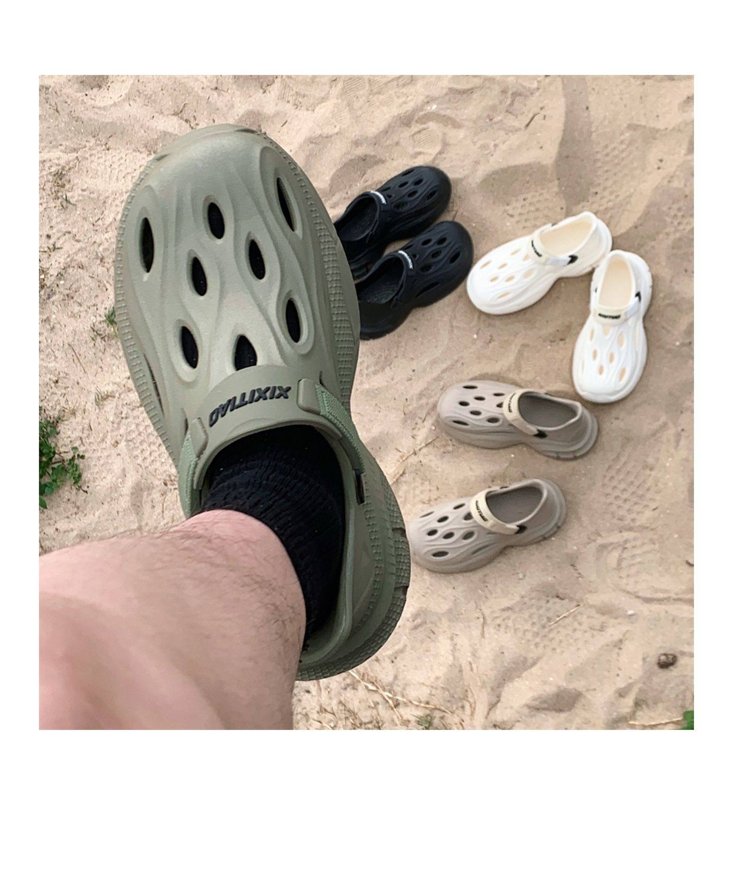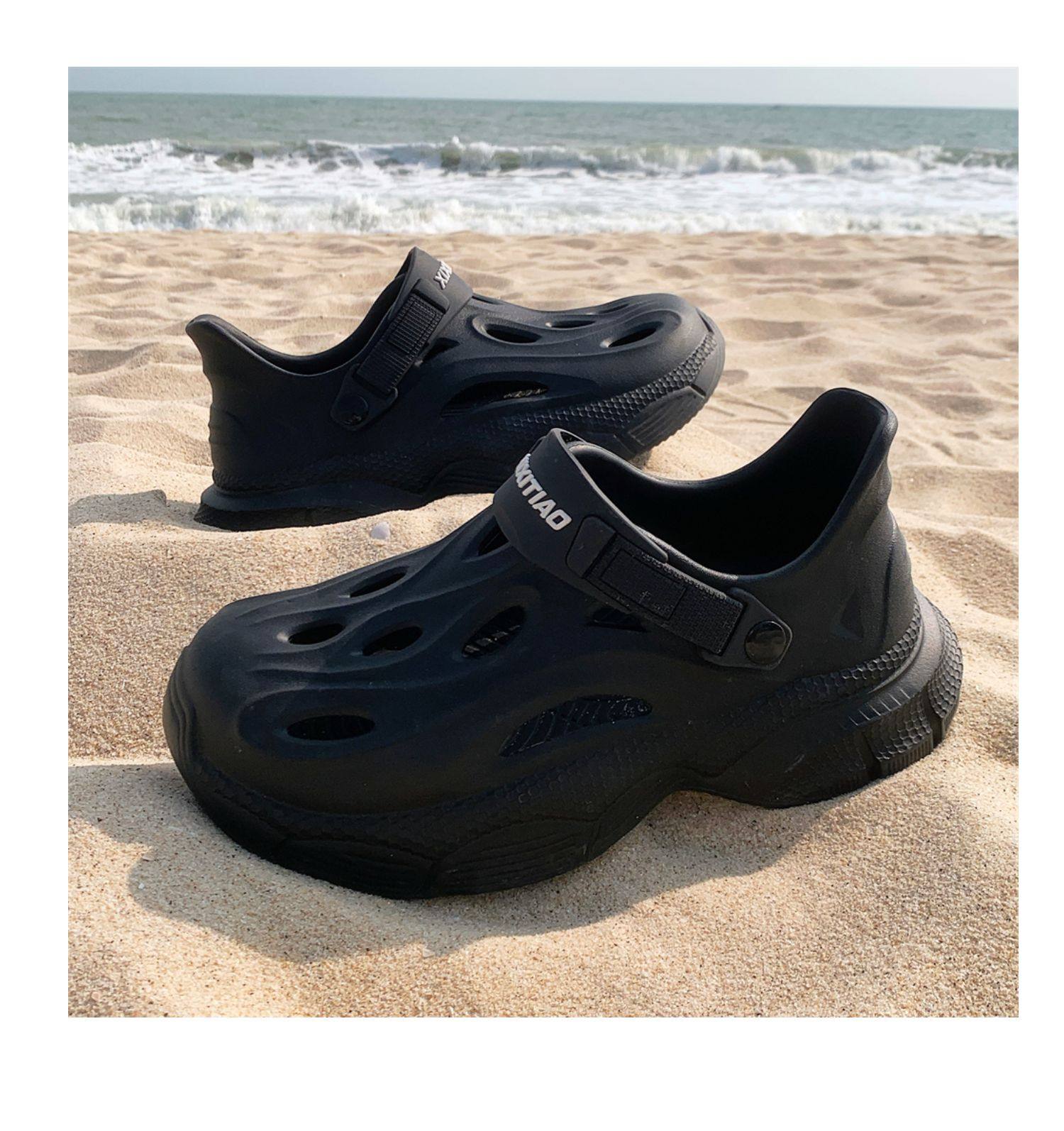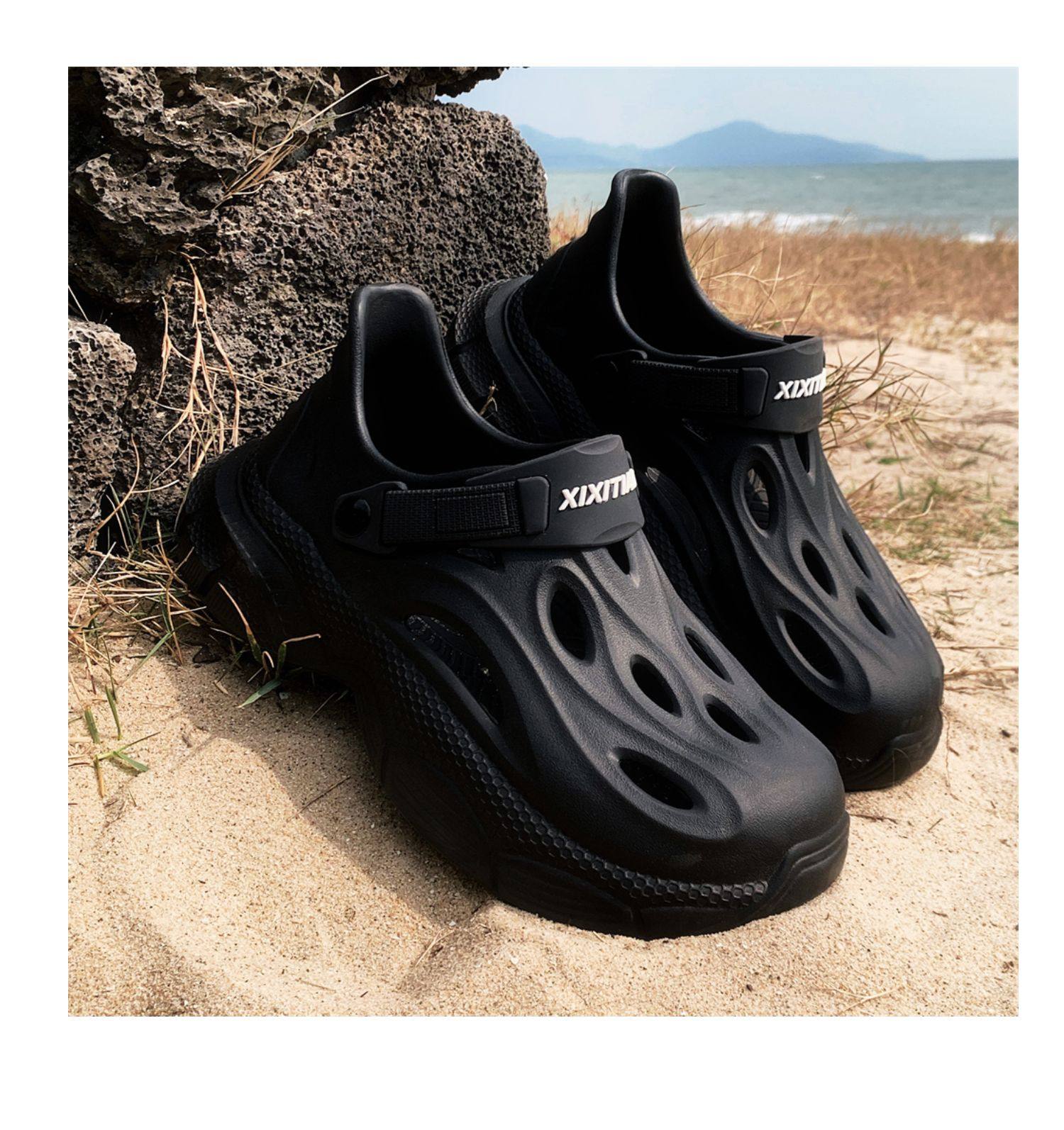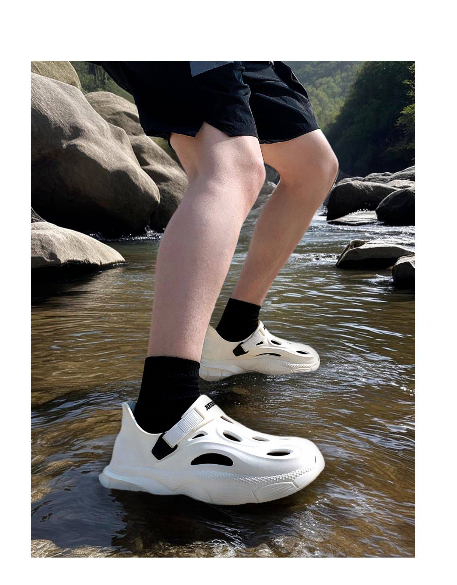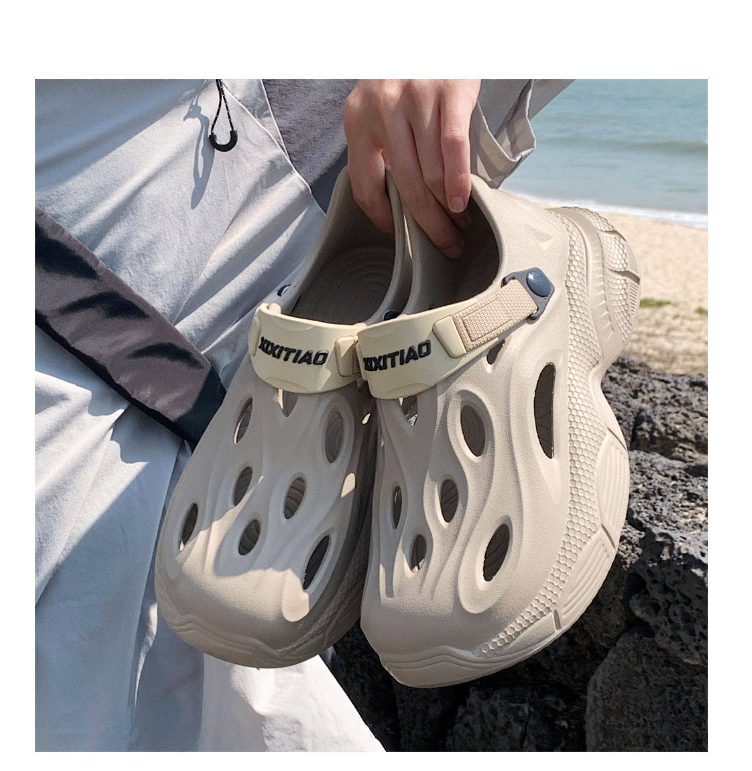 Thin Strap Men's Perforated Shoes Outdoor Non-Slip Wear-Resistant Slip-On Beach Shoes Driving Fishing Closed-Toe Sandals Summer