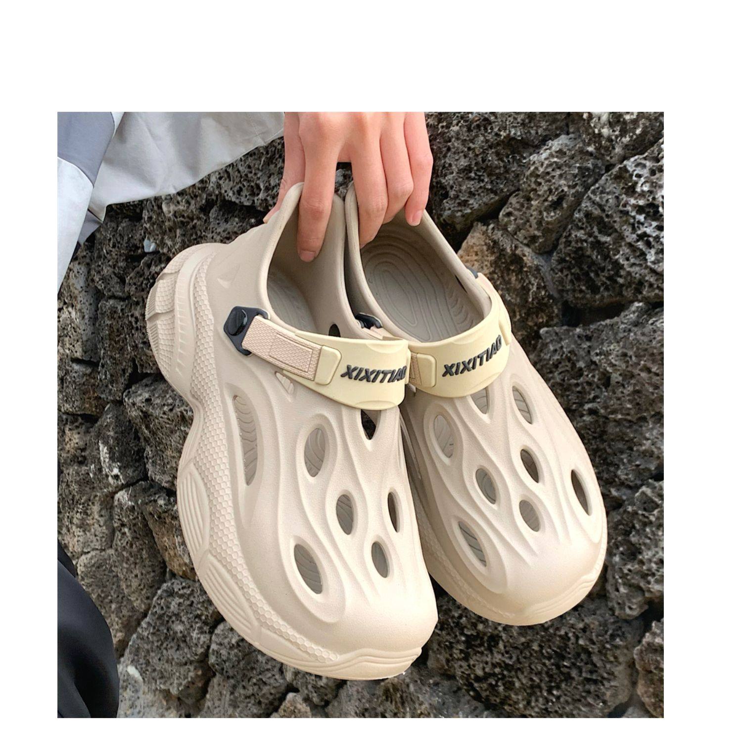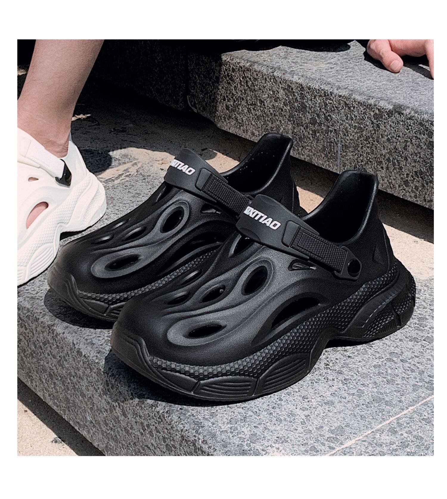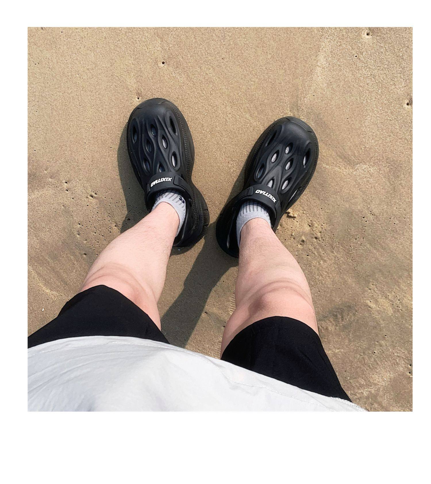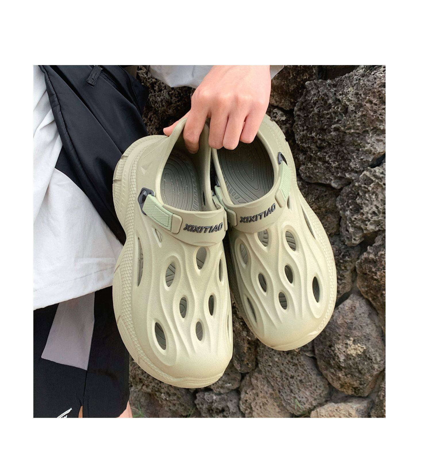 Thin Strap Men's Perforated Shoes Outdoor Non-Slip Wear-Resistant Slip-On Beach Shoes Driving Fishing Closed-Toe Sandals Summer