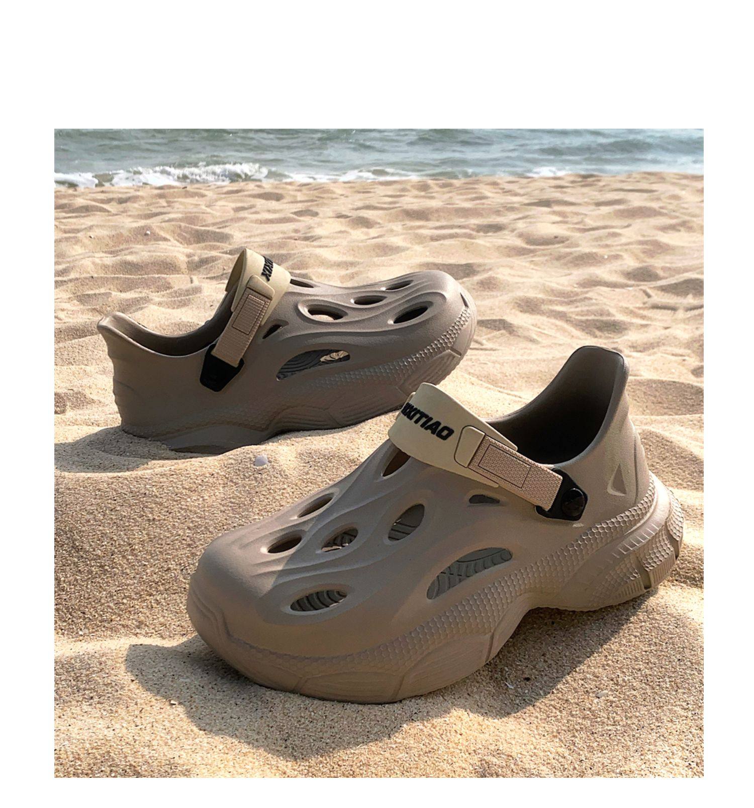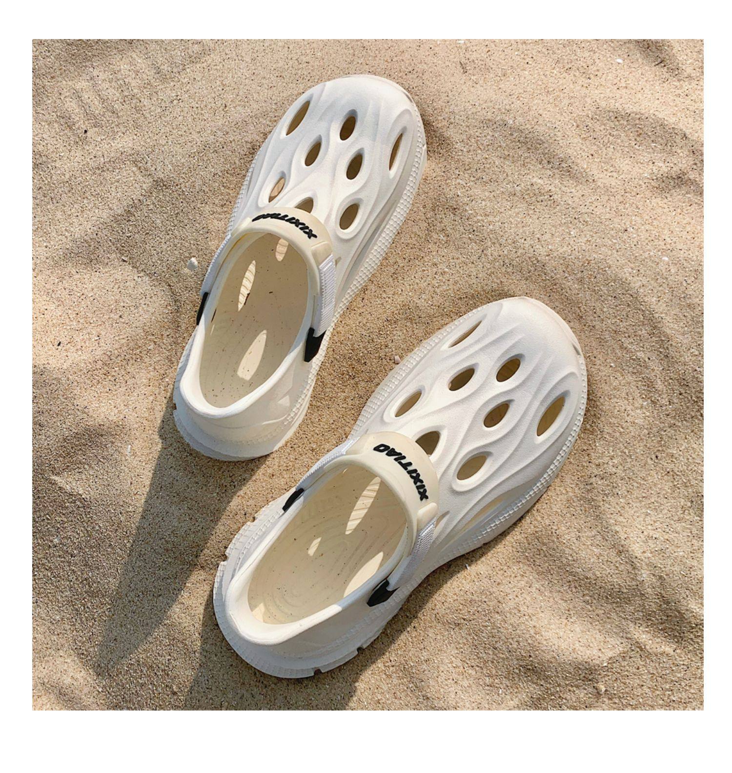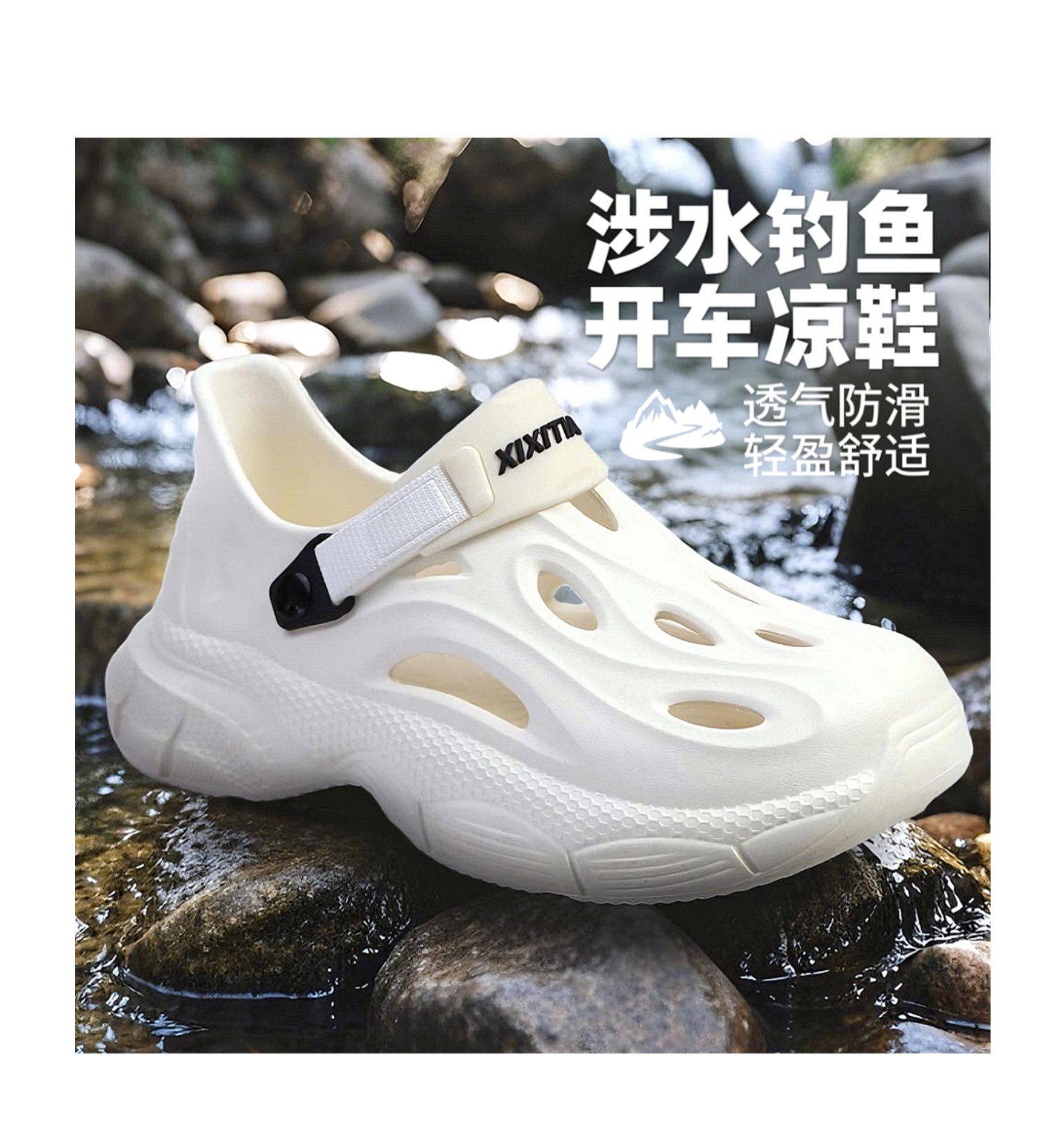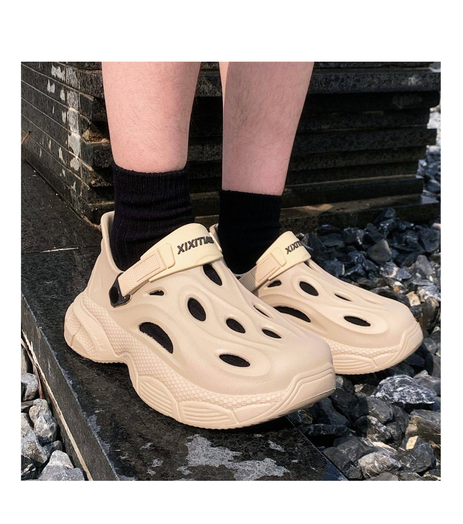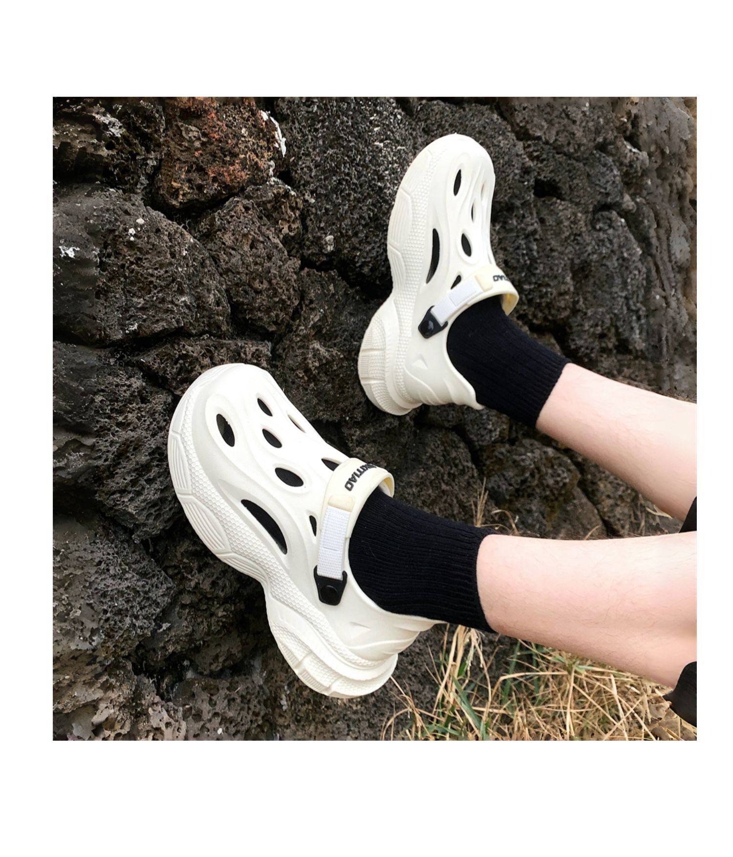 Thin Strap Men's Perforated Shoes Outdoor Non-Slip Wear-Resistant Slip-On Beach Shoes Driving Fishing Closed-Toe Sandals Summer