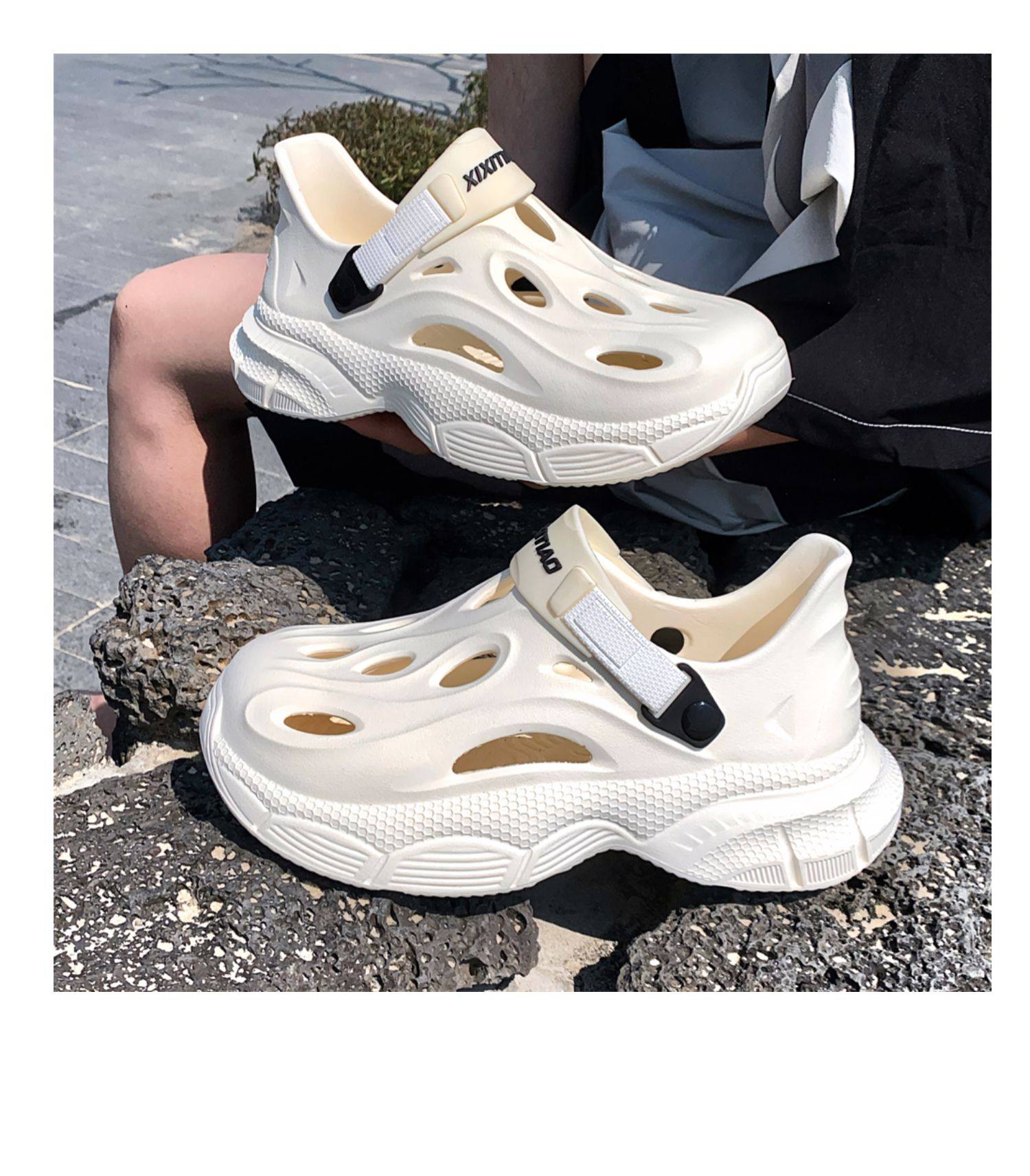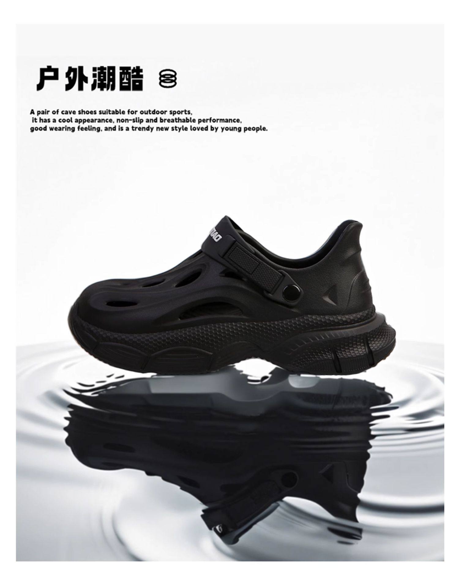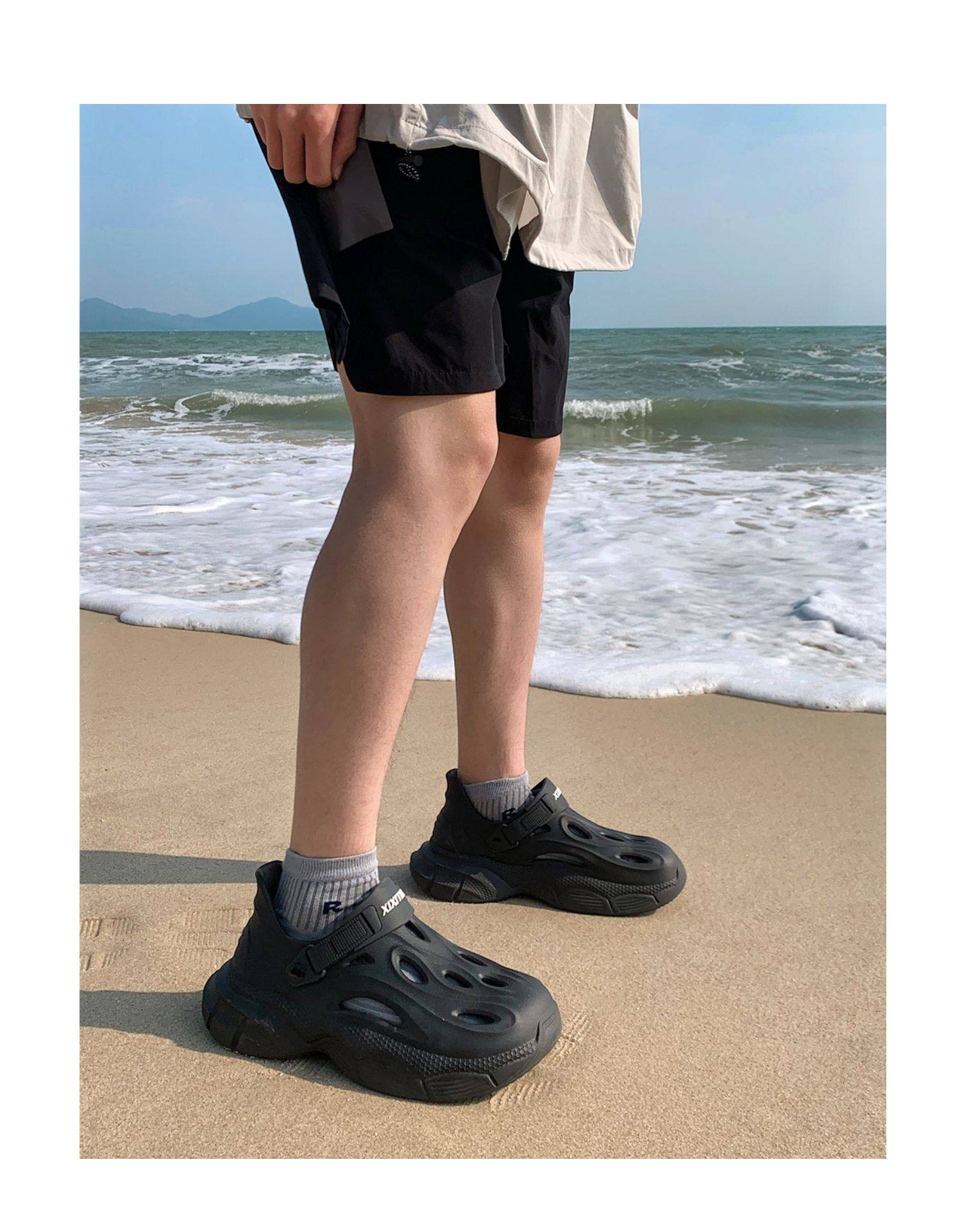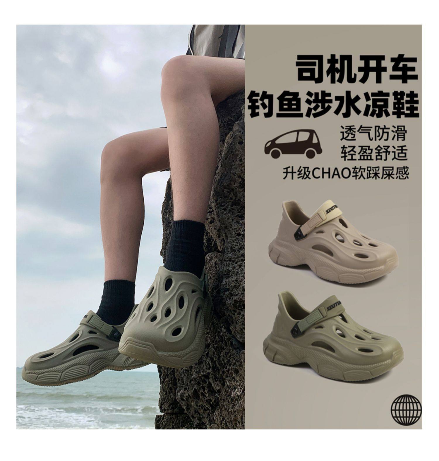Thin Strap Men's Perforated Shoes Outdoor Non-Slip Wear-Resistant Slip-On Beach Shoes Driving Fishing Closed-Toe Sandals Summer