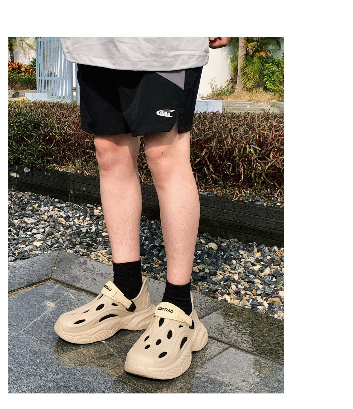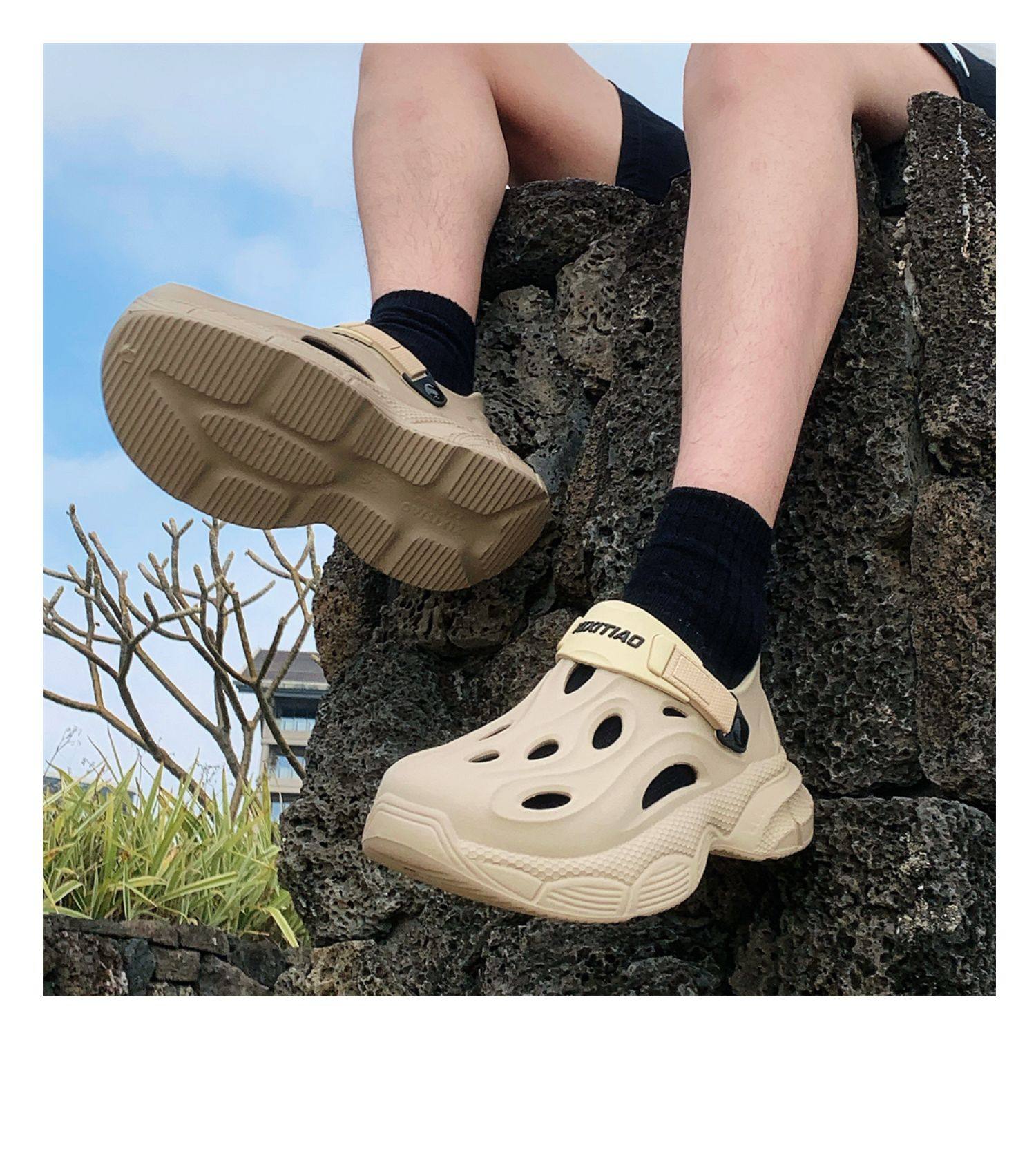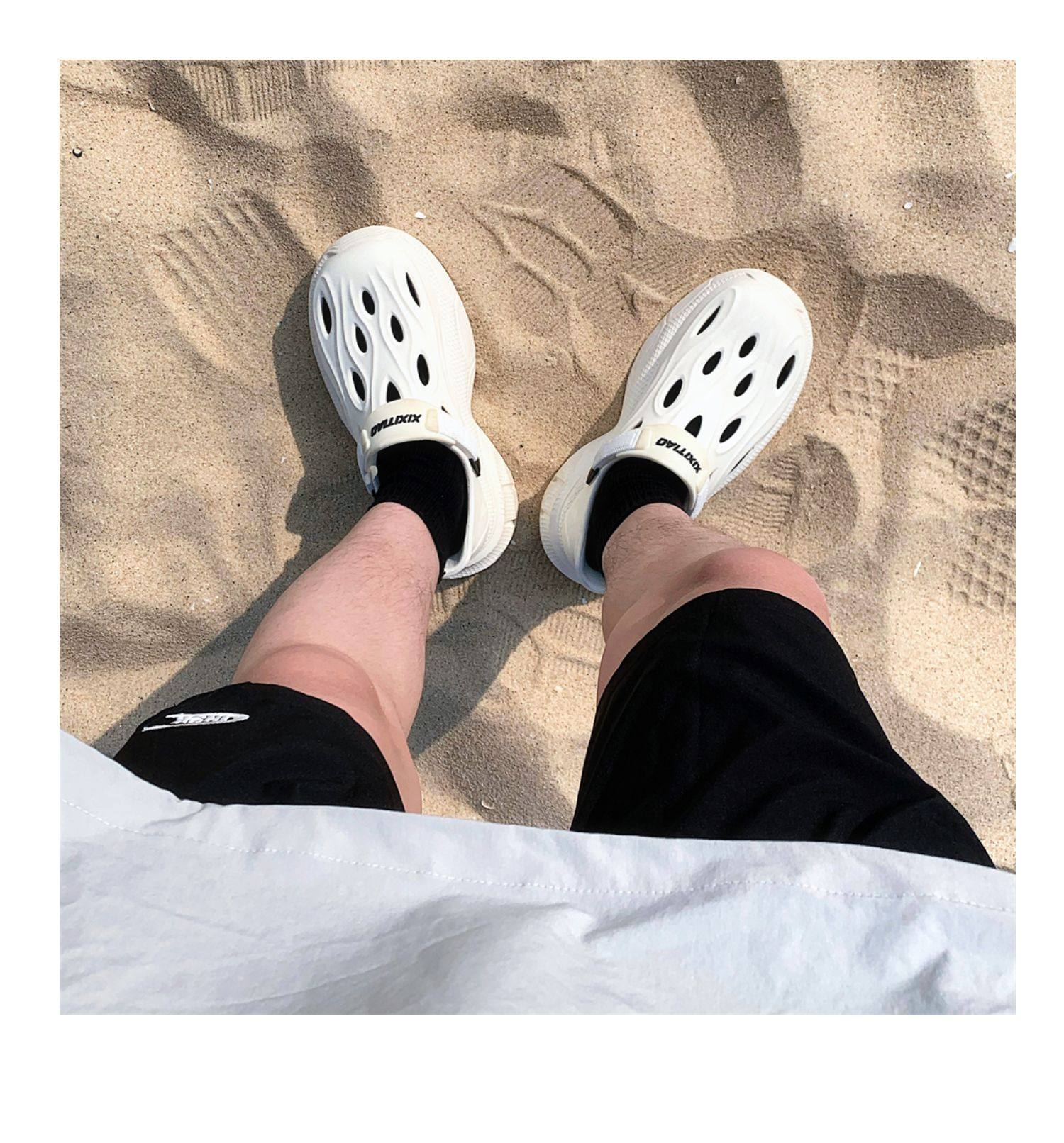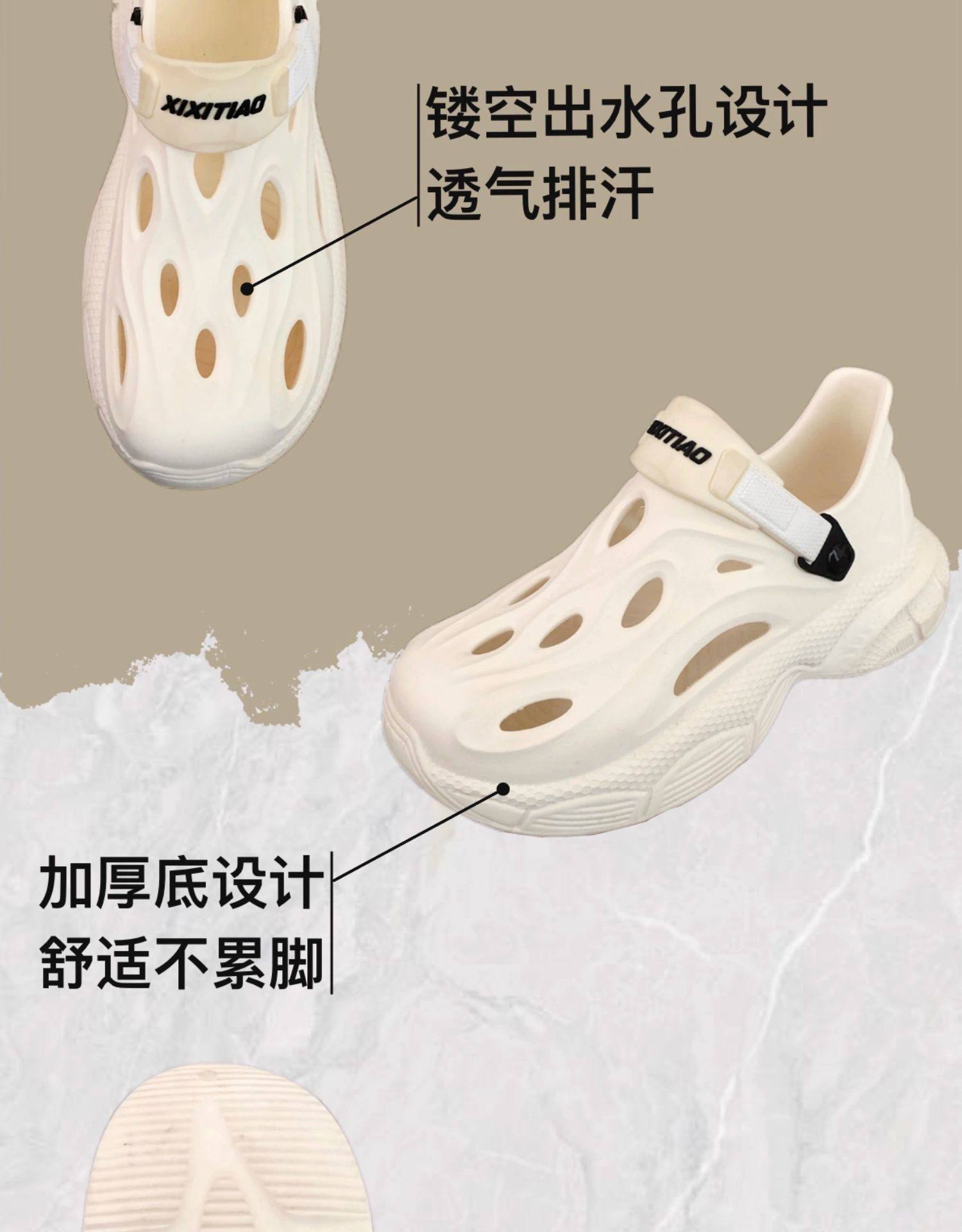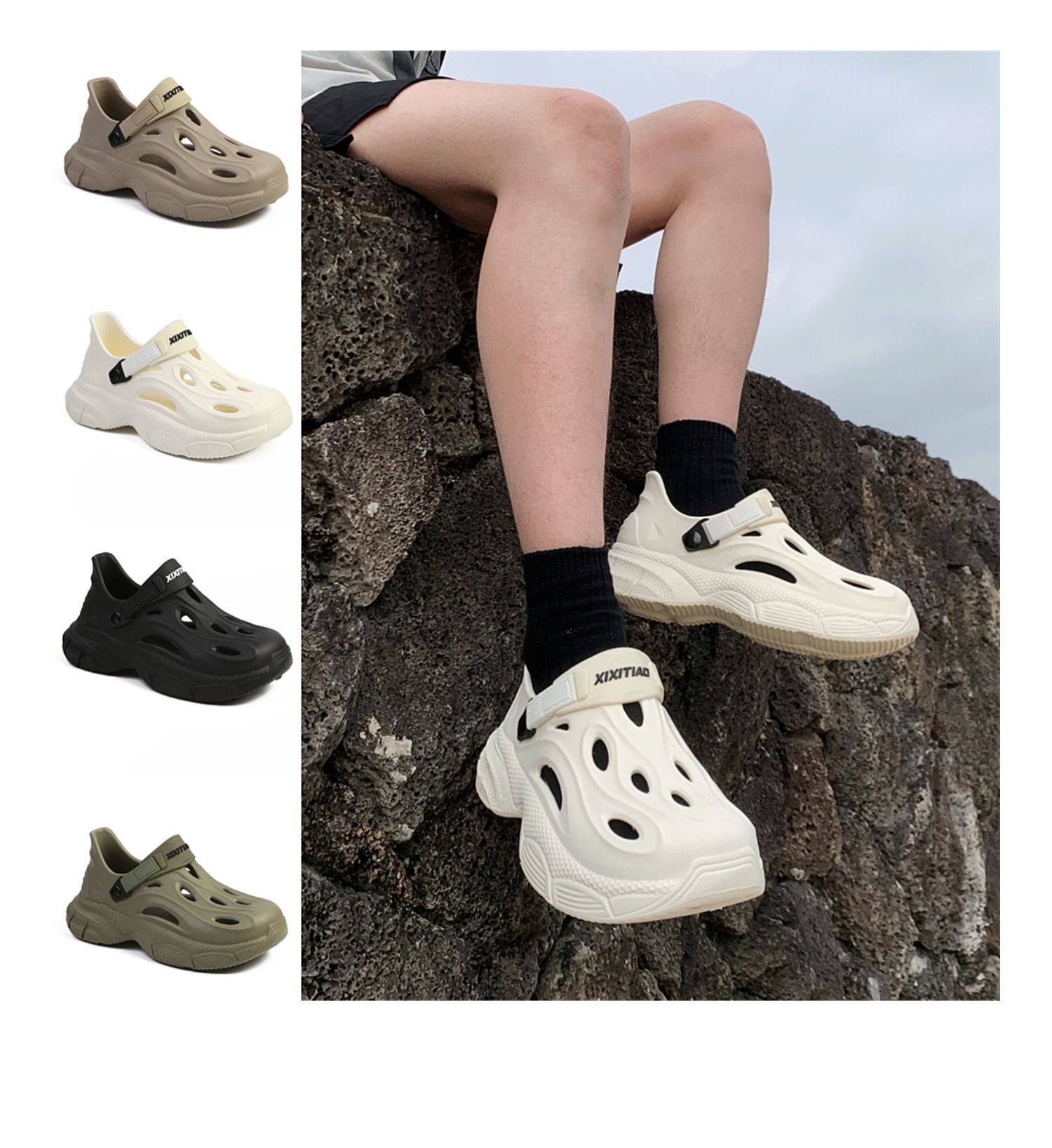Thin Strap Men's Perforated Shoes Outdoor Non-Slip Wear-Resistant Slip-On Beach Shoes Driving Fishing Closed-Toe Sandals Summer