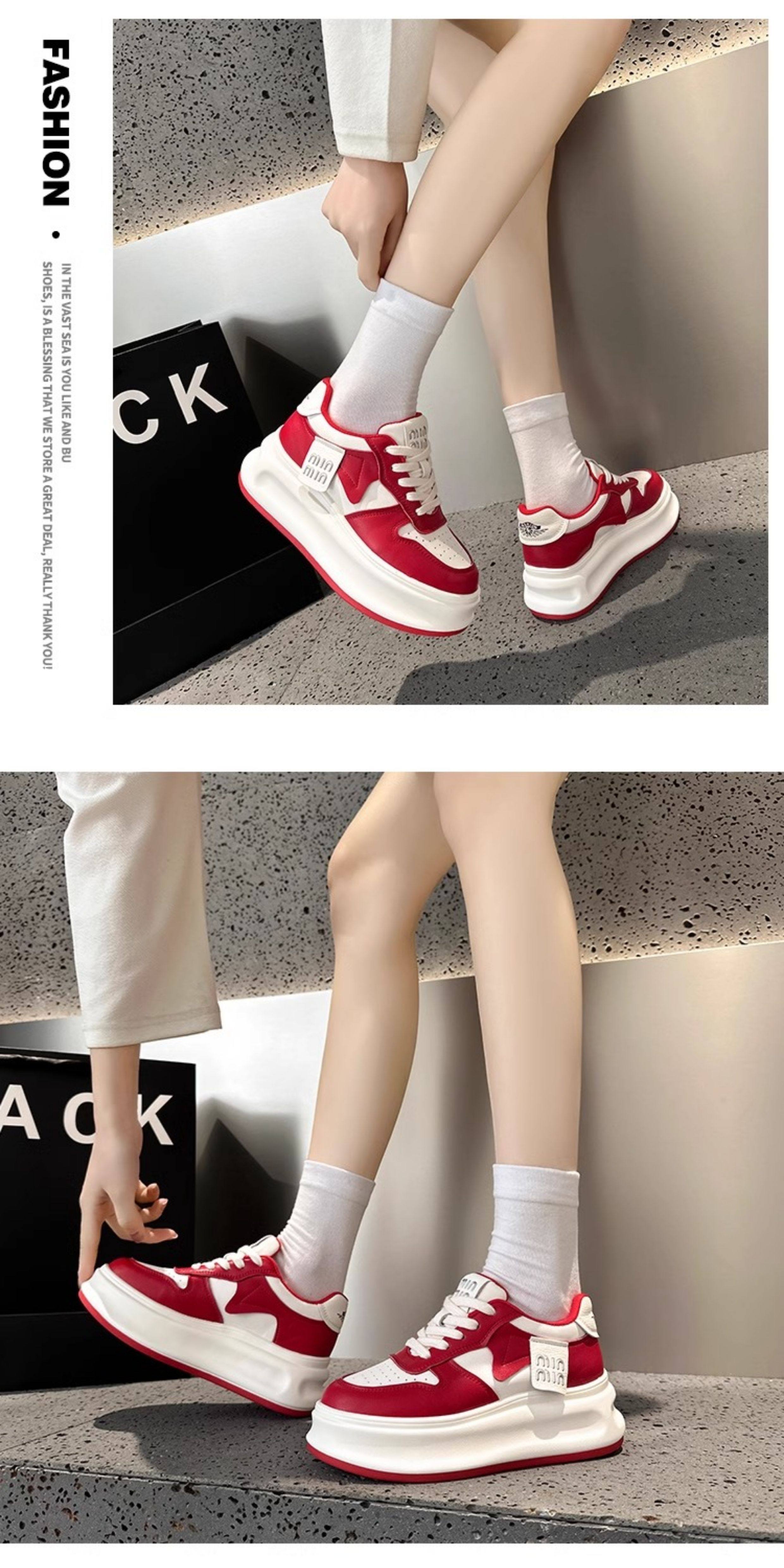 Hong Kong Platform Thick-Soled Genuine Leather White Sneakers for Women 2025 Spring and Autumn Versatile Lightweight Height-Increasing Panda Shoes Sports Casual Shoes