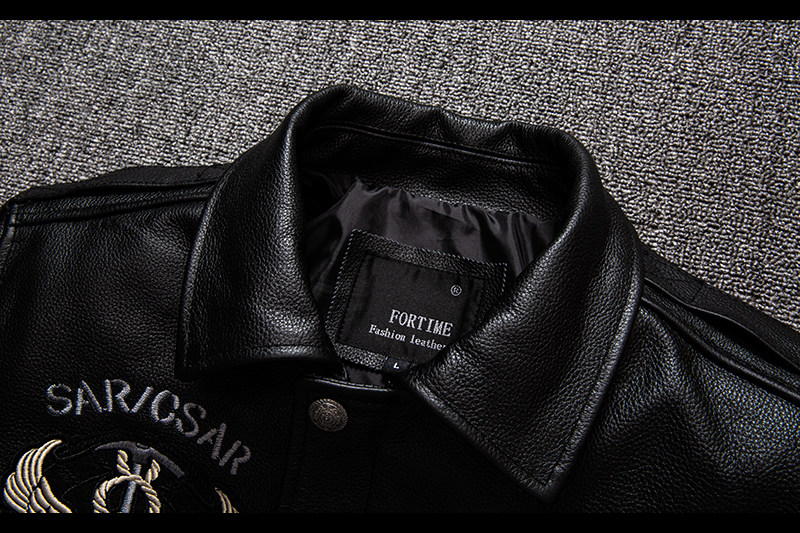 New Flight Suit First-Layer Cowhide Genuine Leather Jacket Trendy Biker Jacket Large Size Men's Leather Jacket Short Spring and Autumn Coat