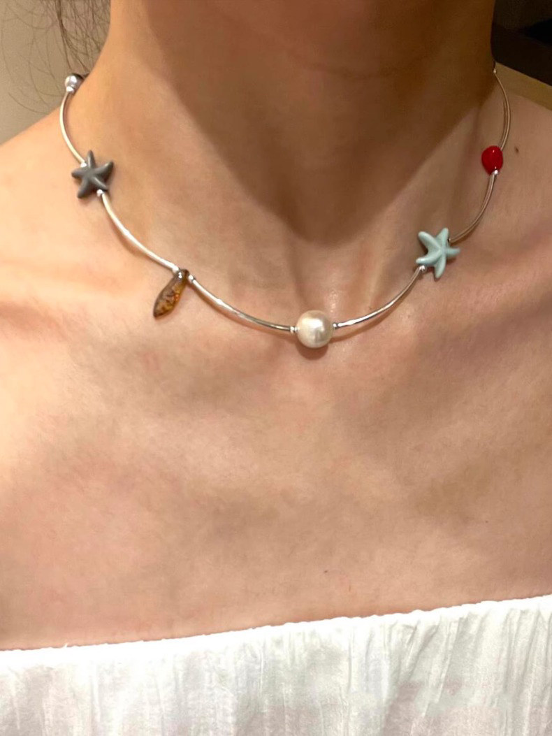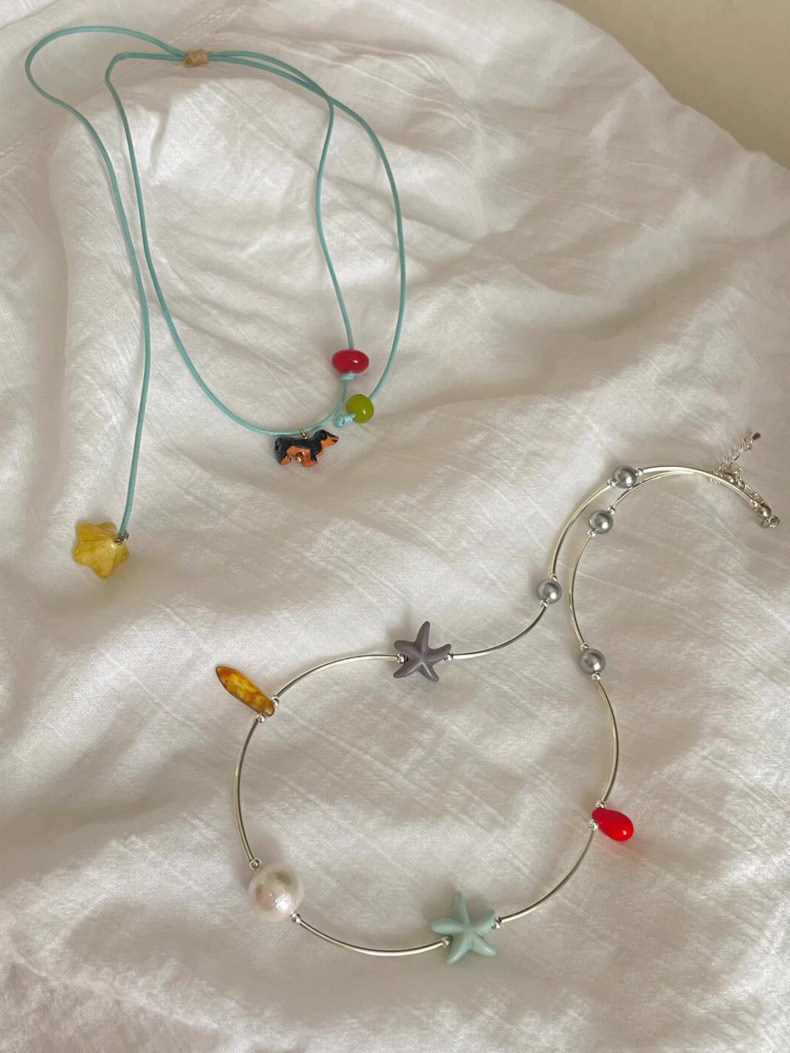 Seaside Dopamine Colorful Starfish Necklace for Women 2025 New Accessories High-End Light Luxury Niche Clavicle Chain Neck Chain