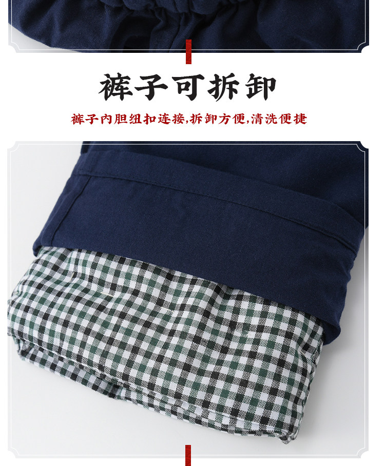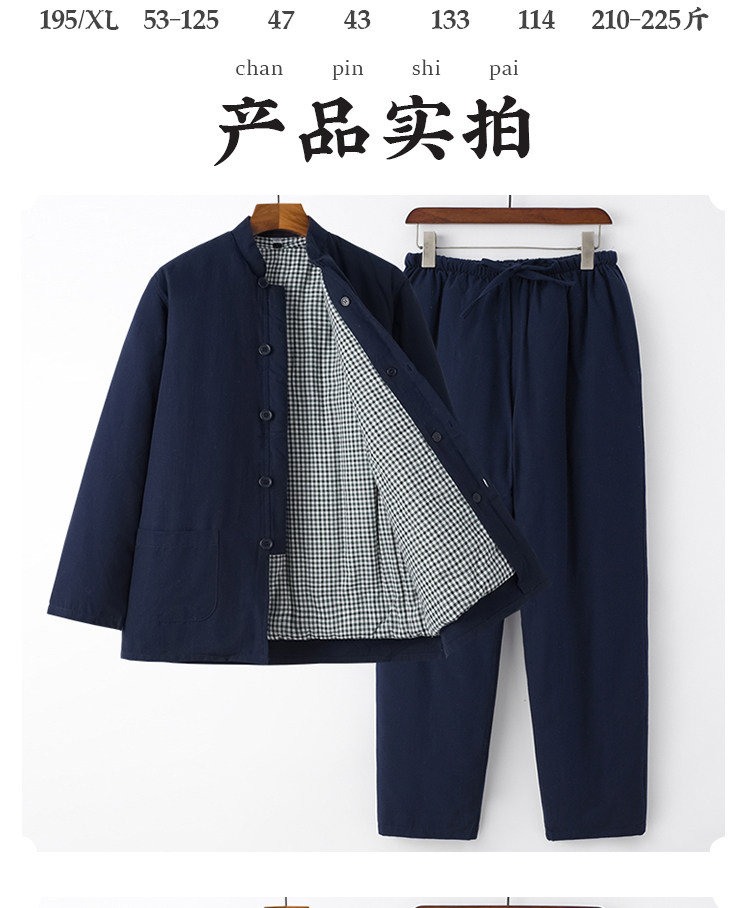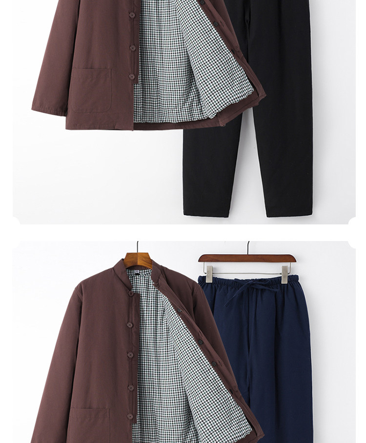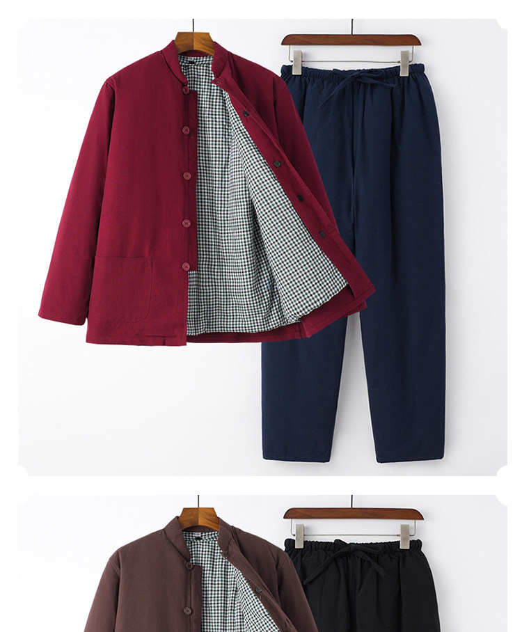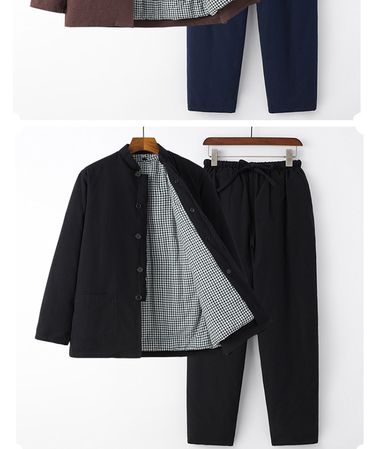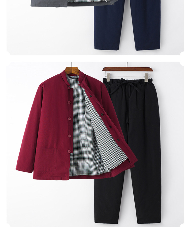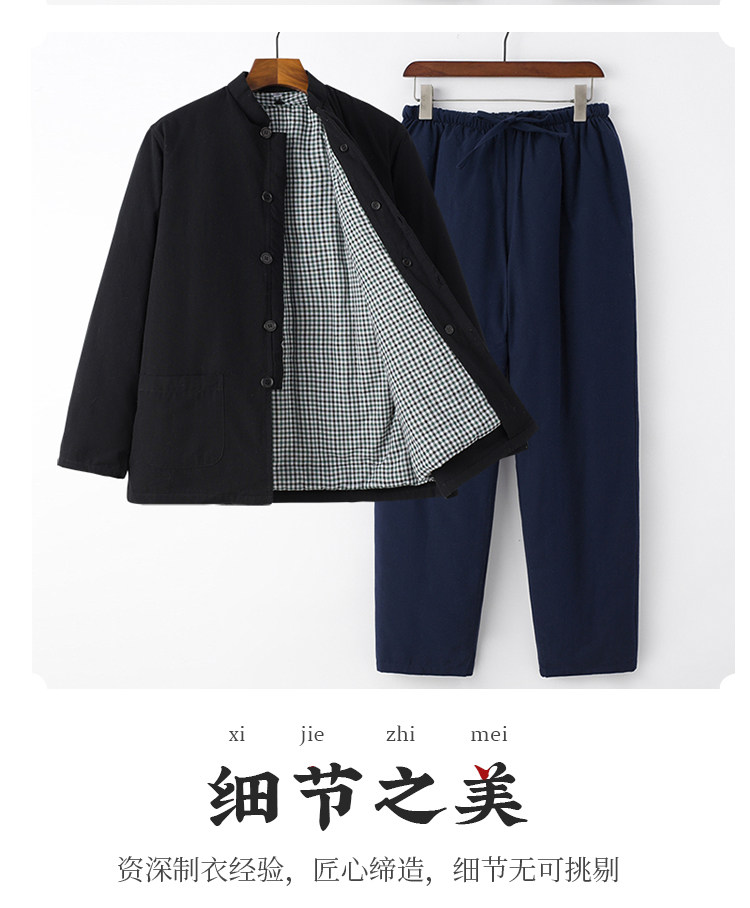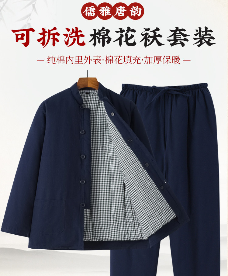 Middle-Aged and Elderly People's 100% Pure Cotton Thickened Warm Removable Cotton-Padded Jacket Set, Winter Casual Grandpa Outfit, Cotton Coat and Cotton Clothing