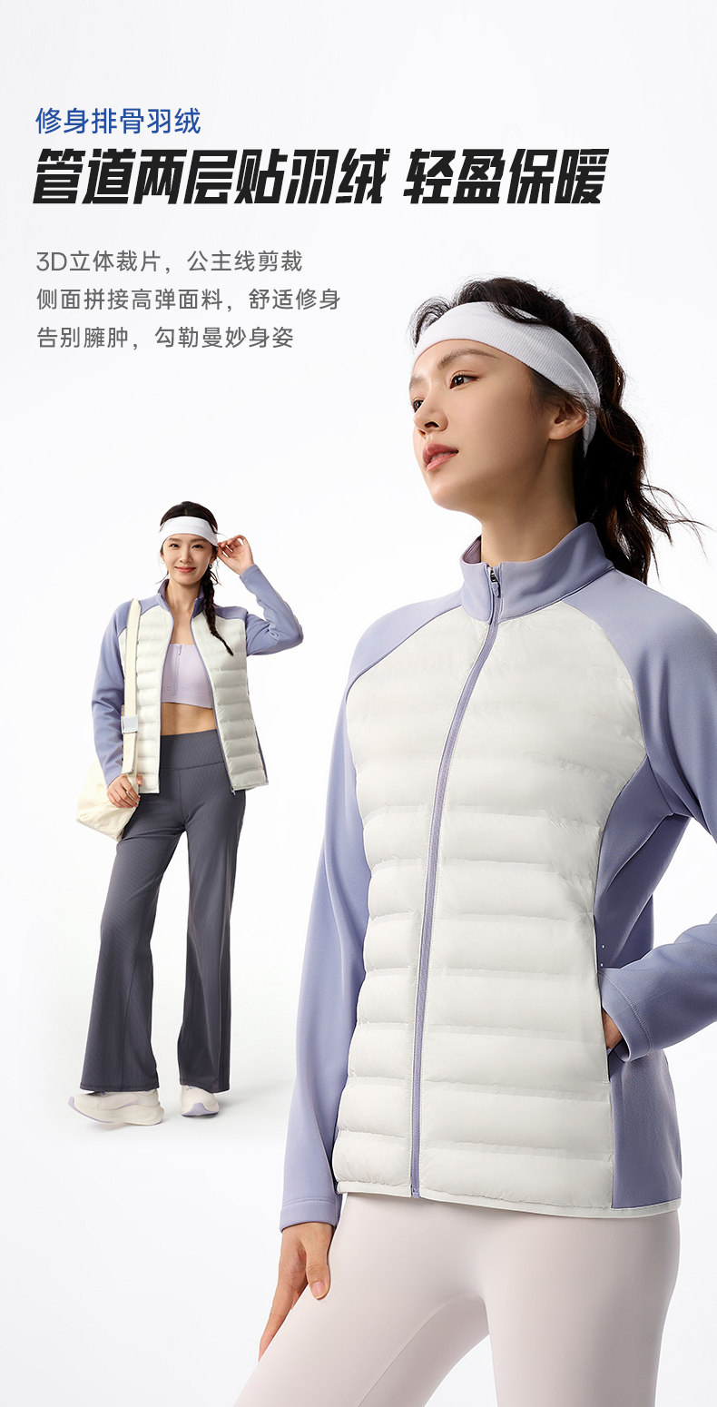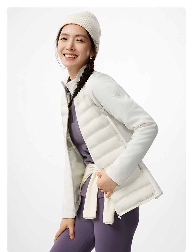 Anta Hydrogen down | Slim Fit Ribbed down Jacket for Women 2025 Winter New Style Patchwork Short down Coat