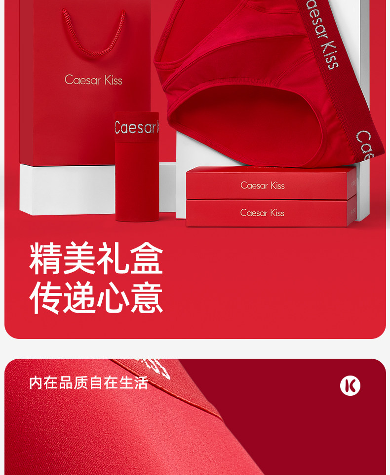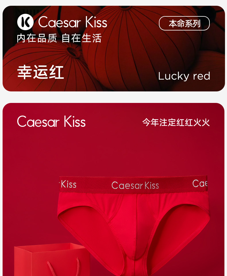 Caesarkiss Zodiac Year Red Underwear Men's Briefs 2026 New Model for the Year of the Horse 100% Pure Cotton Crotch