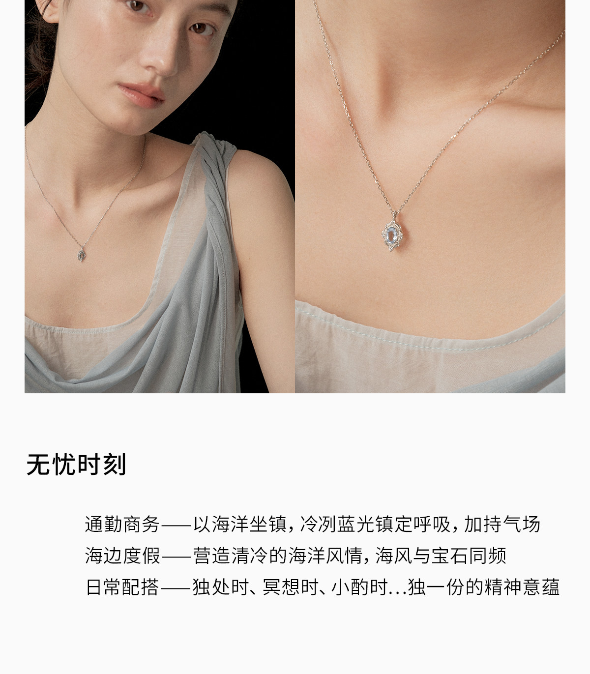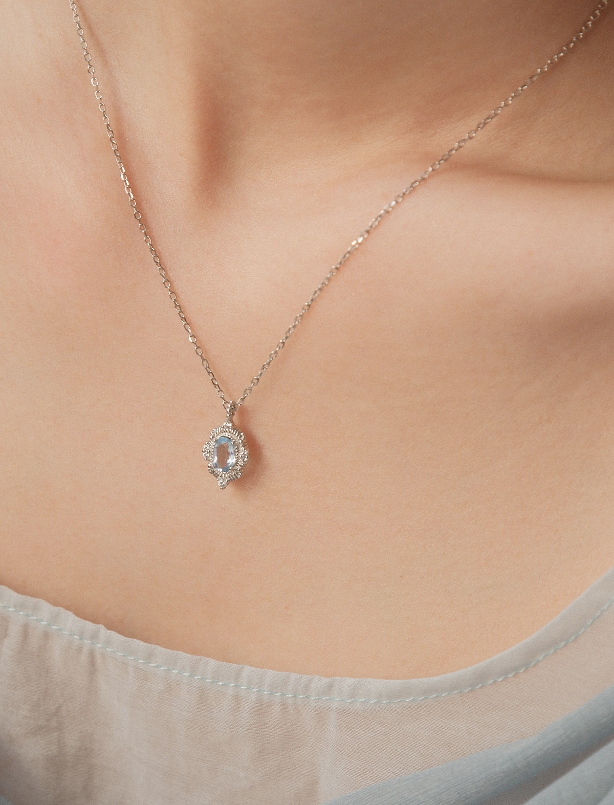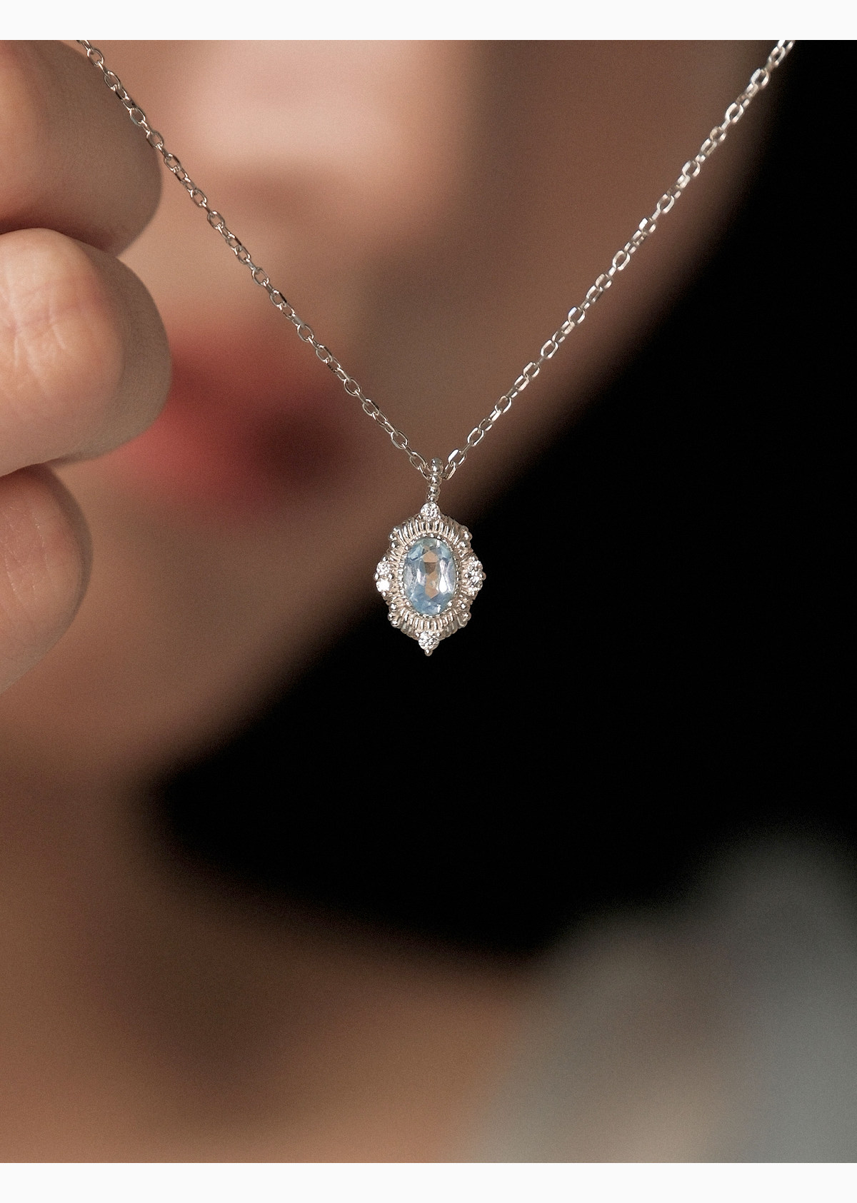 Sanswood's "Haixian" Dreamy Aquamarine Necklace for Women, with a Cool and Sophisticated Aura, Clavicle Chain