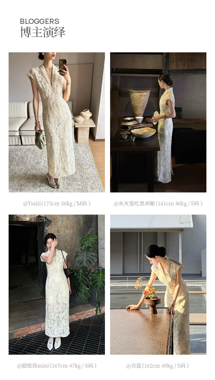 Nian Shier [Lan Xiu] Lace Sequin Embroidery V-Neck Sleeveless Dress New Chinese Style White Agate Button Long Dress