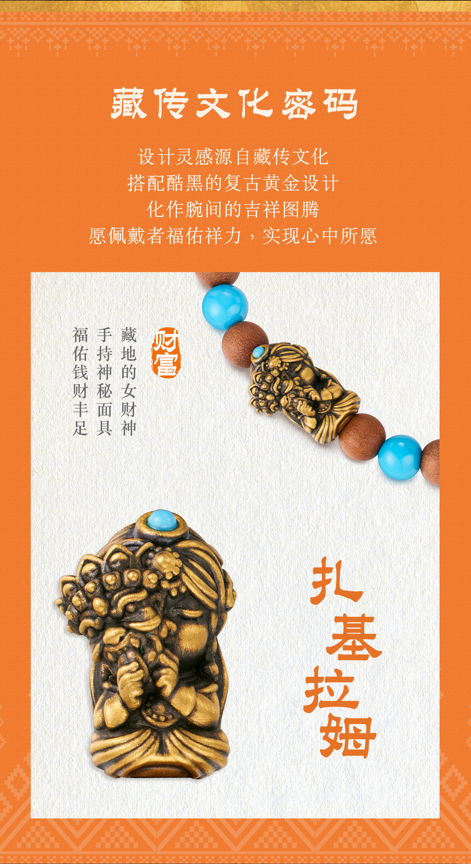 Lukfook Jewelry Tibetan Cultural Code Zaki Lamu Gold Bracelet Pure Gold Laoshan Sandalwood Bracelet Gja0079Ds