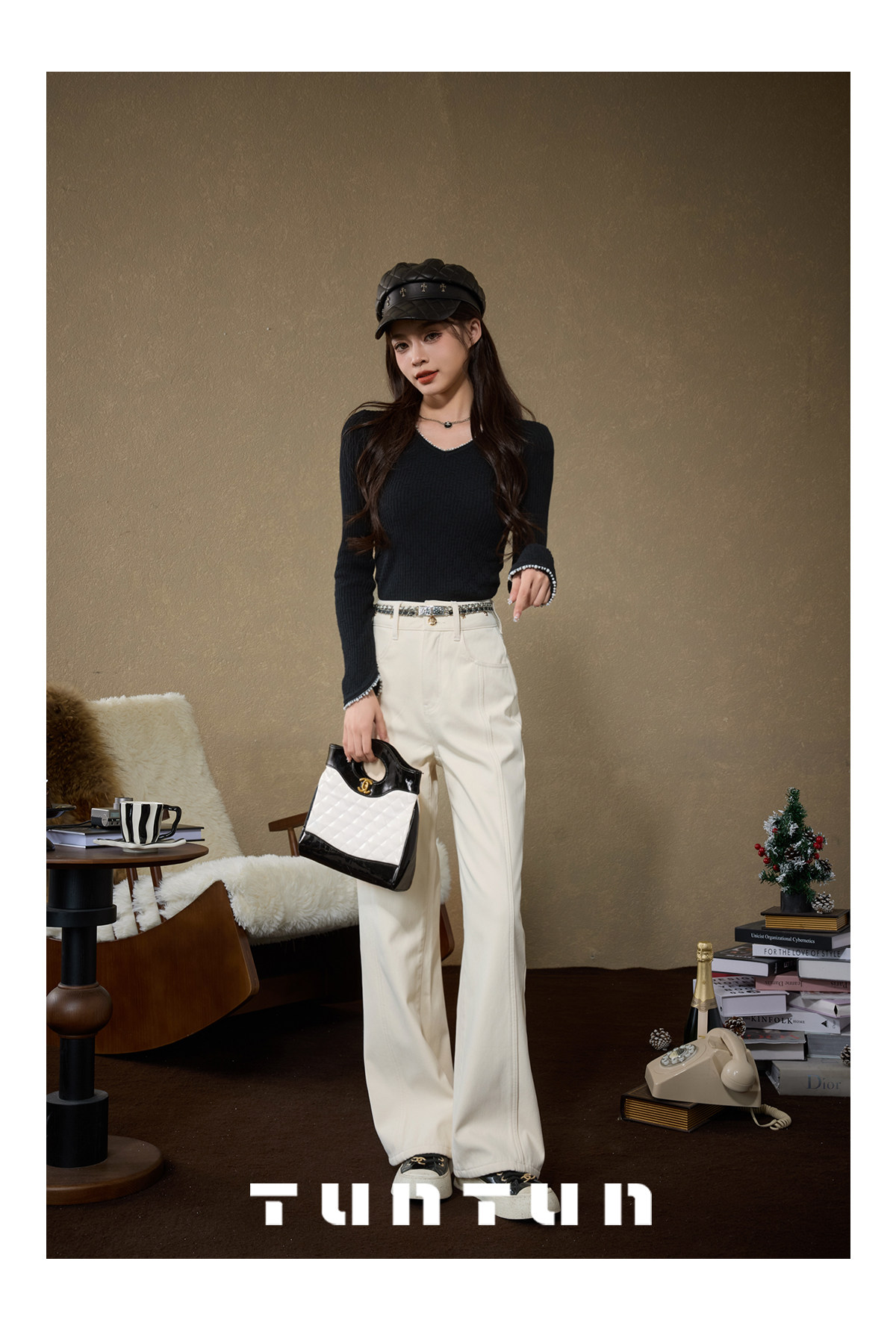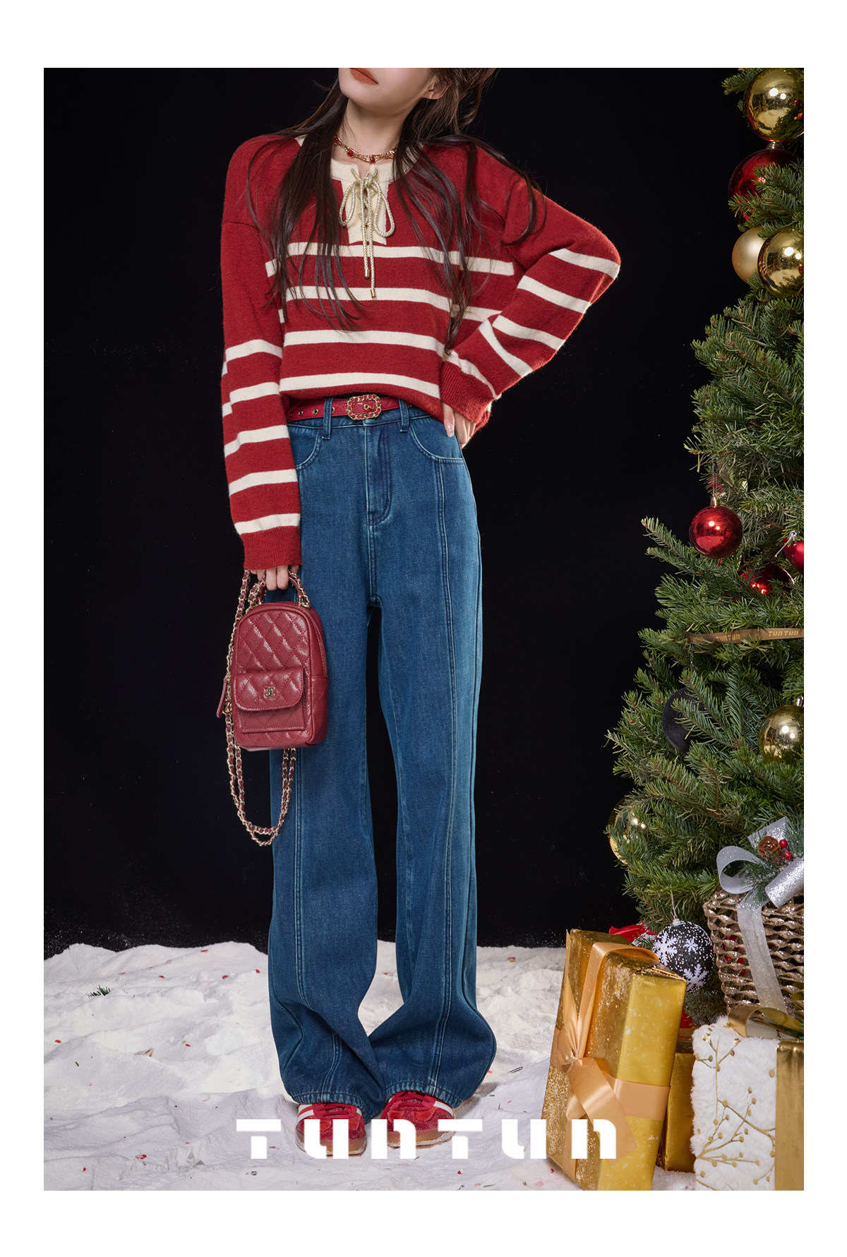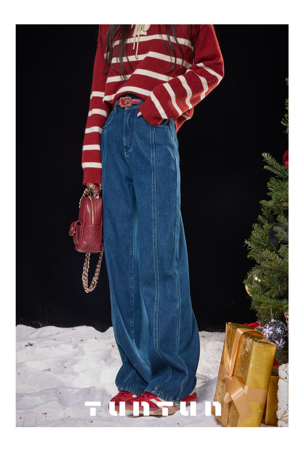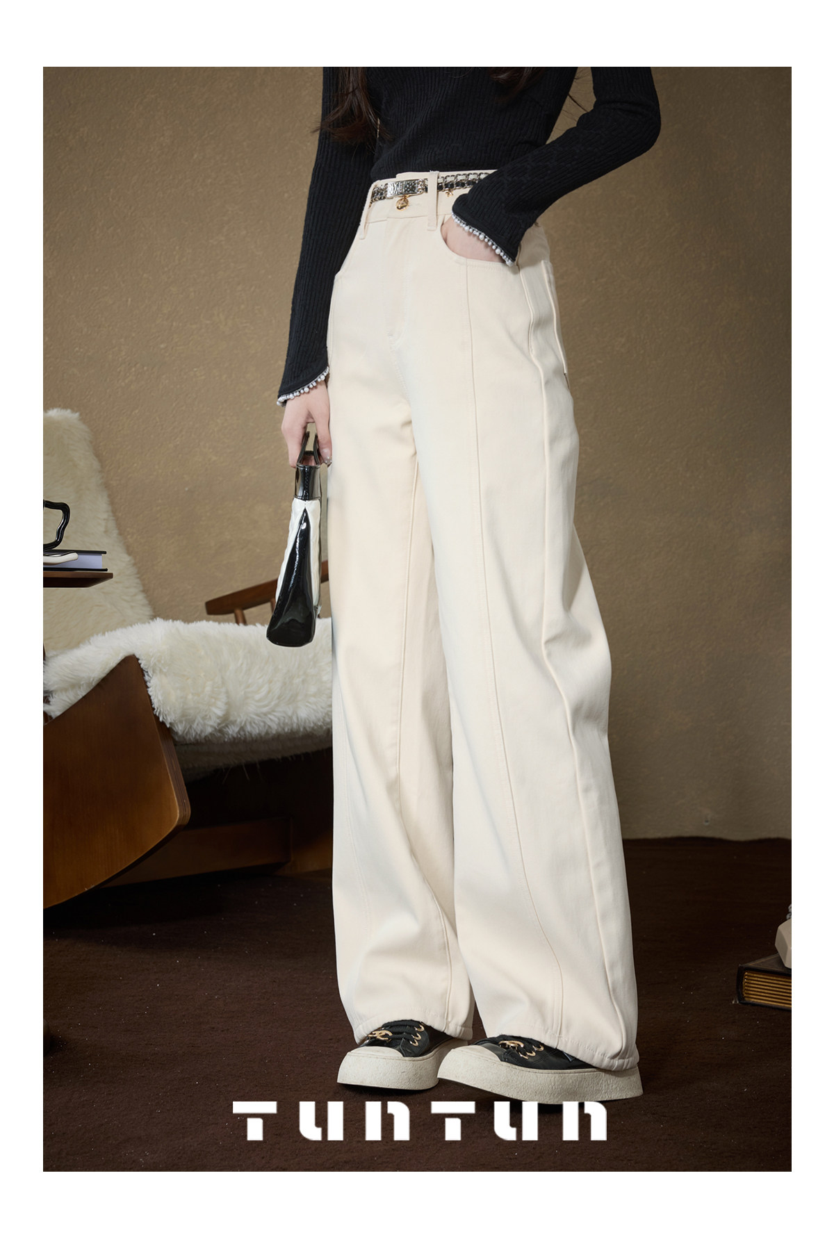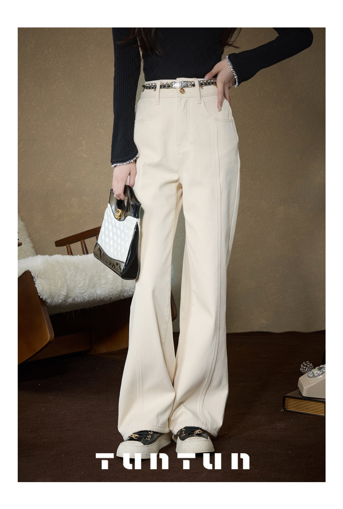 Gold-Swallowing Beast In-App Purchase [Thread Carving Denim] Super-Modifying, Slimming, High-Waisted Straight-Leg Jeans with Fleece Lining