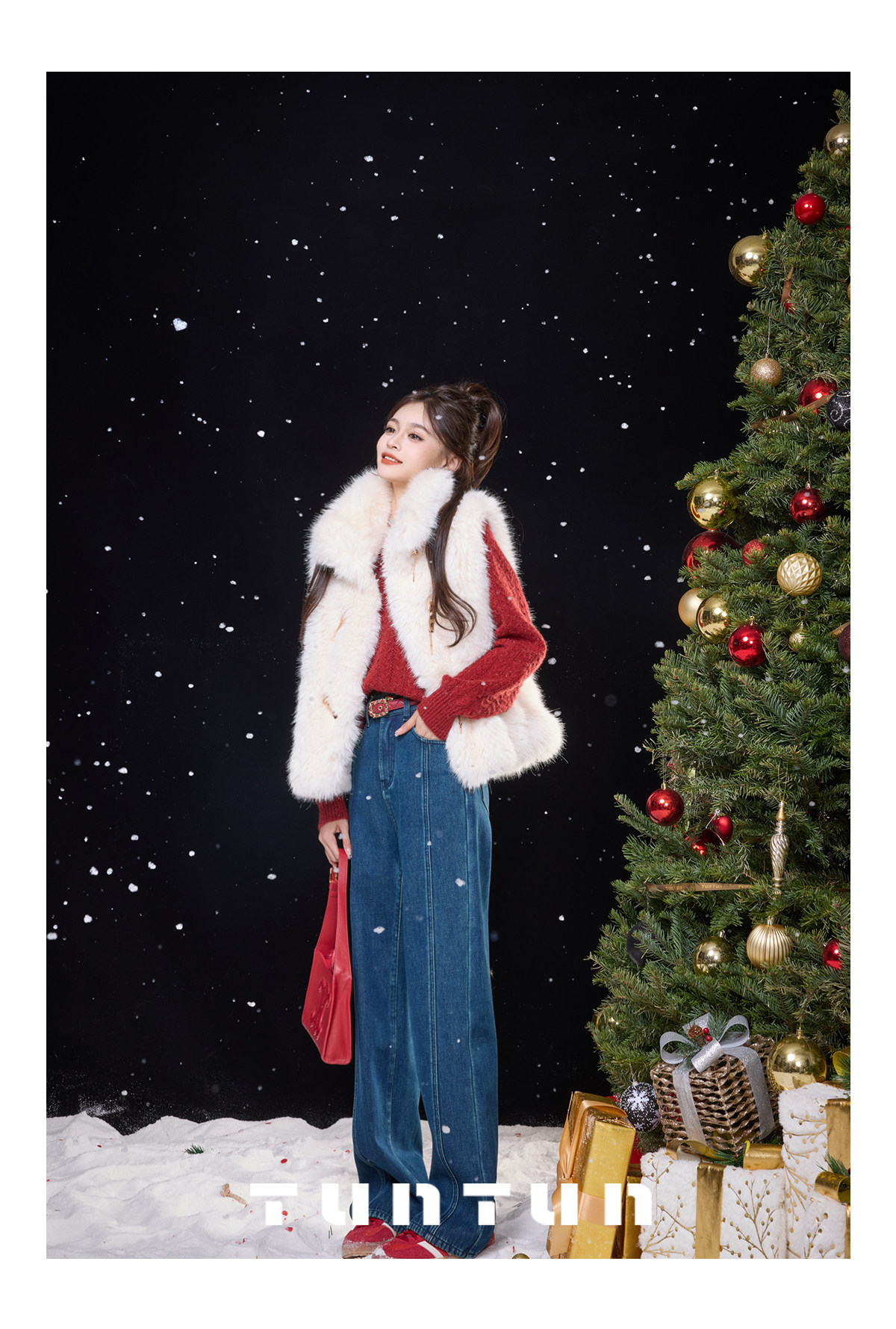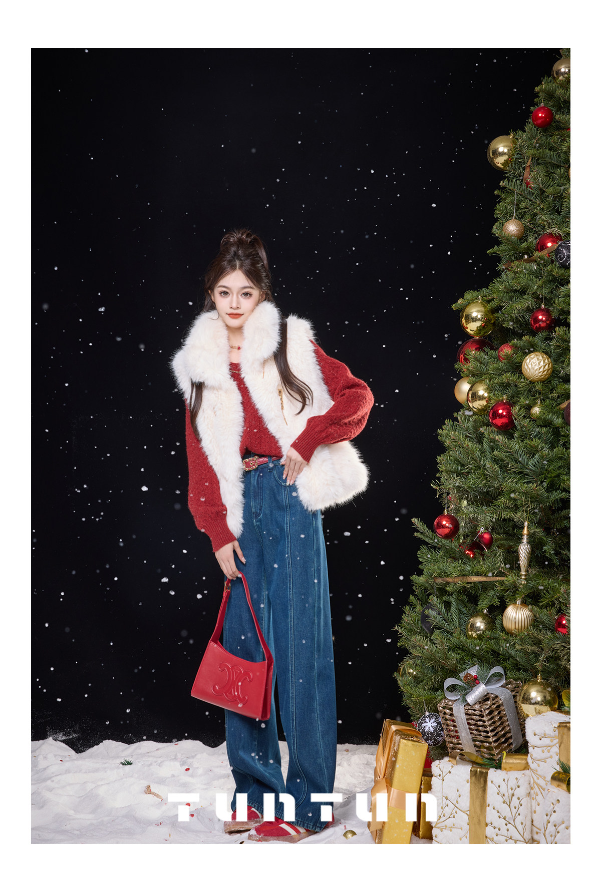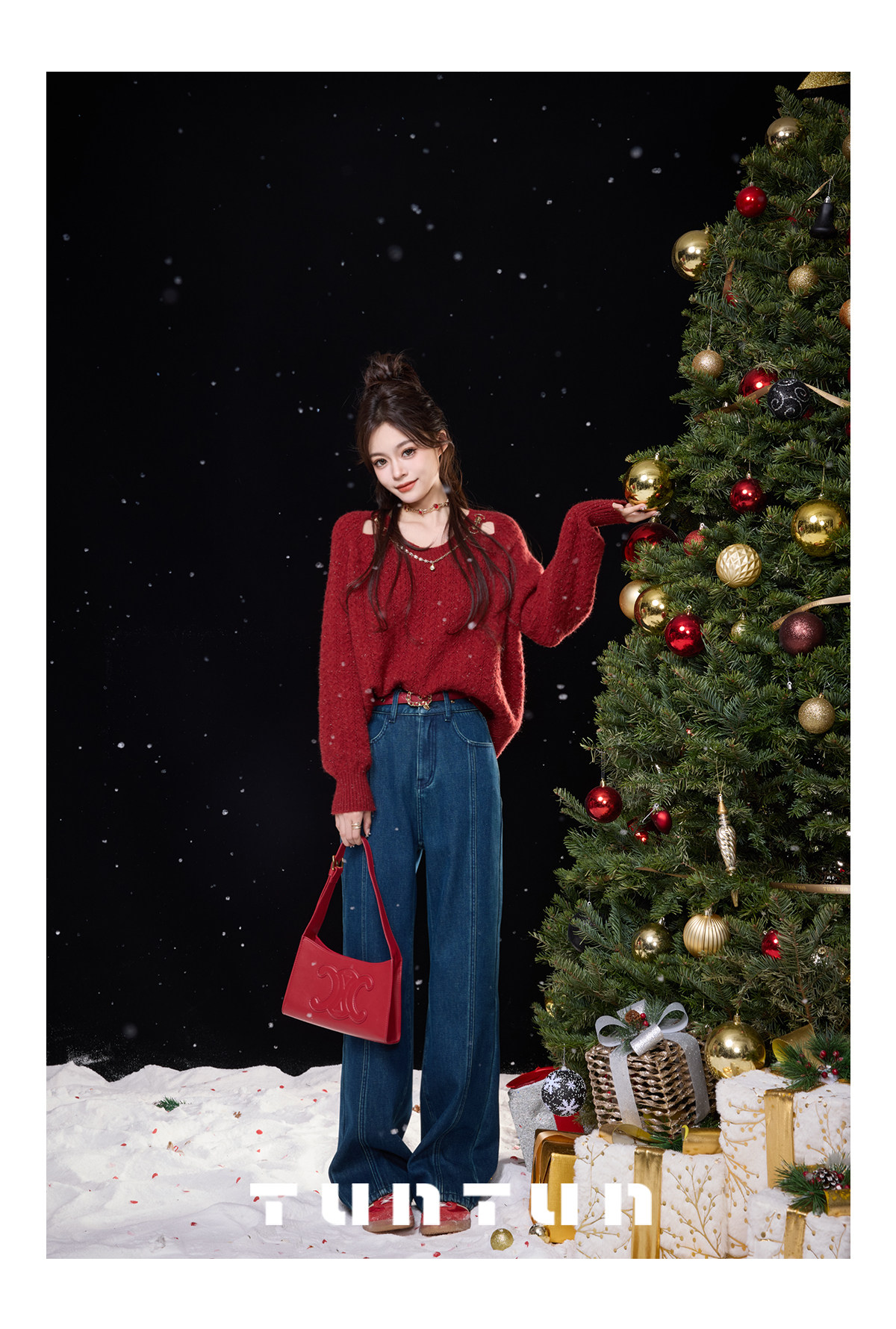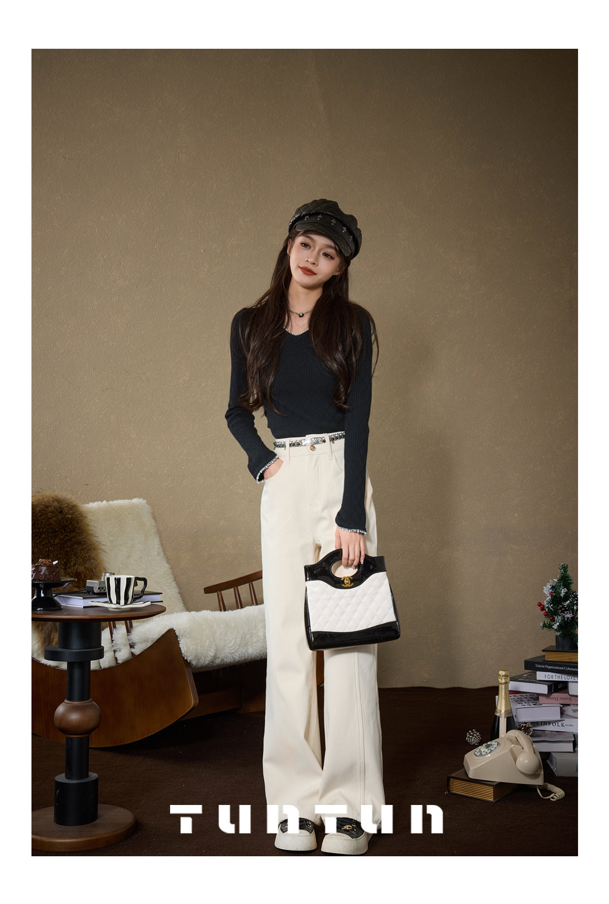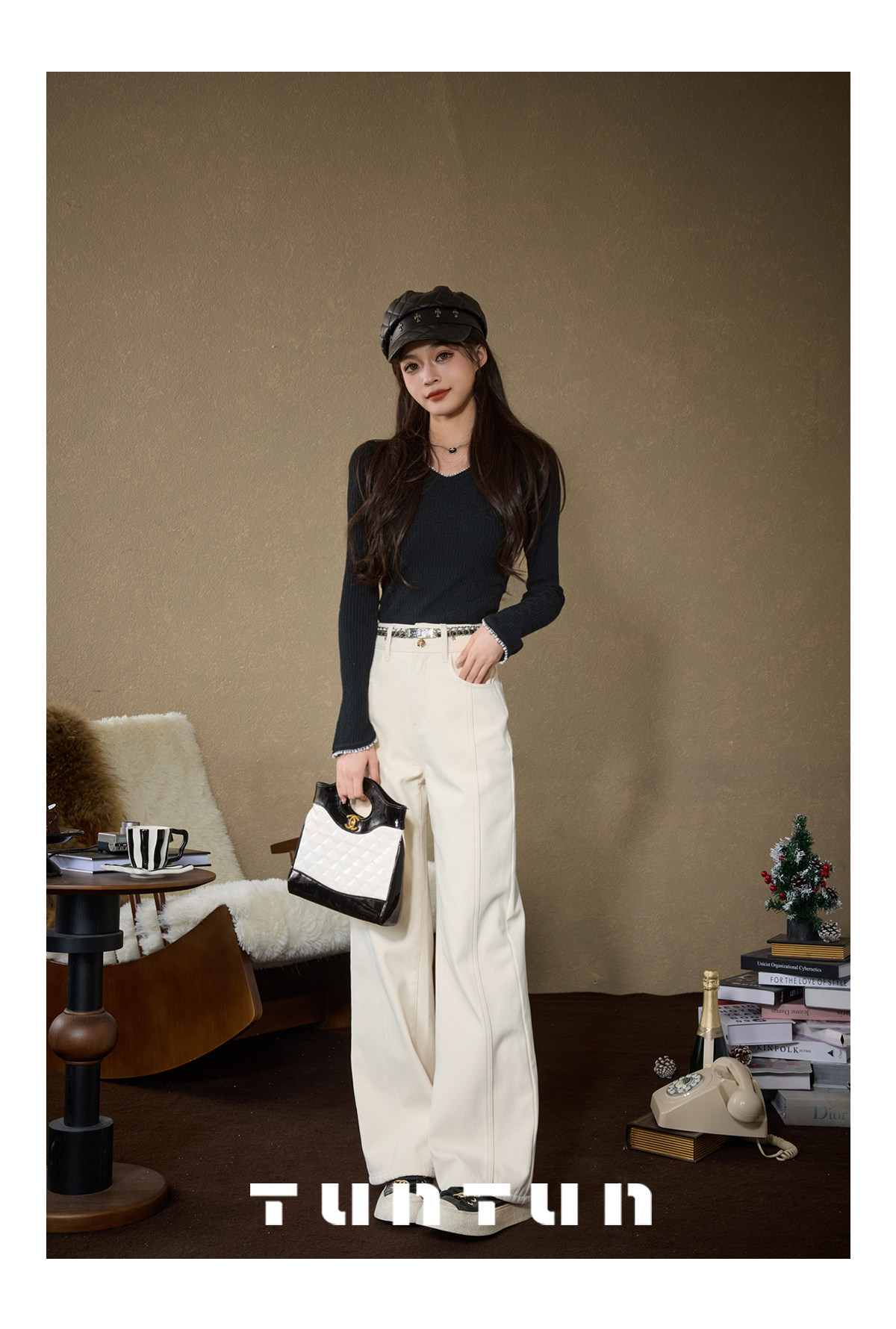 Gold-Swallowing Beast In-App Purchase [Thread Carving Denim] Super-Modifying, Slimming, High-Waisted Straight-Leg Jeans with Fleece Lining