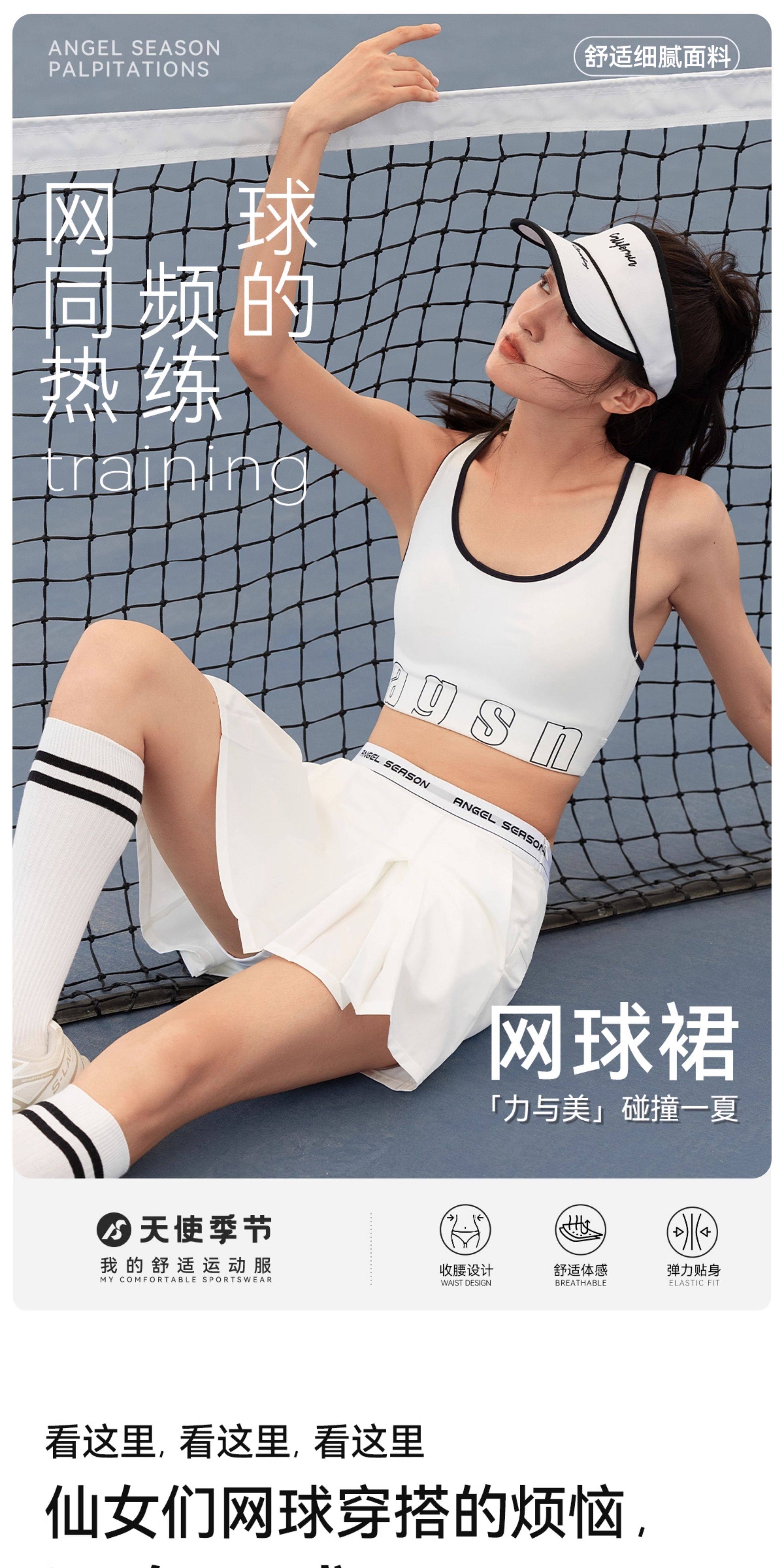 Angel Season Pleated Tennis Skirt Women's Badminton Skirt Sports Yoga Half-Length Baseball Skirt Tennis Wear Anti-Exposure Skirt