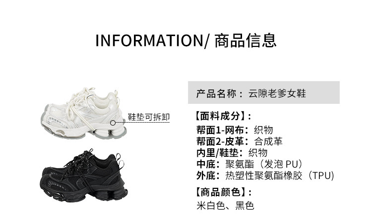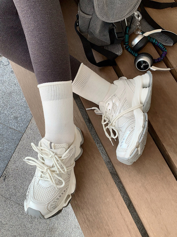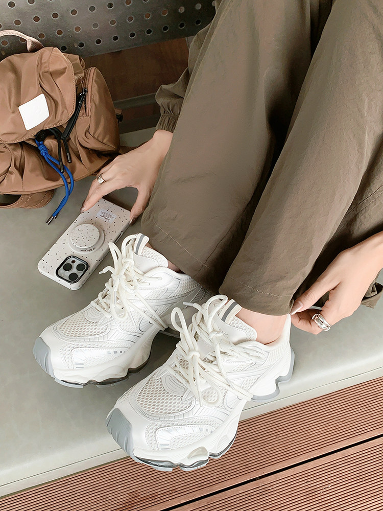 Meiyang【In Stock】Cloud Gap Dad Shoes Antibacterial Deodorizing Hollow Thick Sole Height Increasing Casual Shoes - Wednesday