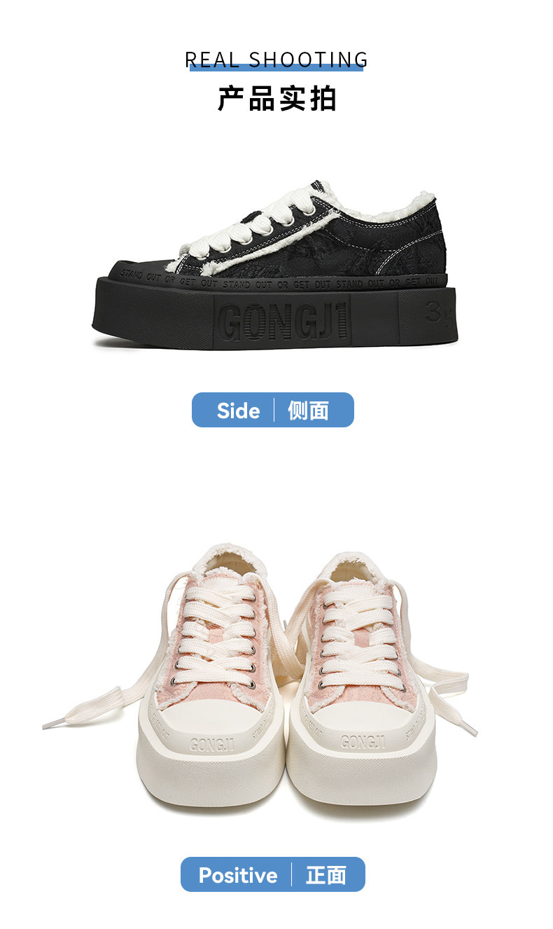 【Wang Yuwen's Style】Gongji Square-Toe Canvas Shoes, Thick-Soled Height-Increasing White Shoes, Niche Design Sneakers for Women