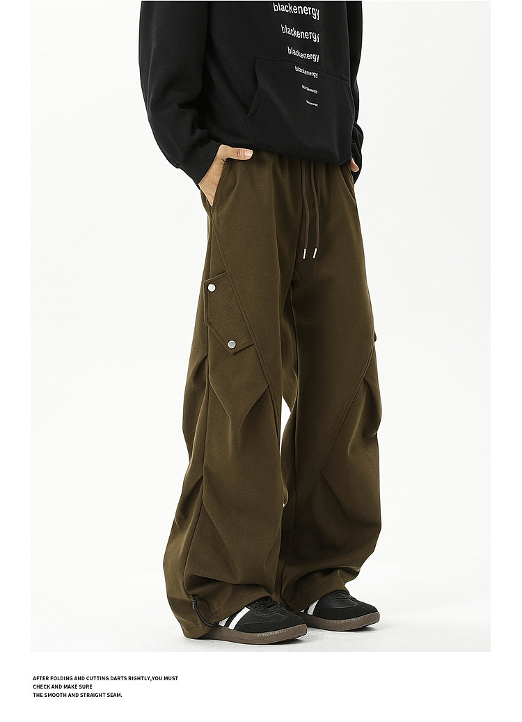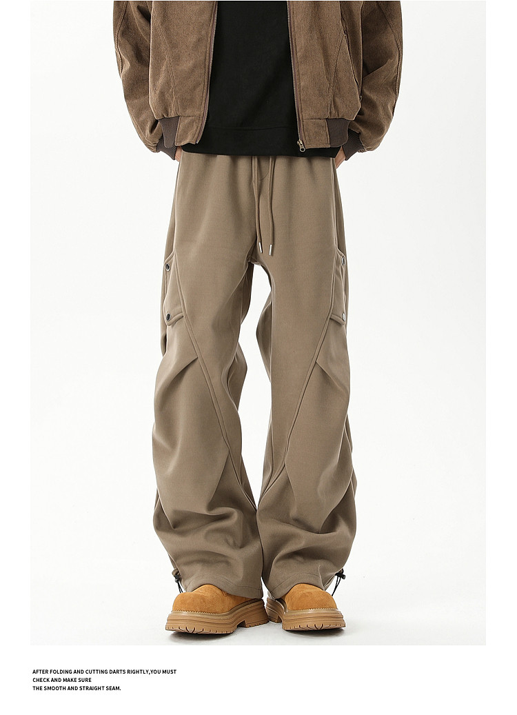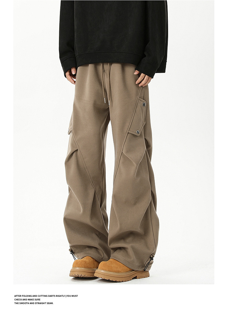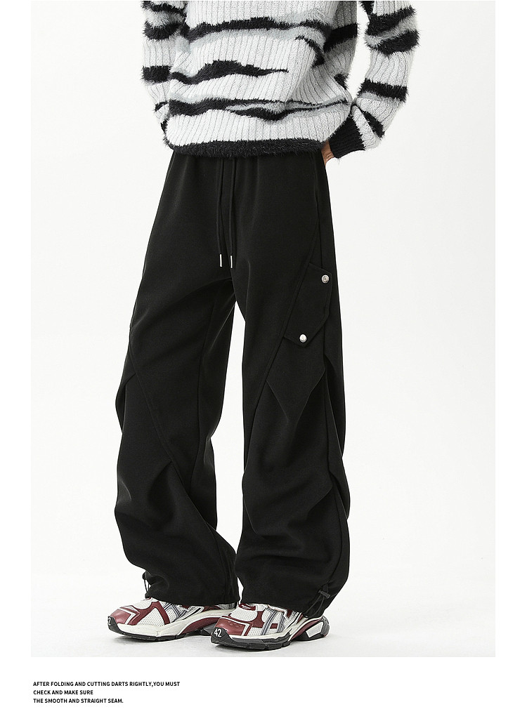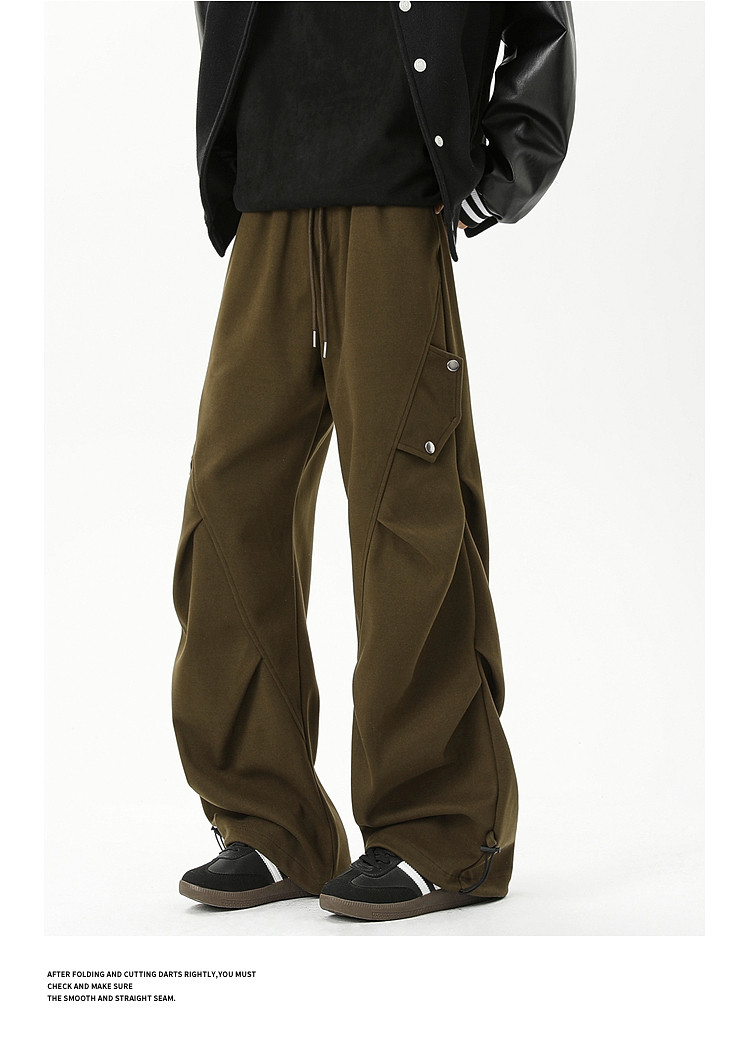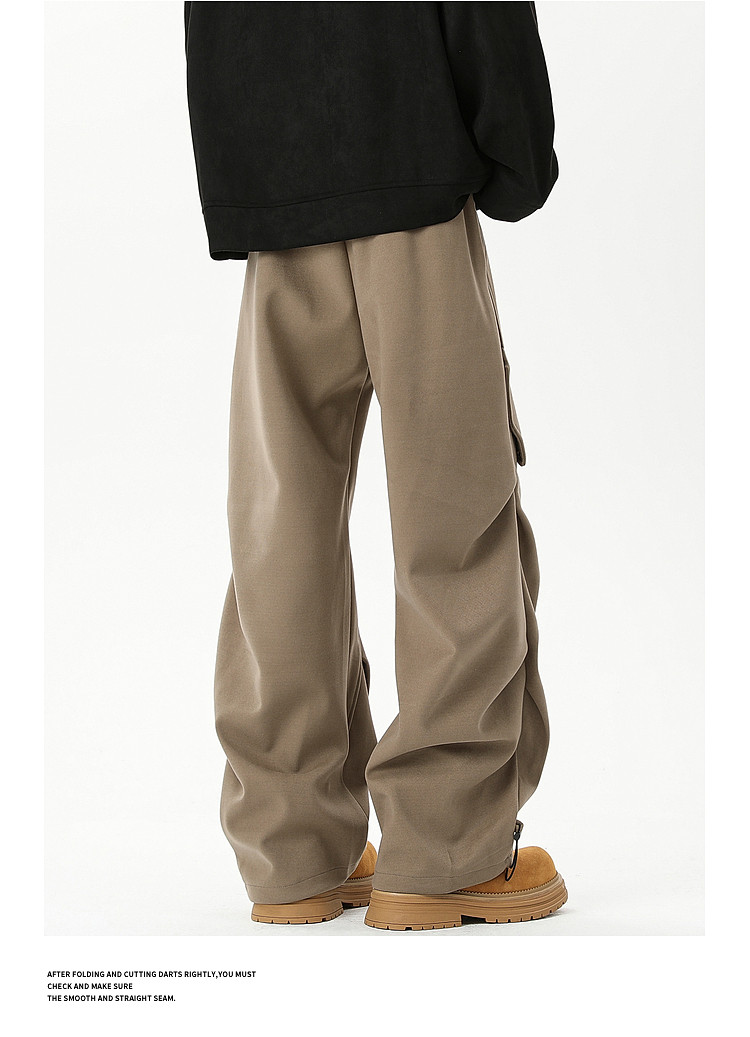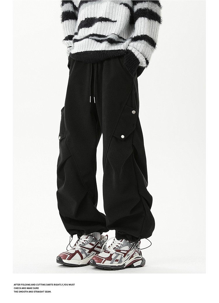 Wukong Has in Stock Winter American-Style Heavy-Duty Thickened Pleated Cargo Pants for Men, Loose Trendy Wide-Leg Versatile Casual Long Pants