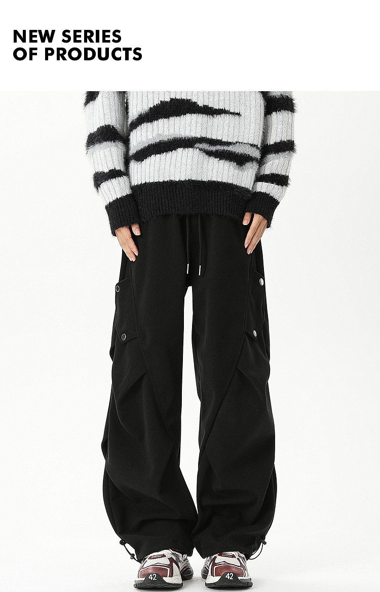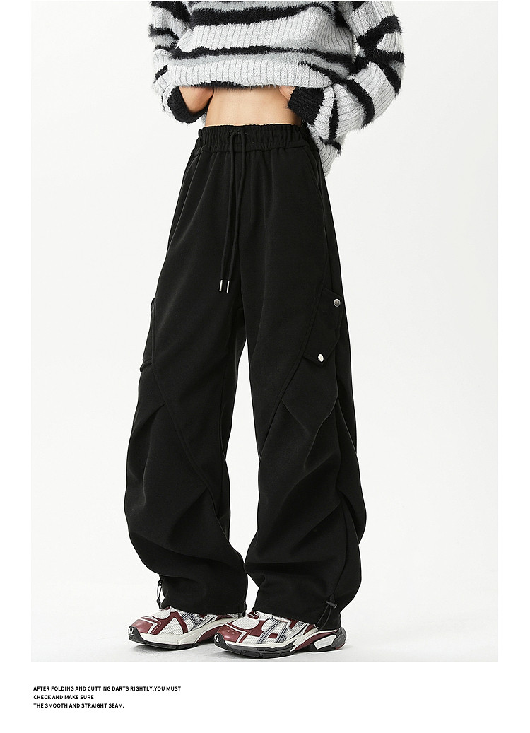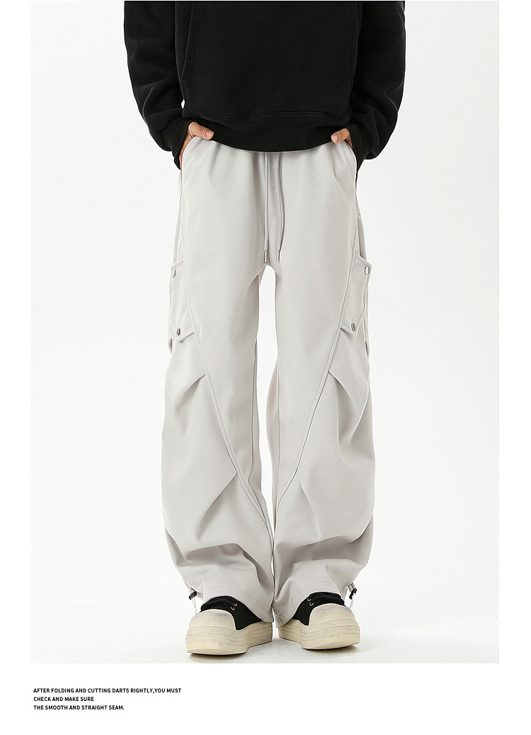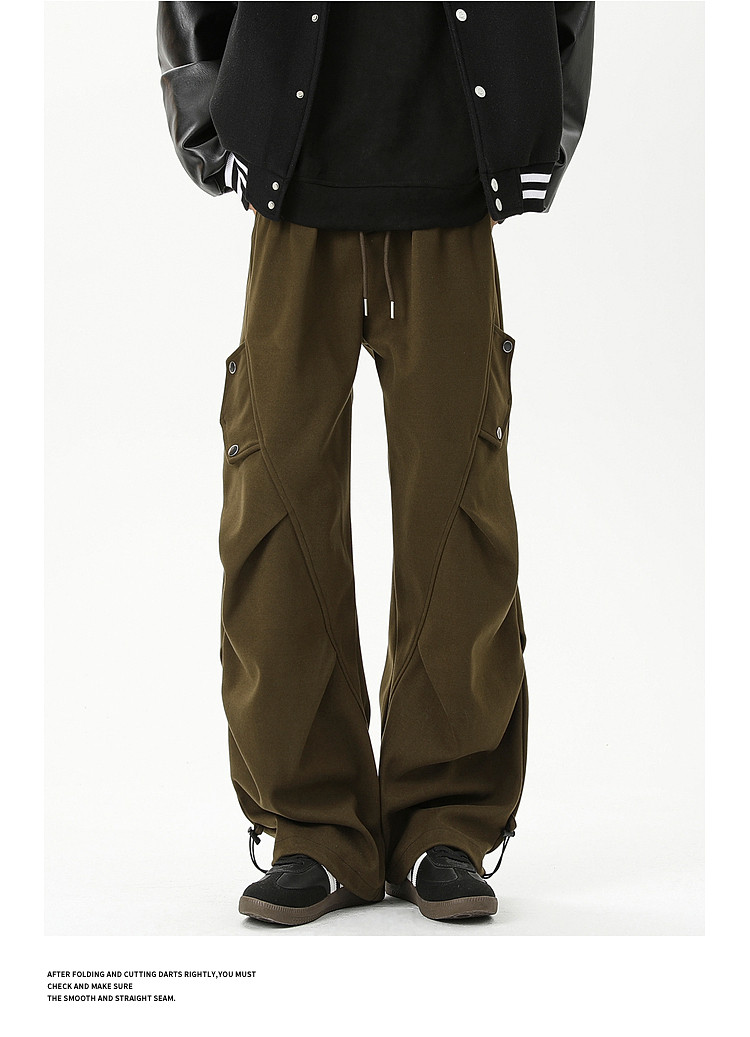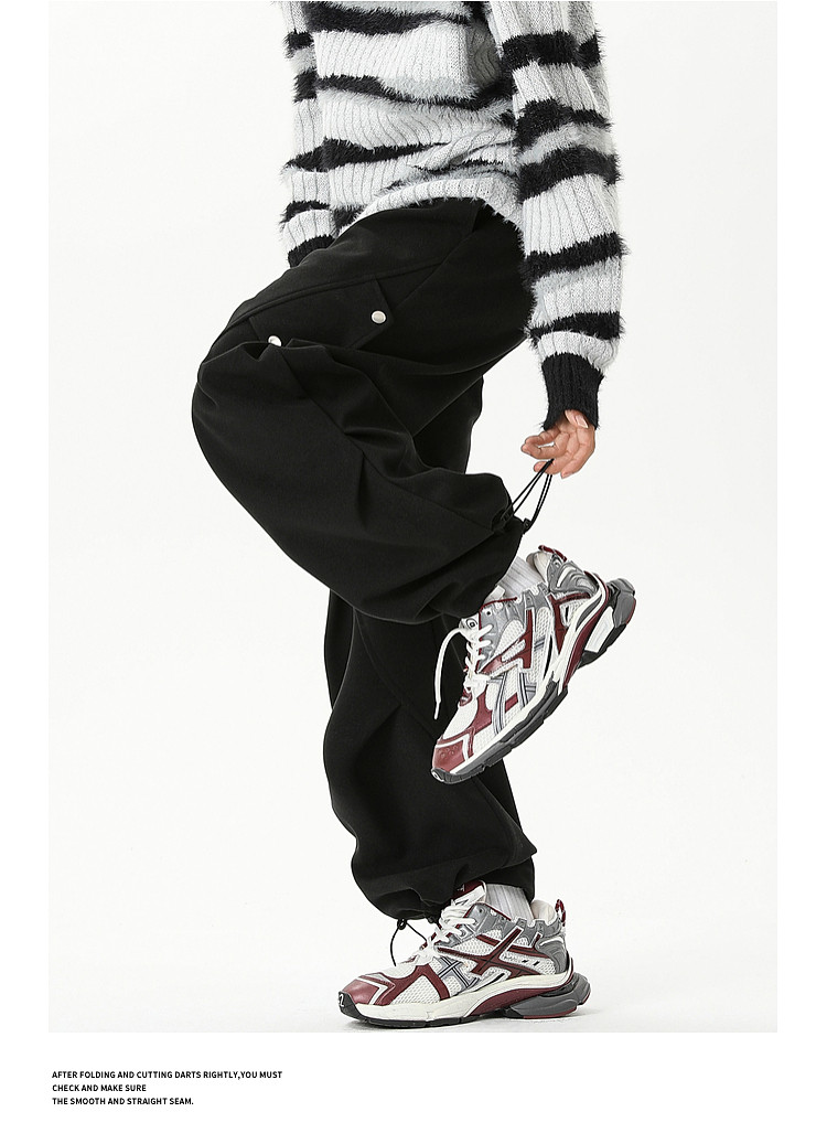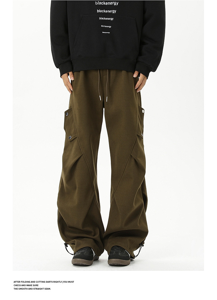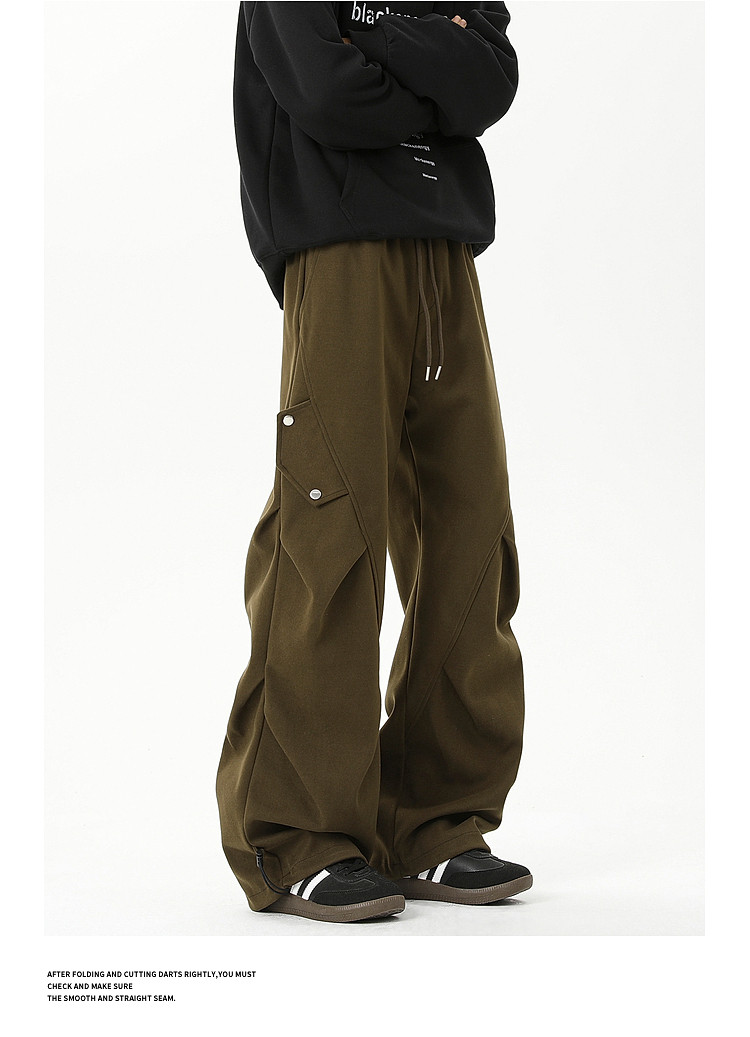 Wukong Has in Stock Winter American-Style Heavy-Duty Thickened Pleated Cargo Pants for Men, Loose Trendy Wide-Leg Versatile Casual Long Pants