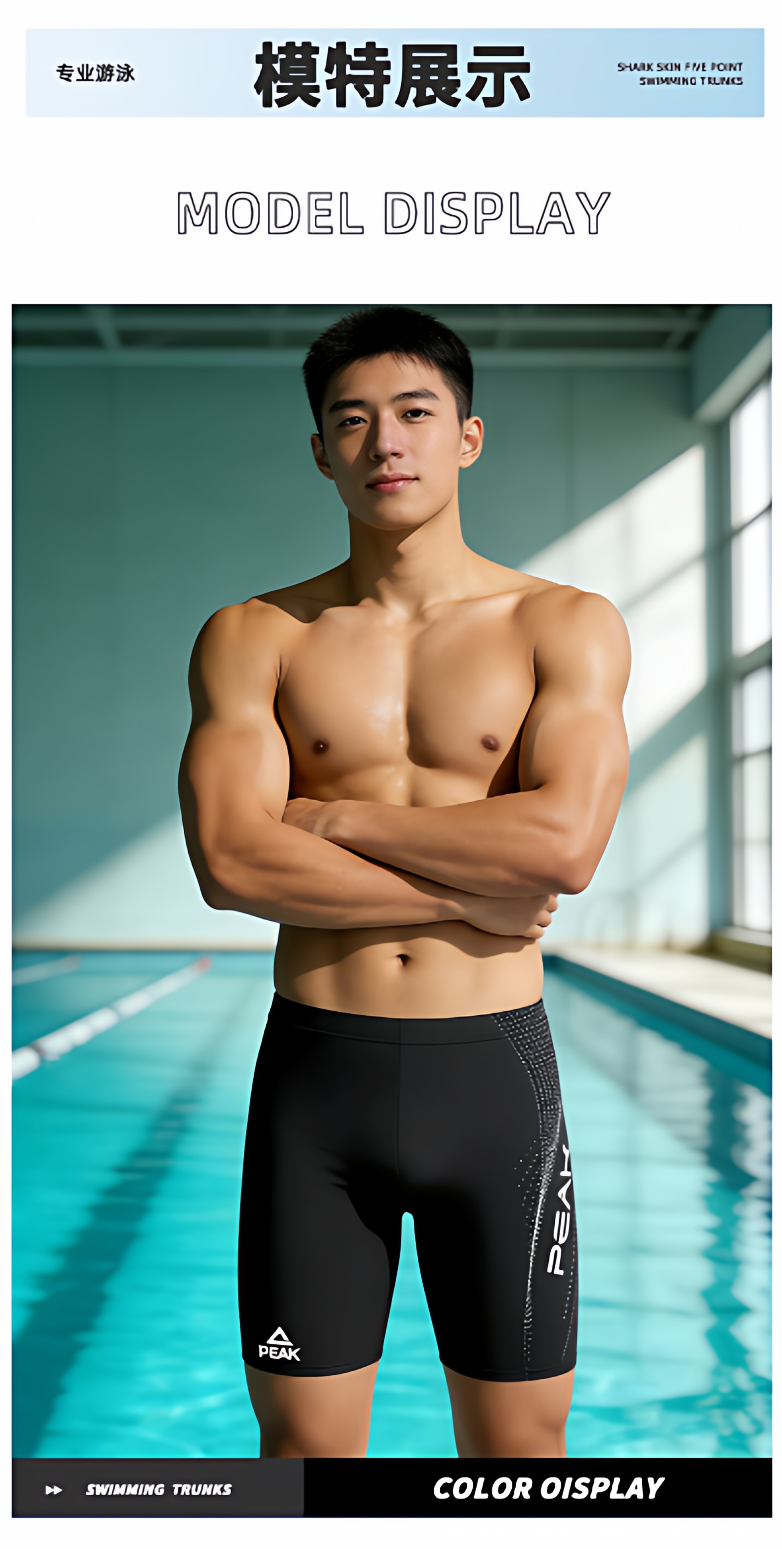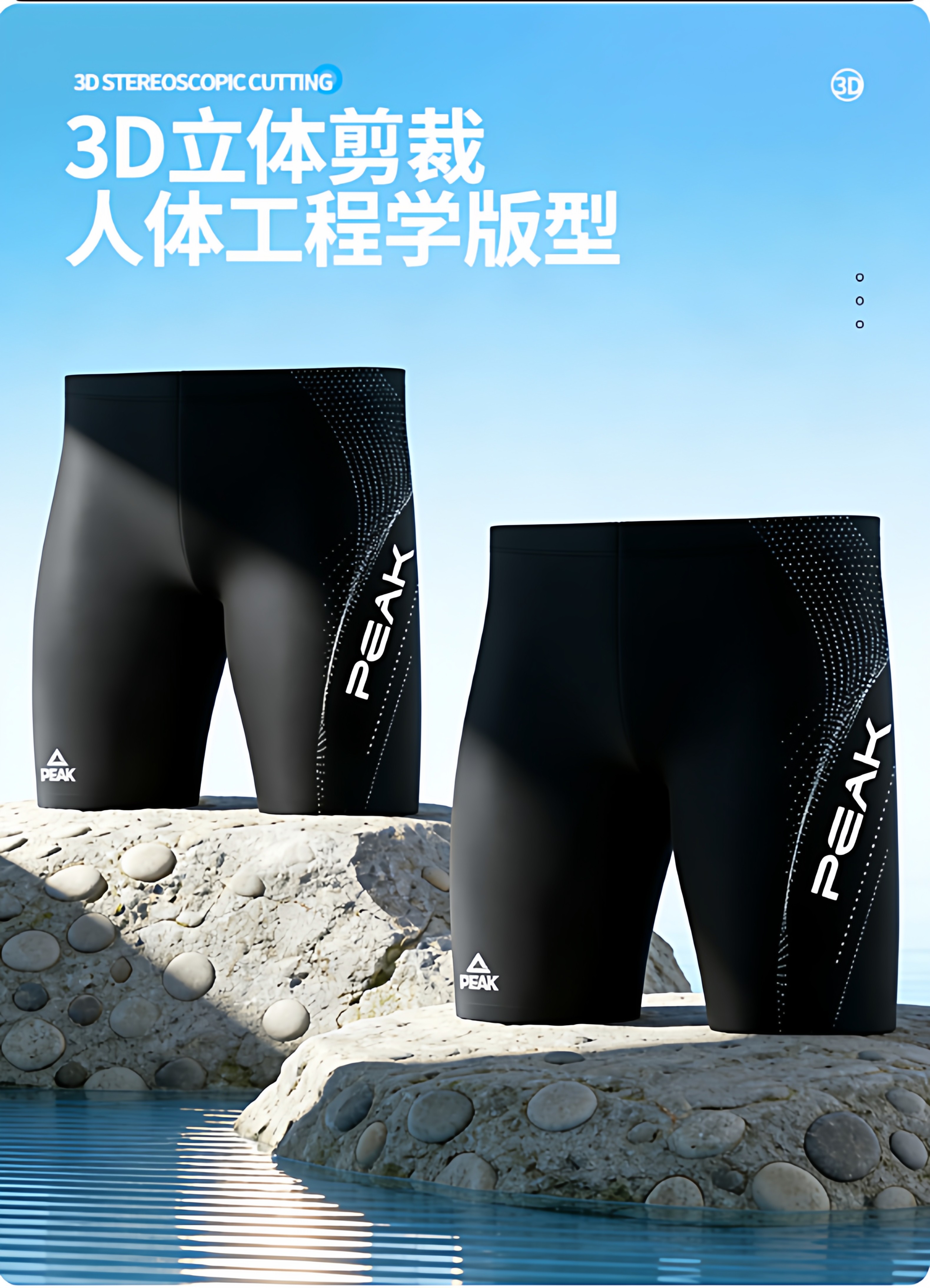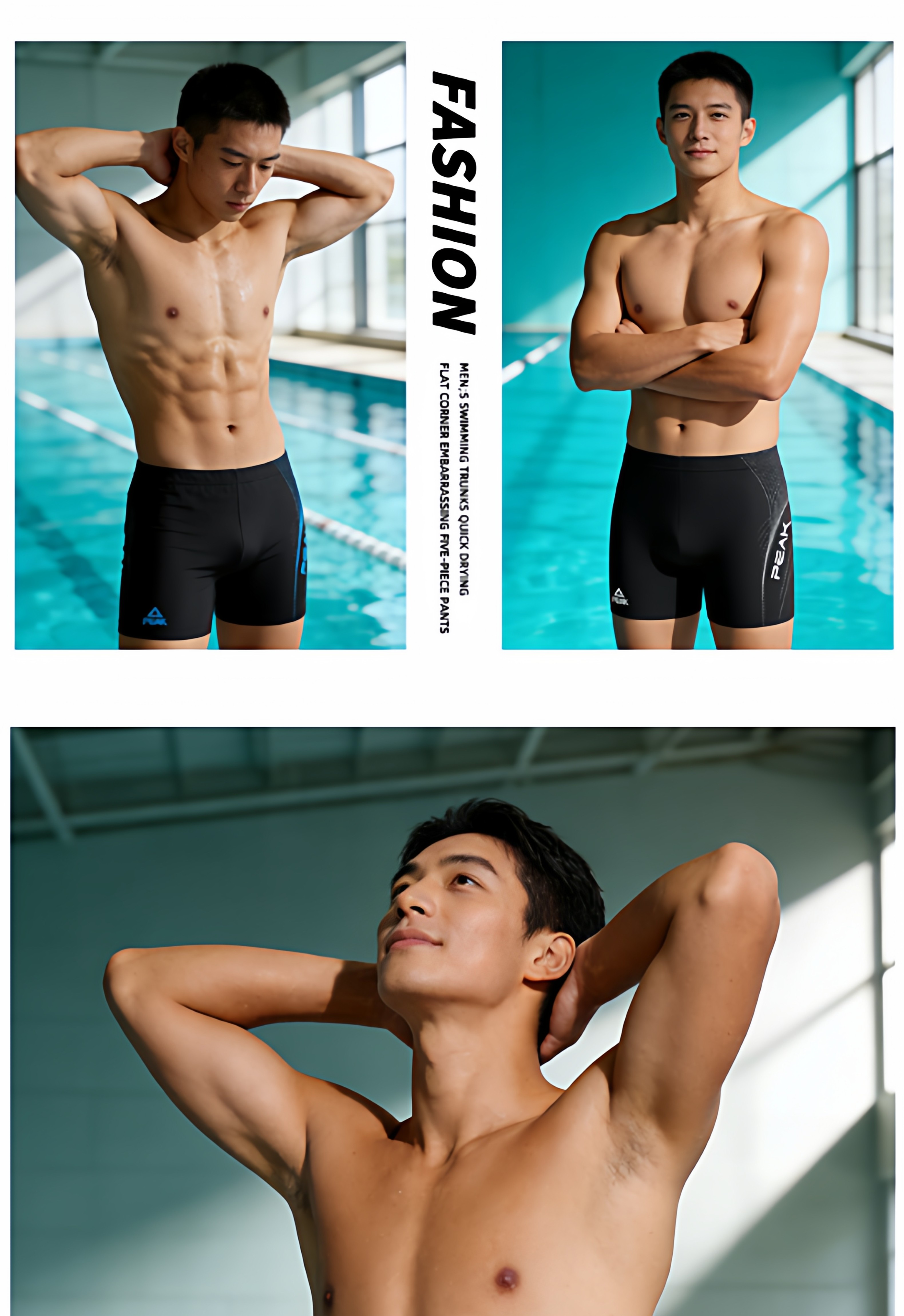 Peak Brand Swimming Trunks, Swimming Cap, and Swimming Goggles Three-Piece Set, Hot Spring Set, Beach Five-Point Swim Trunks, Men's Swimming Gear Complete Set