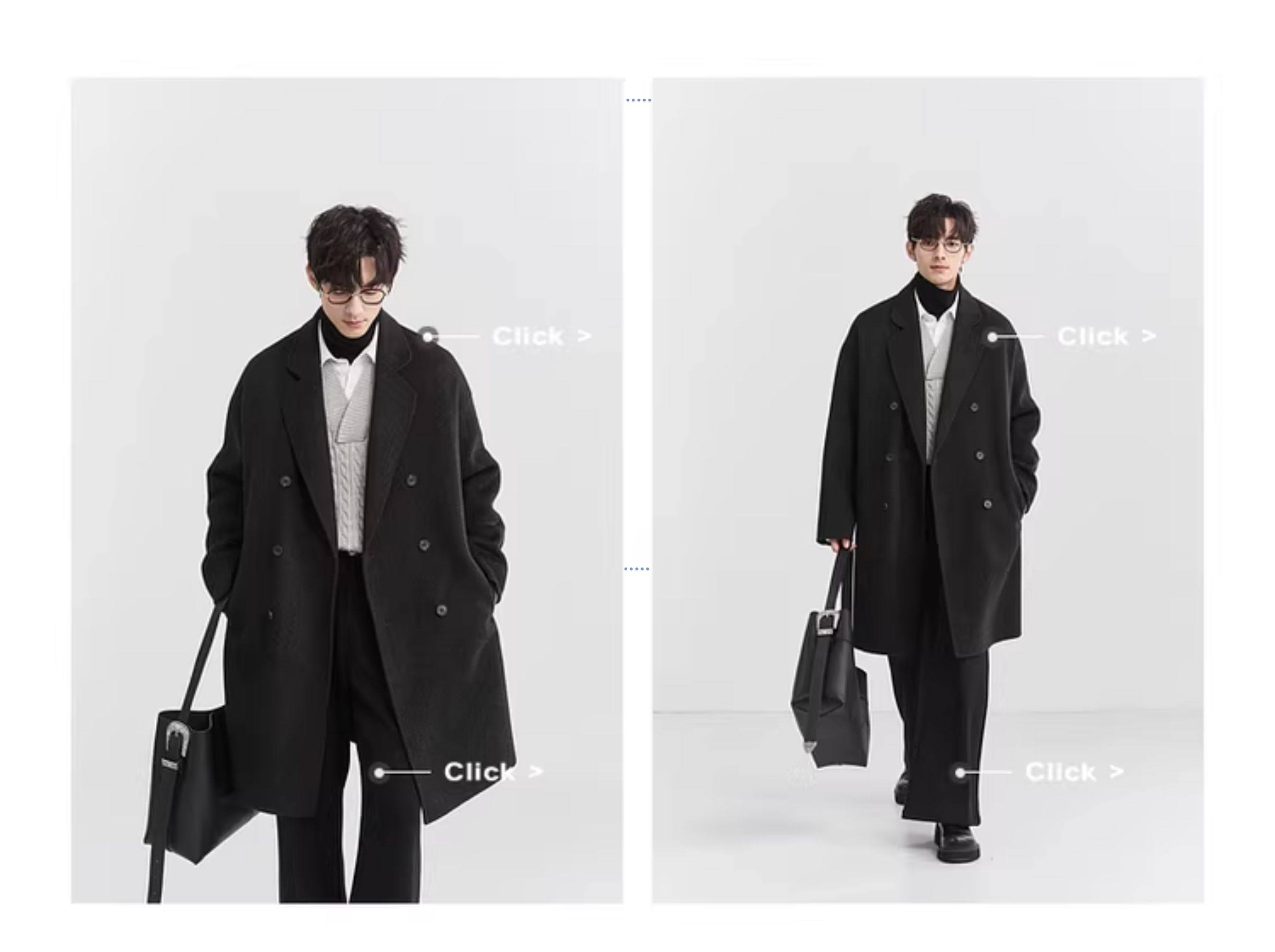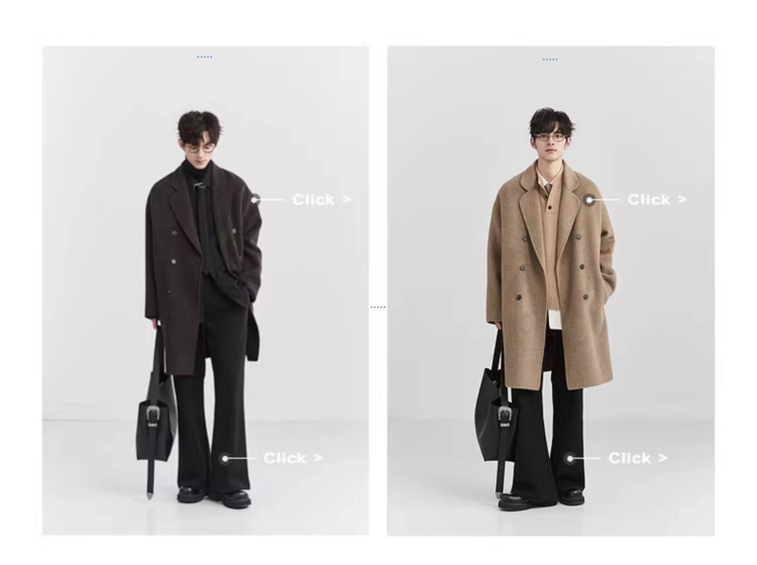 Bjze Men's 24 Winter High-End Custom Woven Yak Wool Double-Sided Woolen Coat Men's Mid-Length Thickened Jacket
