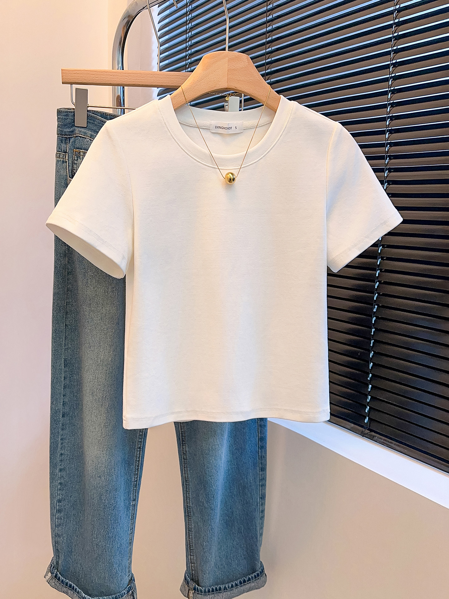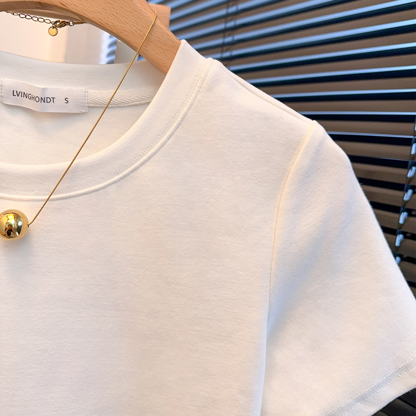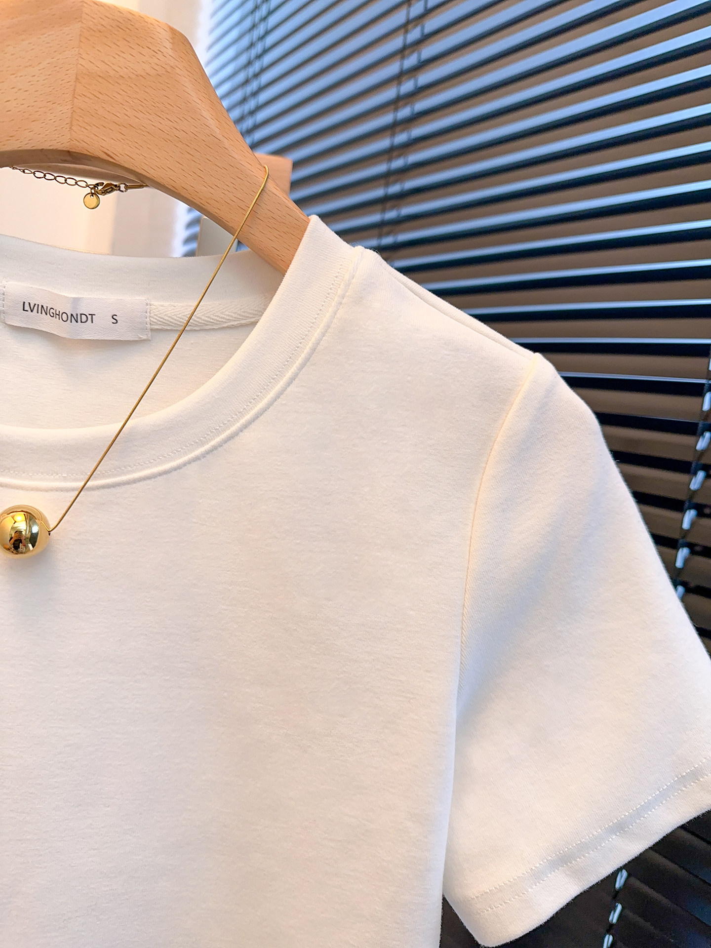 Women's Solid Color Brushed Short T-Shirt 2025 New Thickened Loose Short-Sleeved Top White Pure Cotton Base Shirt
