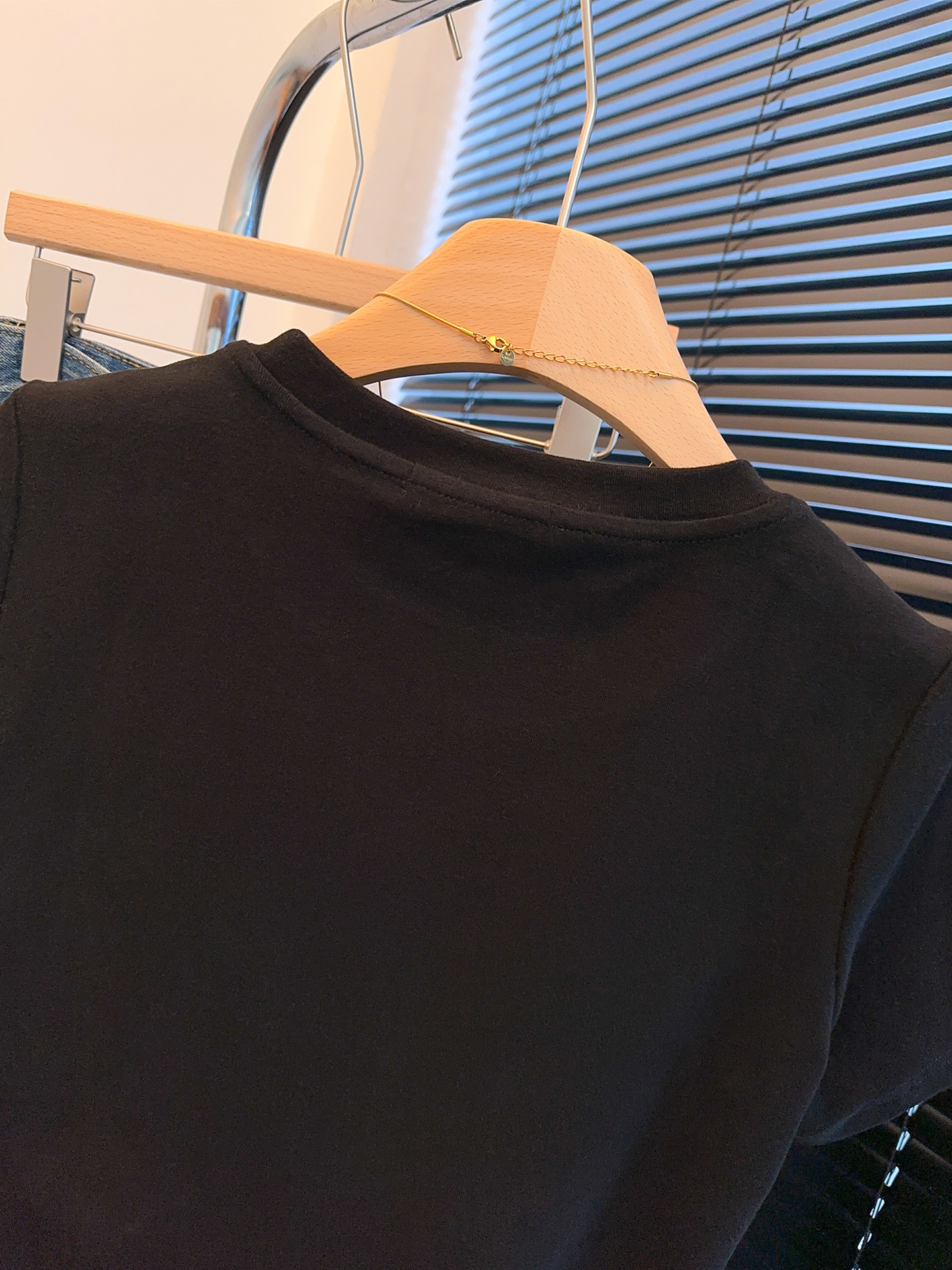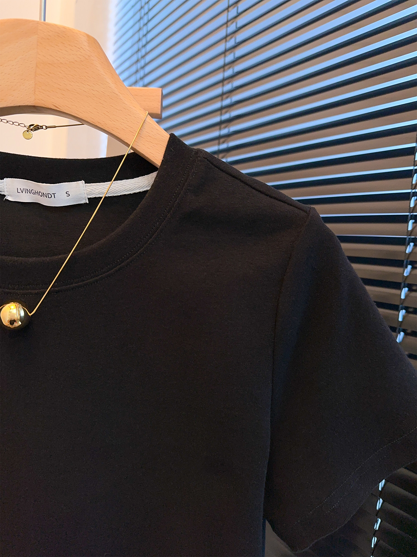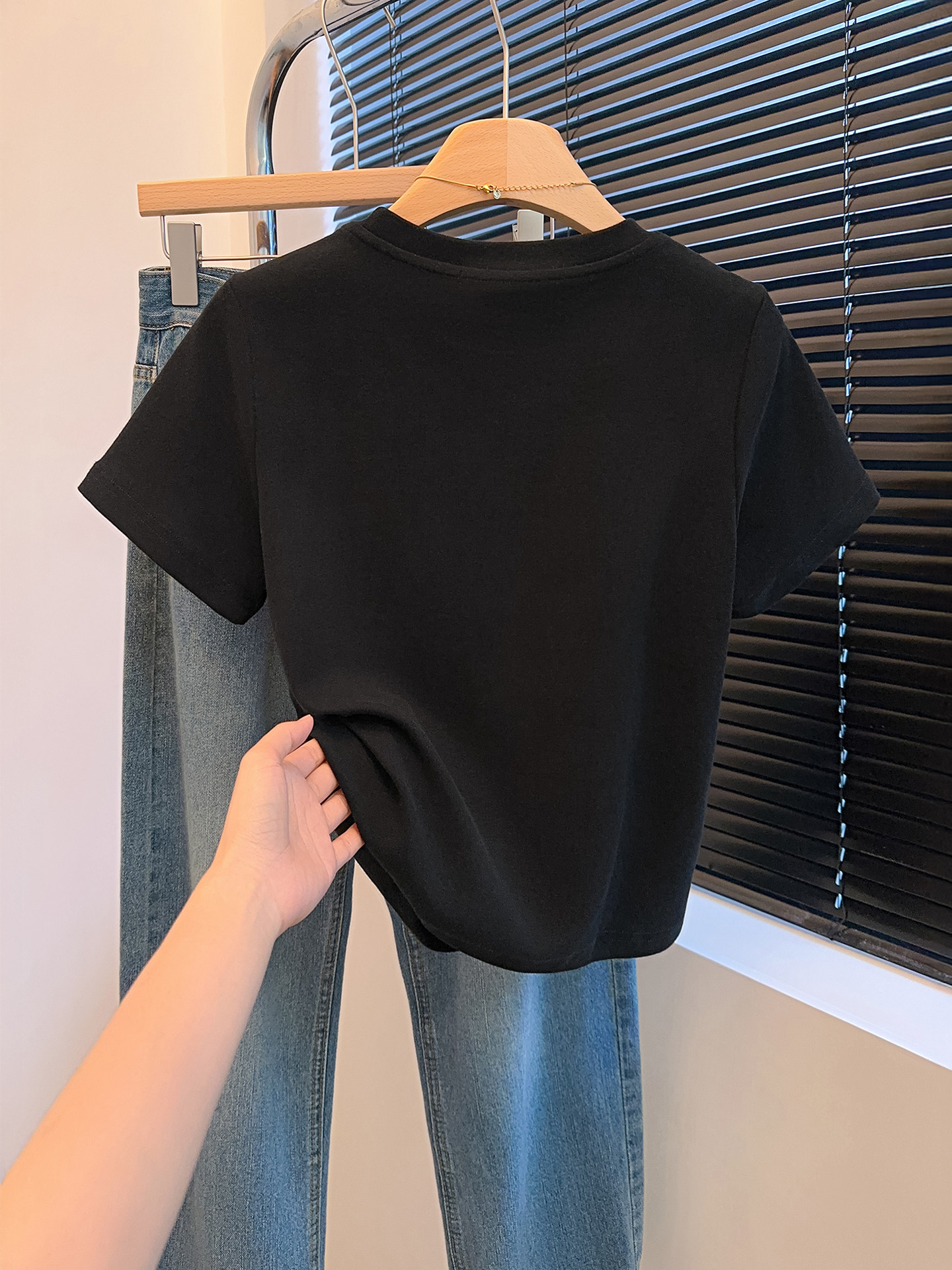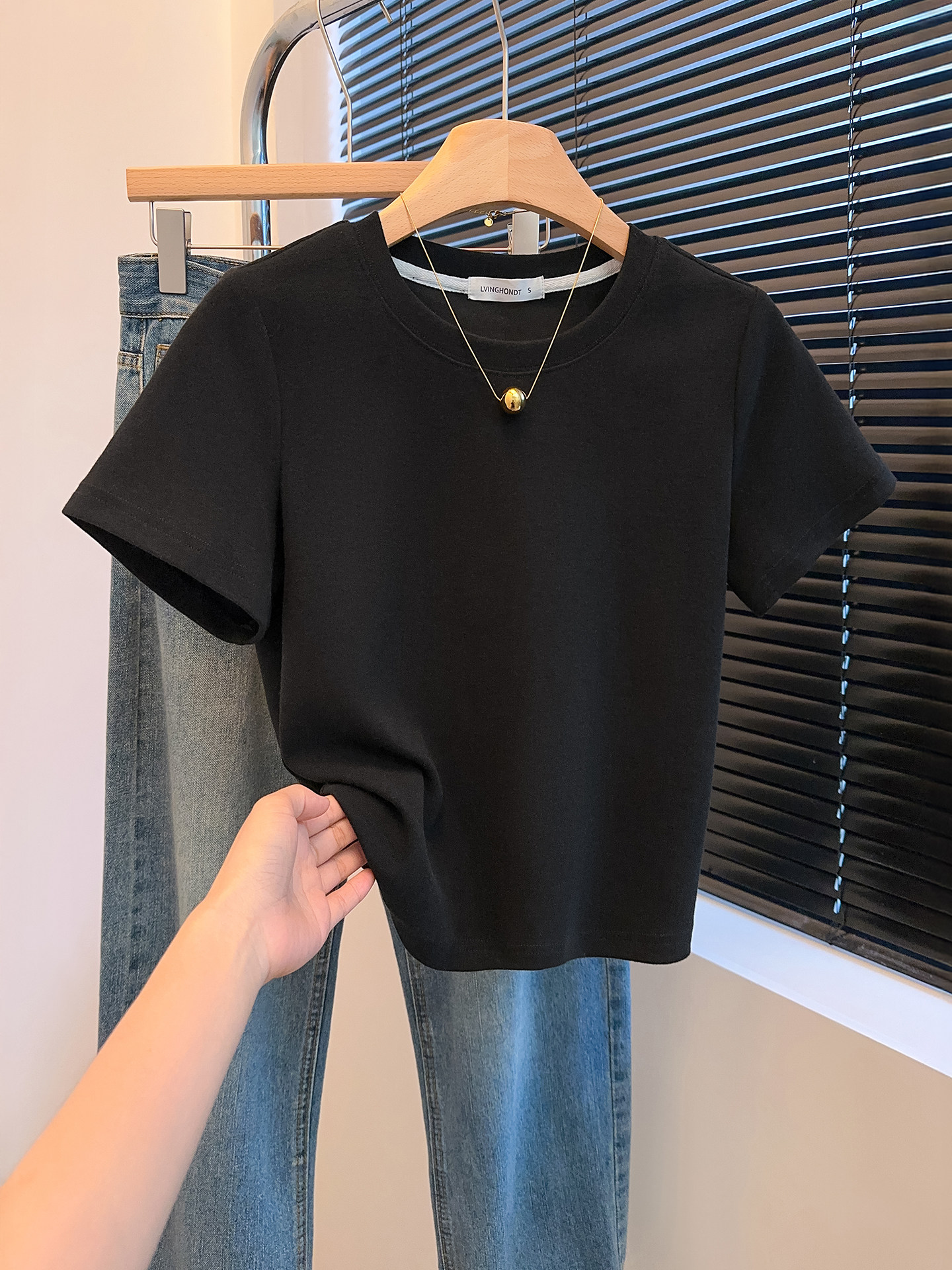 Women's Solid Color Brushed Short T-Shirt 2025 New Thickened Loose Short-Sleeved Top White Pure Cotton Base Shirt