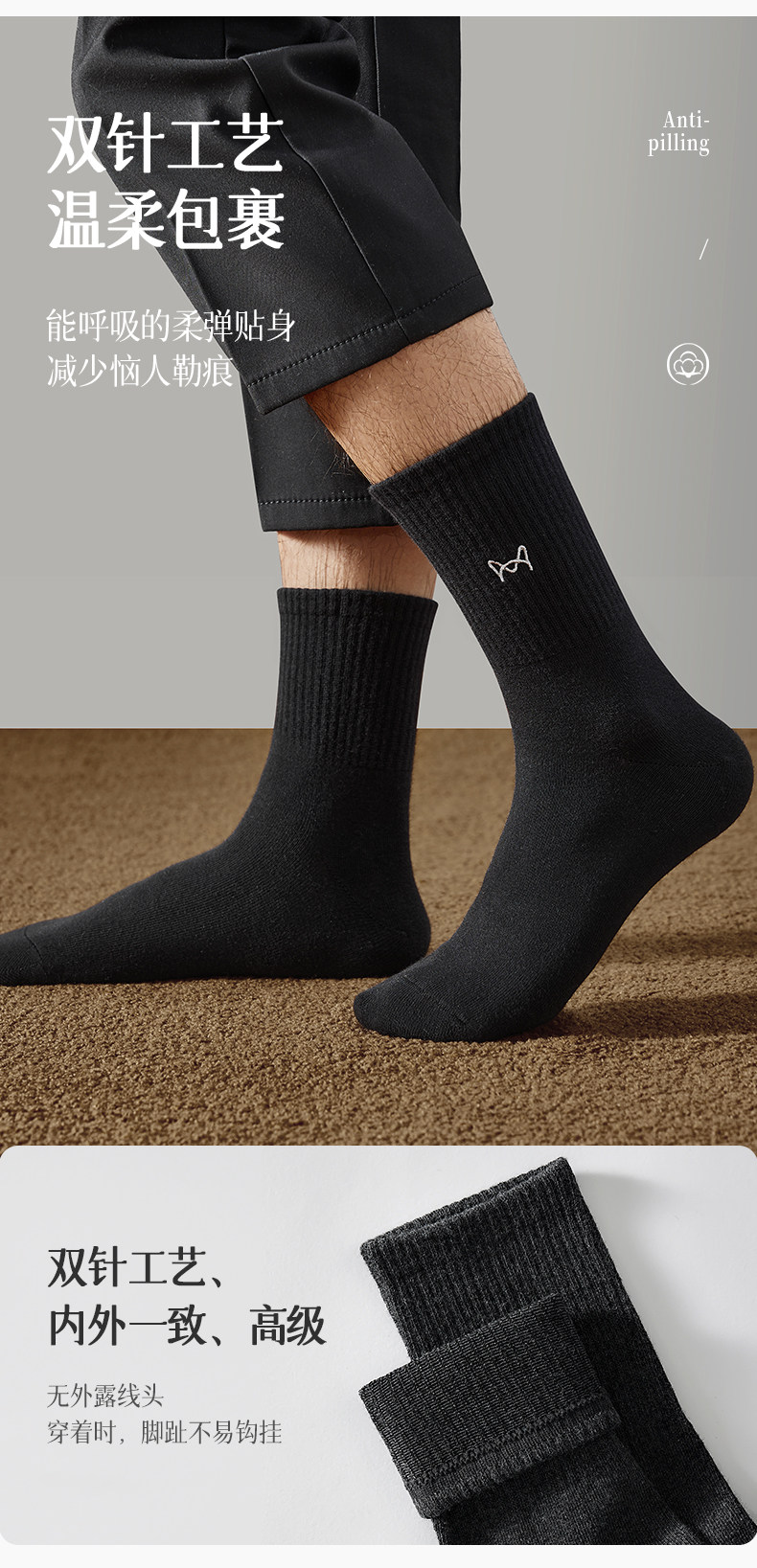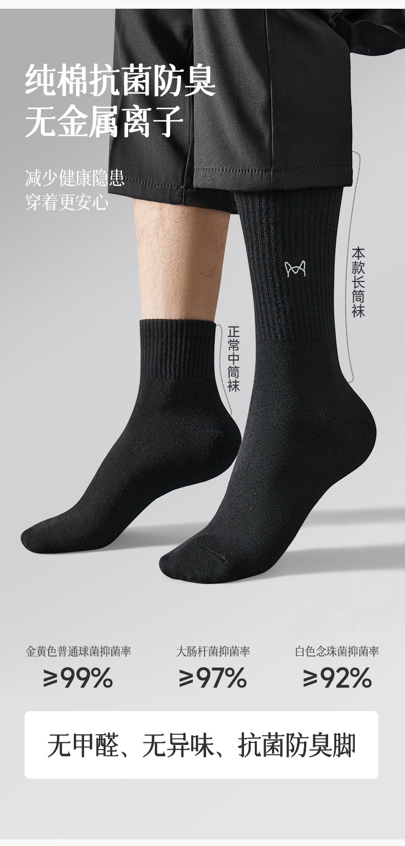 Catman Socks for Men, Autumn and Winter, Pure Cotton, Antibacterial, Warm, Black High Tube Socks, Extra Long and Thick, Calf-Length Men's Long Socks