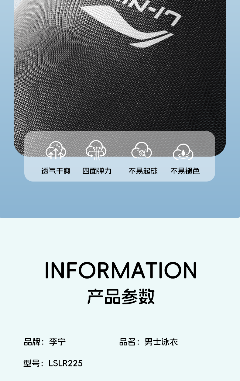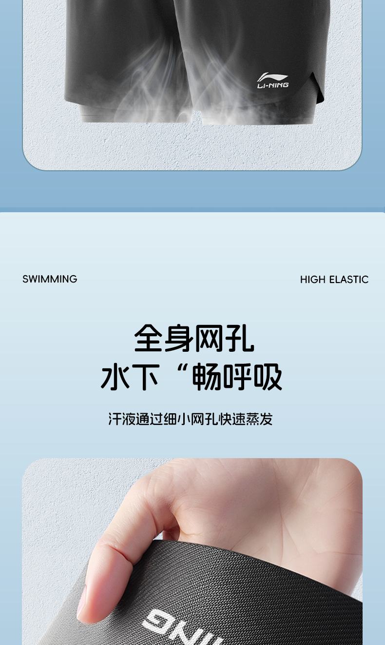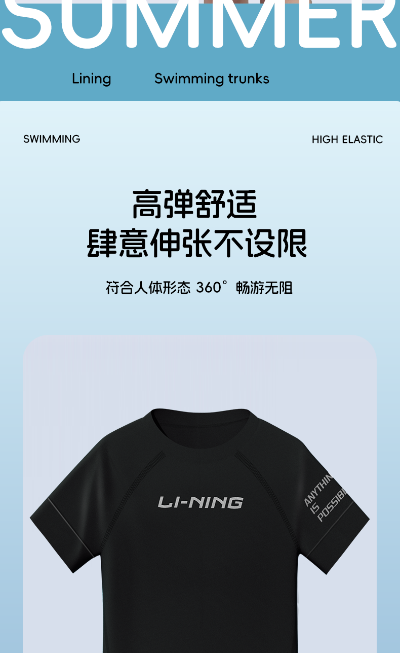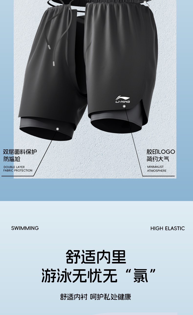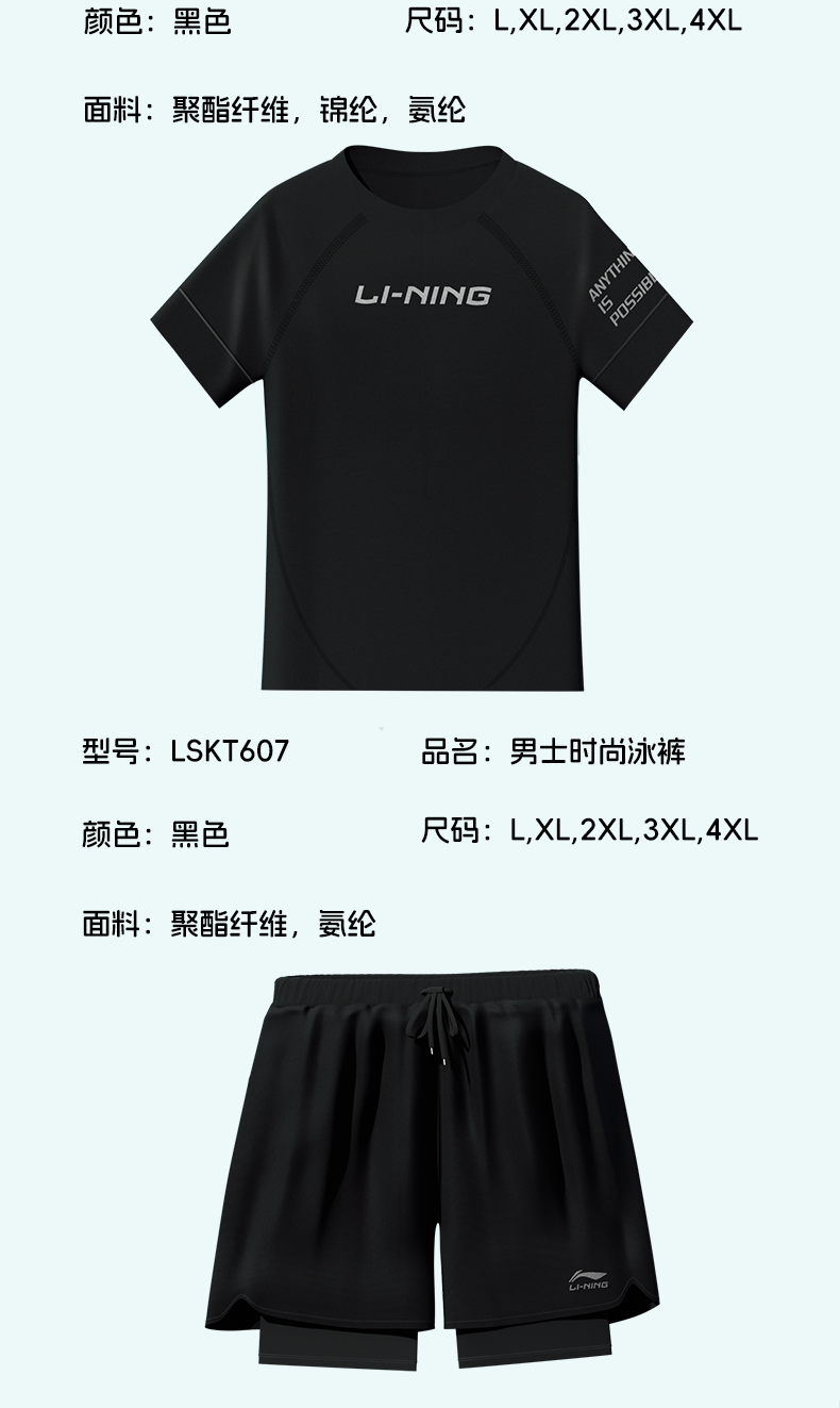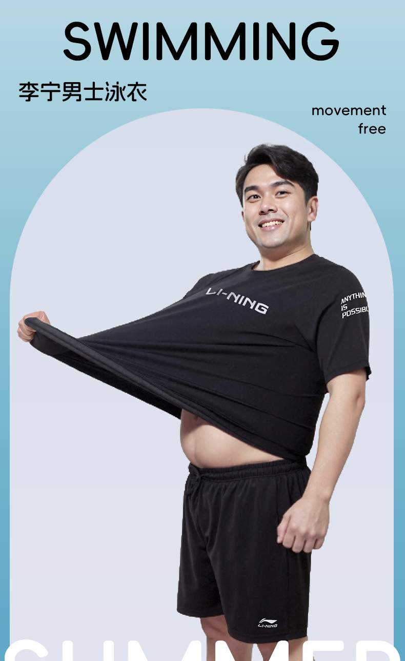 Li-Ning Large Size Swim Trunks for Men, Extra Large Swimwear Set, Anti-Embarrassment Men's Top, Adult Professional Swimming Gear